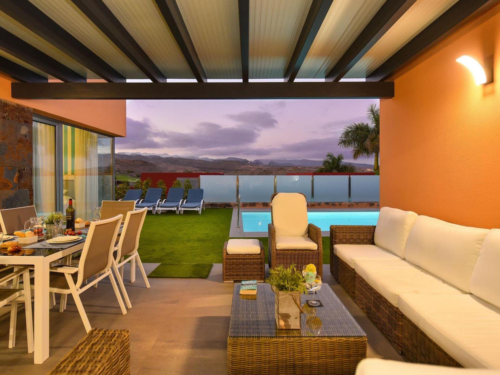 Moderne Villa "Par4 Villa 13", umgeben von Feldern. Maspaloma, am Ortsrand Salobre, ruhige, sonnige Lage. Zur Mitbenutzung: Grundstück, Schwimmbad (8 x 4 m, saisonale Verfügbarkeit: 01.Jan. - 31.Dez.). Zur Alleinbenutzung: Garten 210 m2. Im Hause: Wireless LAN, Klimaanlage, Waschmaschine, Wäschetrockner. E-Ladestation. Supermarkt 1 km, Restaurant 400 m, Bushaltestelle "Las Crucitas" 19 km, Sandstrand "11000". Golfplatz (18 Loch) 100 m. Bitte beachten: Fahrzeug empfohlen. Babyausstattung auf Anfrage. Der Besitzer akzeptiert keine Jugendgruppen. Autobahn 1.6 km vom Haus.