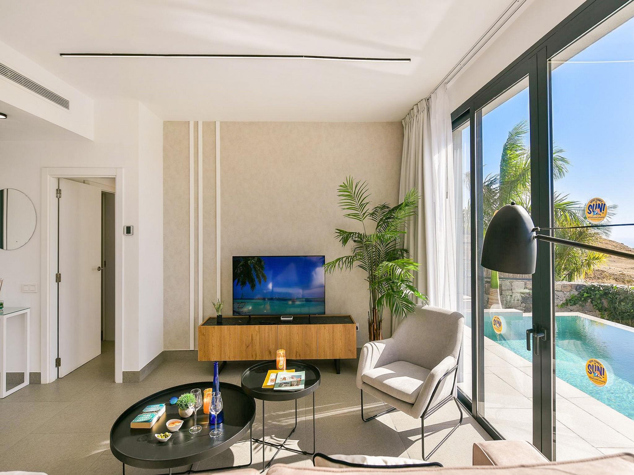 Moderne, komfortable, luxuriöse Villa "Las Yucas 12". Im Ortszentrum von Salobre Golf Resort Masapalomas, im Villenviertel, exzellente Lage: Absolut zentral und dennoch ruhig. Zur Alleinbenutzung: Schwimmbad eckig (6 x 3 m, 140 cm tief, saisonale Verfügbarkeit: 01.Jan. - 31.Dez.). Terrasse, Gartenmöbel, Grill. Im Hause: Internetzugang, Wireless LAN, Klimaanlage. Einkaufsgeschäft, Lebensmittelgeschäft, Supermarkt 200 m, Einkaufszentrum, Restaurant 500 m, Bushaltestelle "Las Crucitas" 19 km. Golfplatz (18 Loch) 100 m. Bitte beachten: geeignet für Familien, Babyausstattung auf Anfrage. Der Besitzer akzeptiert keine Jugendgruppen. Flugplatz in der Nähe 40 km vom Haus.