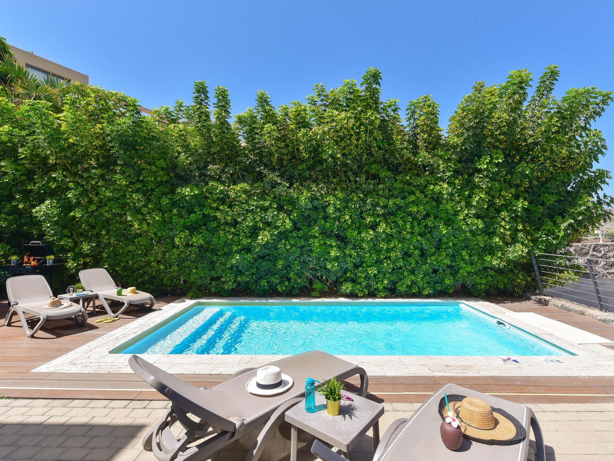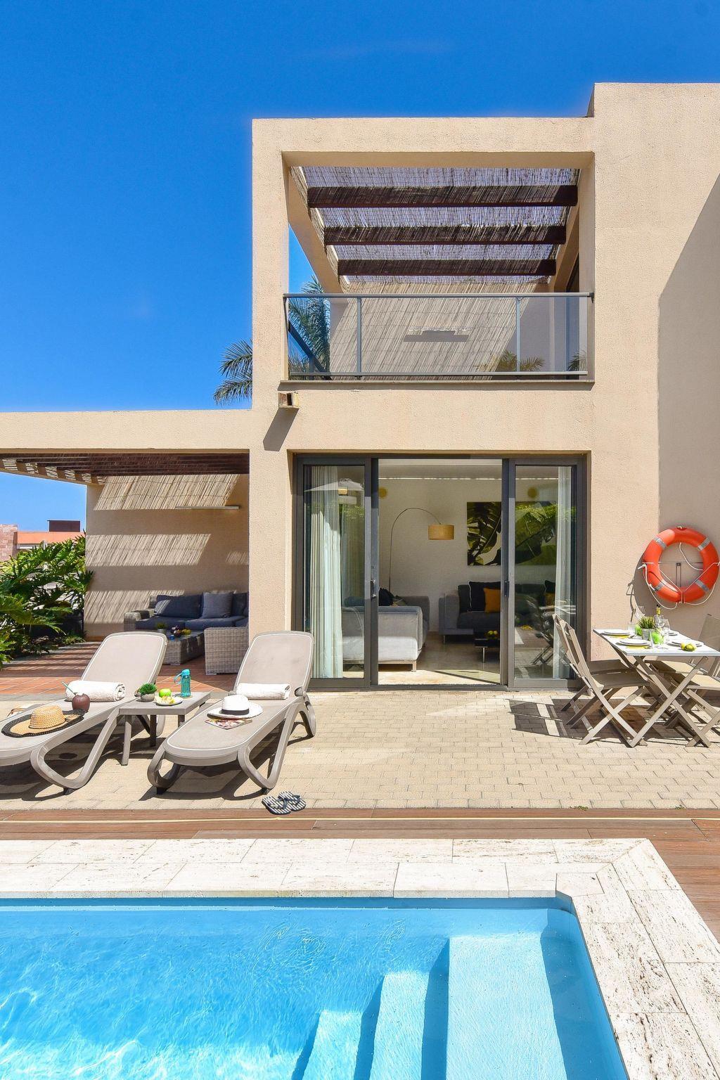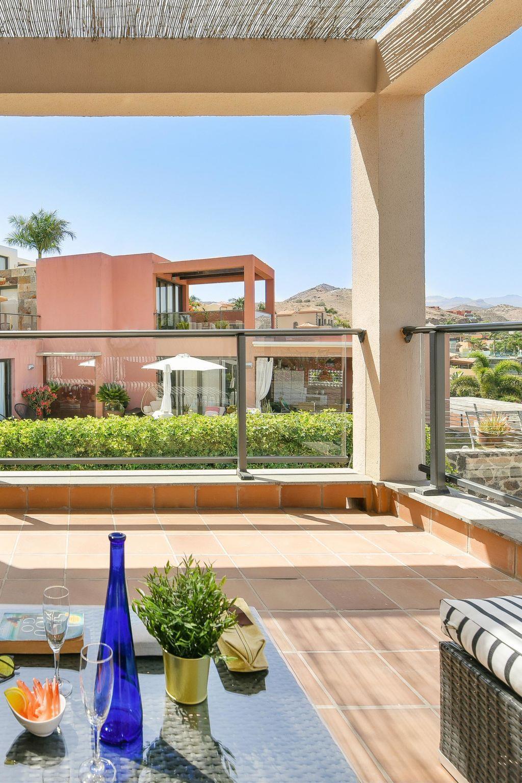 Gemütliche, luxuriöse Villa "Las Terrazas 14". Im Ortszentrum von Salobre Golf Resort, 1 km vom Strand. Zur Alleinbenutzung: wunderschöner Garten zum Entspannen, Schwimmbad eckig (6 x 2 m, 140 cm tief, saisonale Verfügbarkeit: 01.Jan. - 31.Dez.). Sitzplatz, Laube, Pergola, Gartenmöbel, Grill. Im Hause: Klimaanlage. Parkplatz beim Haus. Bushaltestelle "Las Crucitas" 19 km. Bitte beachten: Fahrzeug empfohlen. Auf Anfrage. Objekt geeignet für 4 Erwachsene. Der Besitzer akzeptiert keine Jugendgruppen. Die Nachbarschaft ist sehr lärmempfindlich. Ruhe und gutes Benehmen wird erwartet.
