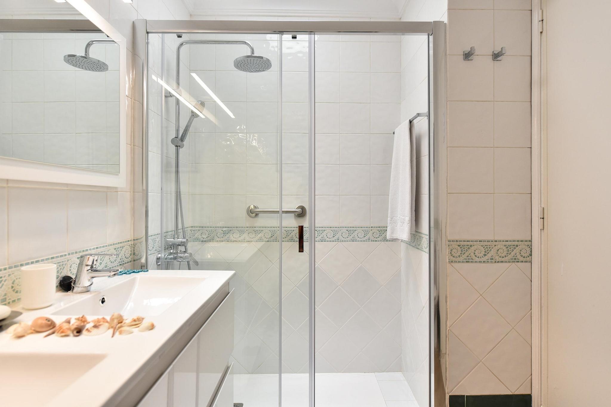 Parterre: (Küche(Toaster, Kochherd(Ceranfeld), Kaffeemaschine(Filter), Backofen, Mikrowelle, Kühl-/Gefrierkombination, Waschmaschine, Mixer), Wohn/Esszimmer(TV(Satellit), Esstisch, Sitzecke), Schlafzimmer(2x Einzelbett), Schlafzimmer(2x Einzelbett), Badezimmer(Dusche, 2x Waschbecken)) Klimaanlage, Terrasse(alleinige Nutzung, überdacht), Garten, Gartenmöbel, Liegen, Parkplatz, Pool(Gemeinschaftliche Nutzung mit anderen Gästen)