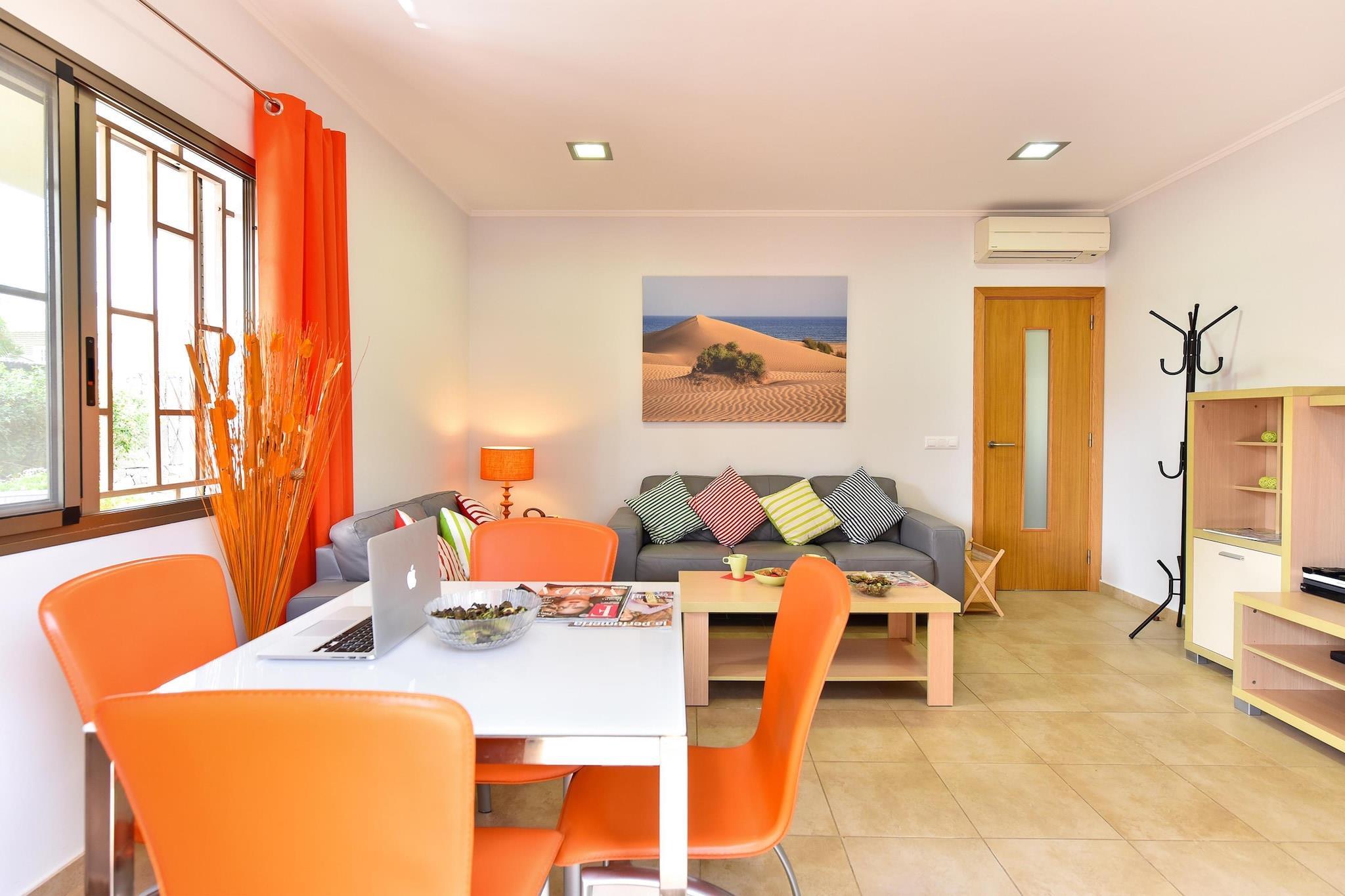 Dieses Strandhaus ist ein charmantes Anwesen mit 3 Schlafzimmern für bis zu 6 Gäste, nur 50 Meter vom nächsten weißen Sandstrand und nur wenige Gehminuten von Geschäften und Restaurants entfernt. Alles, was Sie für einen ruhigen und erholsamen Urlaub brauchen. Diese schöne Ferienresidenz verfügt über 3 Schlafzimmer, eines mit einem Doppelbett, ein zweites mit zwei Einzelbetten und ein drittes mit einem Etagenbett. Darüber hinaus ist es mit 2 Badezimmern mit Dusche, einem geräumigen und hellen Wohnzimmer und einer voll ausgestatteten Küche mit Geschirrspüler, Backofen, Mikrowelle, Kaffeemaschine und weiteren Küchenutensilien für einen unbeschwerten Aufenthalt ausgestattet. Die fantastische Terrasse ist sowohl von der Küche als auch von den großen Fenstern des Wohnzimmers aus zugänglich. Die Terrasse verfügt über einen sehr angenehmen Ruhebereich und einen Essbereich neben dem Grill. Das Strandhaus befindet sich auf einer Etage und ist ideal für Familien mit Kindern oder diejenigen, die lieber Treppen meiden oder weniger mobil sind. Da sich alles, was Sie brauchen, gleich um die Ecke befindet, gelangen Sie bei einem gemütlichen Spaziergang zu den besten Stränden im Süden der Insel. Las Burras, Playa del Inglés, Maspalomas und Meloneras. Restaurants, Geschäfte und Supermärkte fußläufig erreichbar, ruhige Lage und doch geschäftiges Treiben, was will man mehr?