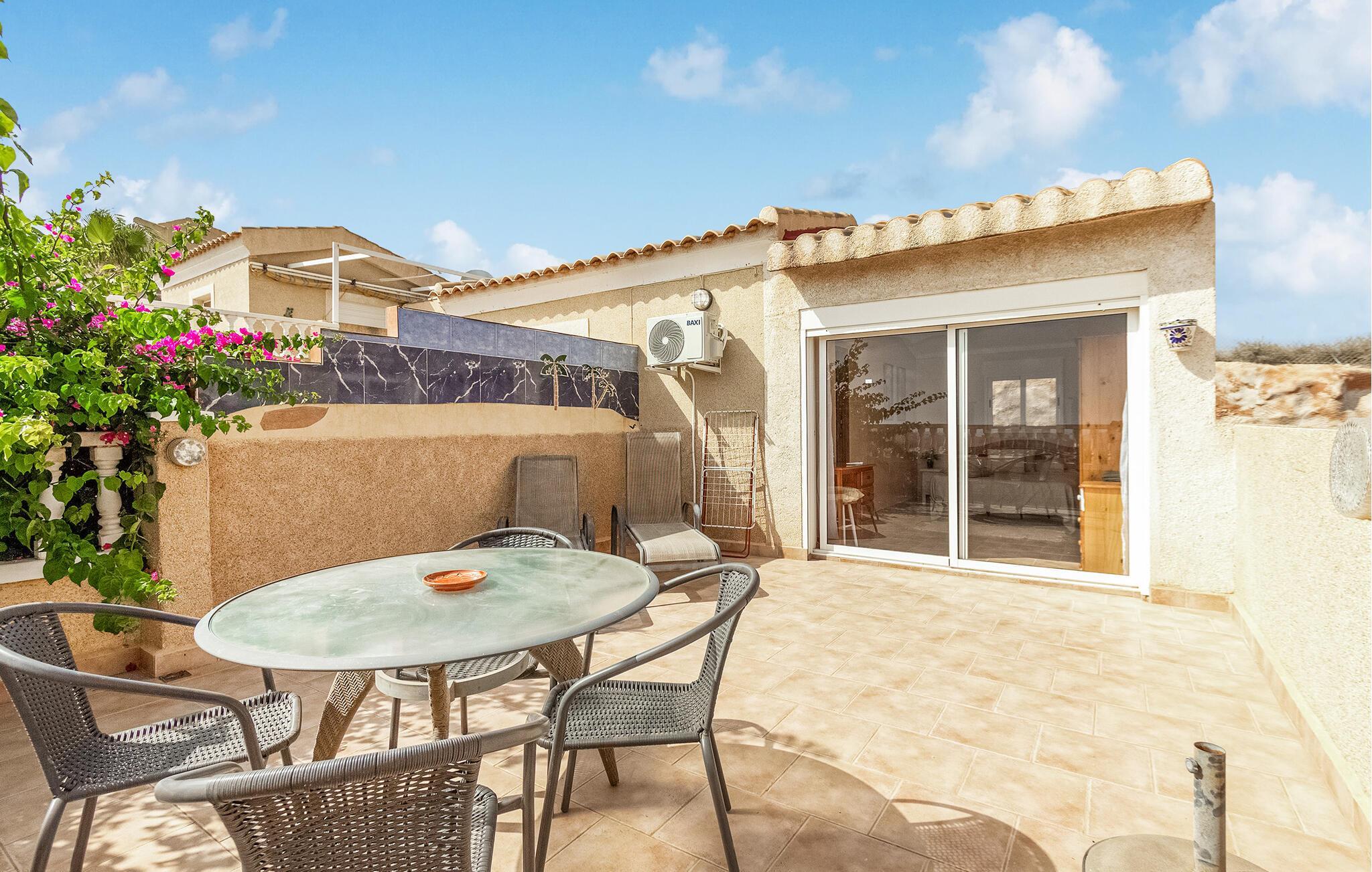 Die überdachte Terrasse lädt Sie zu entspannten Stunden im Schatten ein, während die Dachterrasse mit atemberaubendem Meerblick für besondere Momente sorgt – sei es beim Sonnenuntergang oder unter dem Sternenhimmel. Der private Pool bietet Ihnen die Möglichkeit, sich jederzeit in privater Atmosphäre abzukühlen.