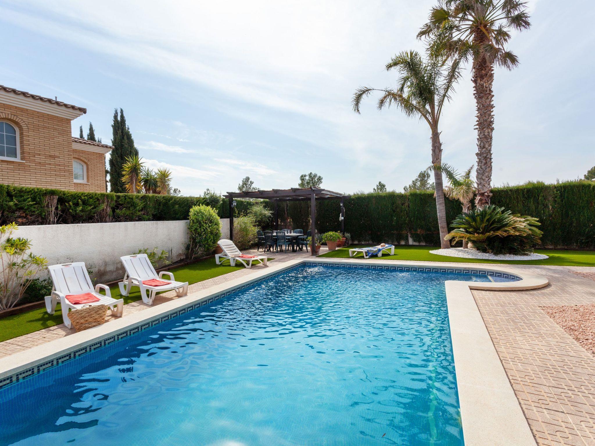 Urb Costa Zefir: Schöne, komfortable Villa "Pasja". Im Ort, 1 km vom Zentrum von Miami-Platja, sonnige Lage, 1.2 km vom Meer, 1.2 km vom Strand. Zur Alleinbenutzung: Grundstück 620 m2 (eingezäunt), Schwimmbad eckig (10 x 4 m, 80 - 190 cm tief, saisonale Verfügbarkeit: 01.Jan. - 31.Dez.) mit Innentreppe. Pergola, Gartenmöbel, Poolpflege durch den Besitzer/Gärtner. Parkplatz beim Haus. Supermarkt 350 m, Restaurant 1.3 km, Bäckerei 350 m, Bushaltestelle 1.3 km, Bahnstation "Hospitalet" 3 km, Badebucht 1.9 km. Golfplatz (13 Loch) 3 km. Nahe gelegene Sehenswürdigkeiten: parque Portaventura 28 km, parque acuático Aquopolis 31 km, parque Natural del Delta del Ebro 53 km, Tarragona 37 km, Reus 30 km, Barcelona 132 km. Bitte beachten: Fahrzeug empfohlen. Jugendgruppen nur auf Anfrage.