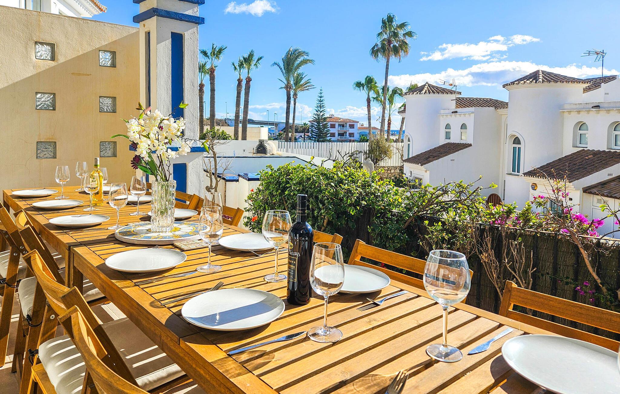 Dieses Stadthaus empfängt Sie nur ein paar Schritte vom Strand entfernt in El Faro, zwischen La Cala de Mijas und Fuengirola, nahe dem Golfclub Chaparral. In den hellen, ansprechend und wohnlich möblierten Räumen können Sie mit fantastischem Meerespanorama eine wunderbare Auszeit vom Alltag genießen. Speisen Sie gemeinsam nach einem schönen Tag am Strand oder einem Ausflug in der Umgebung und machen Sie es sich auf bequemen Sofas gemütlich, vielleicht mit einem guten Film.