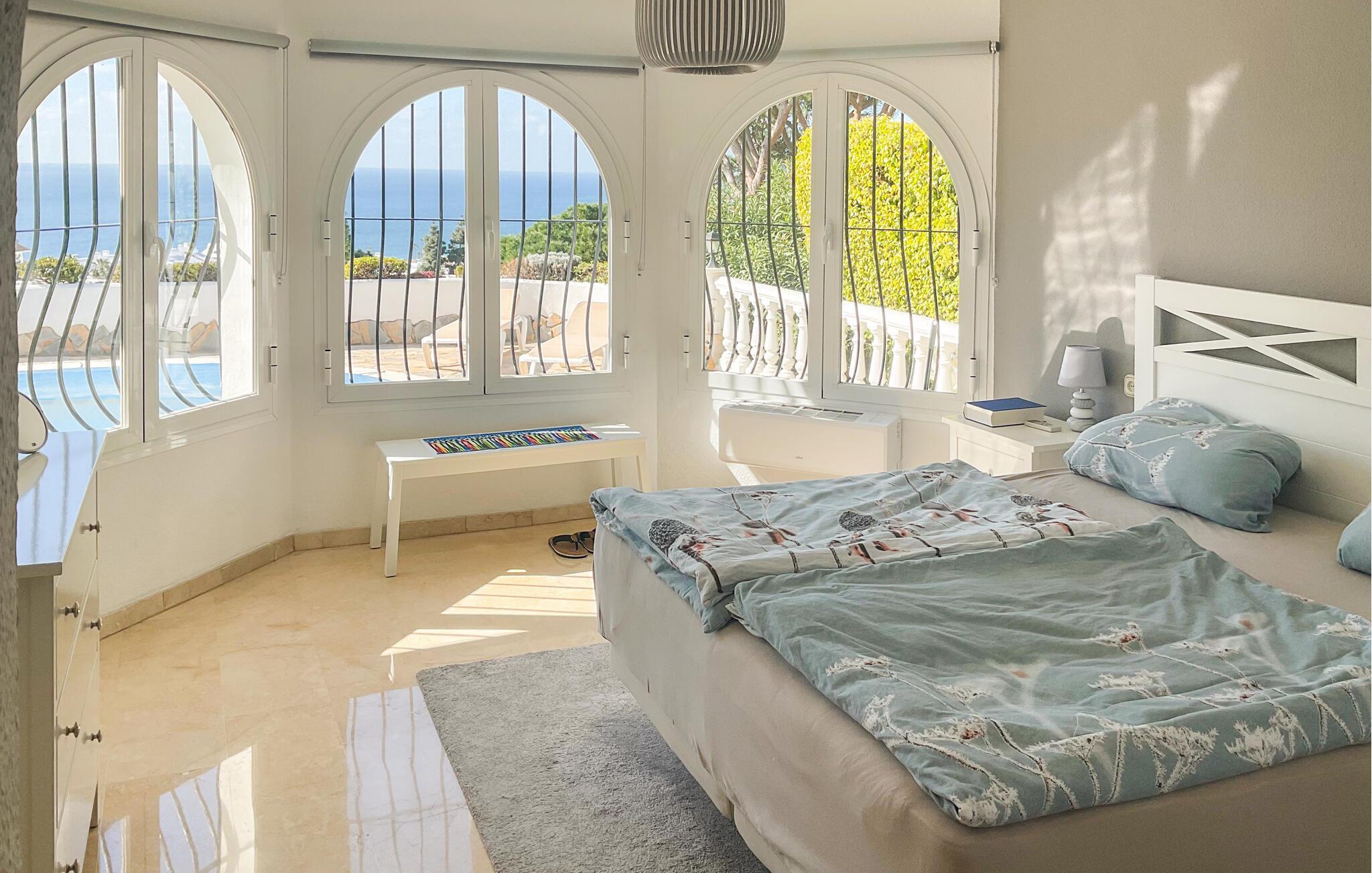 Willkommen in diesem wundervollen Ferienhaus im Küstenort Mijas, wo Sie eine erholsame Zeit an der beliebten Costa del Sol verbringen können. Das äußerst geräumige Haus überzeugt durch seine stilvolle Einrichtung und seine ansprechende Architektur. Beginnen Sie den Tag mit einem Frühstück auf der überdachten Terrasse, wo Sie die warme Urlaubsluft auf sich wirken lassen können. Ein zusätzlicher Balkon mit Panoramablick auf das Meer steigert die Vorfreude auf einen unvergesslichen Urlaubstag.