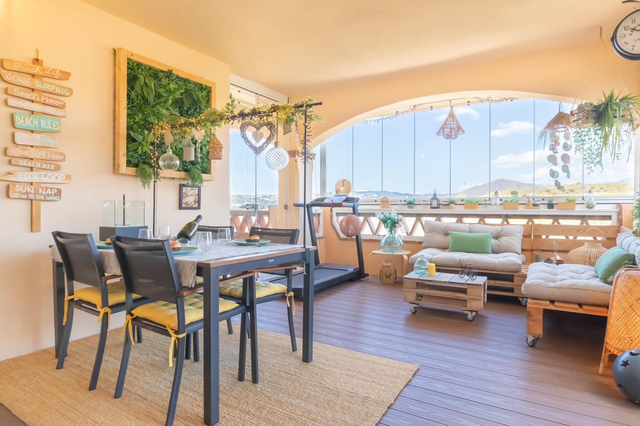 Exklusive Wohnung in Mijas Golf. Die Unterkunft verfügt über 2 Schlafzimmer mit einem Doppelbett und 2 Einzelbetten, 2 Badezimmer mit Badewanne und Dusche, eine voll ausgestattete Küche, ein großes Wohn-Esszimmer und eine Terrasse, auf der Sie verschiedene Freizeitbereiche genießen können. Die Wohnung ist perfekt ausgestattet, um einen angenehmen Aufenthalt zu verbringen. Es liegt neben den besten Golfplätzen in Mijas, Freizeit- und Restaurantvierteln, Supermärkten und nur 8 km von den symbolträchtigen Stränden von Mijas entfernt, wo es eine Vielzahl von Strandbars gibt. Sie können auch den Küstenweg genießen, der zu jeder Tageszeit ein wahres Vergnügen ist. Es verbindet Sie mit Cabopino (Marbella) sowie La Cala de Mijas. Mijas ist eine Stadt ganz in der Nähe der meistbesuchten Städte wie Fuengirola, Torremolinos, Malaga oder Marbella. Und nur 25 km vom Flughafen entfernt. Diese Unterkunft verfügt über WLAN, Klimaanlage (warm/kalt), freien Zugang zum Gemeinschaftspool und einen privaten Garagenplatz.