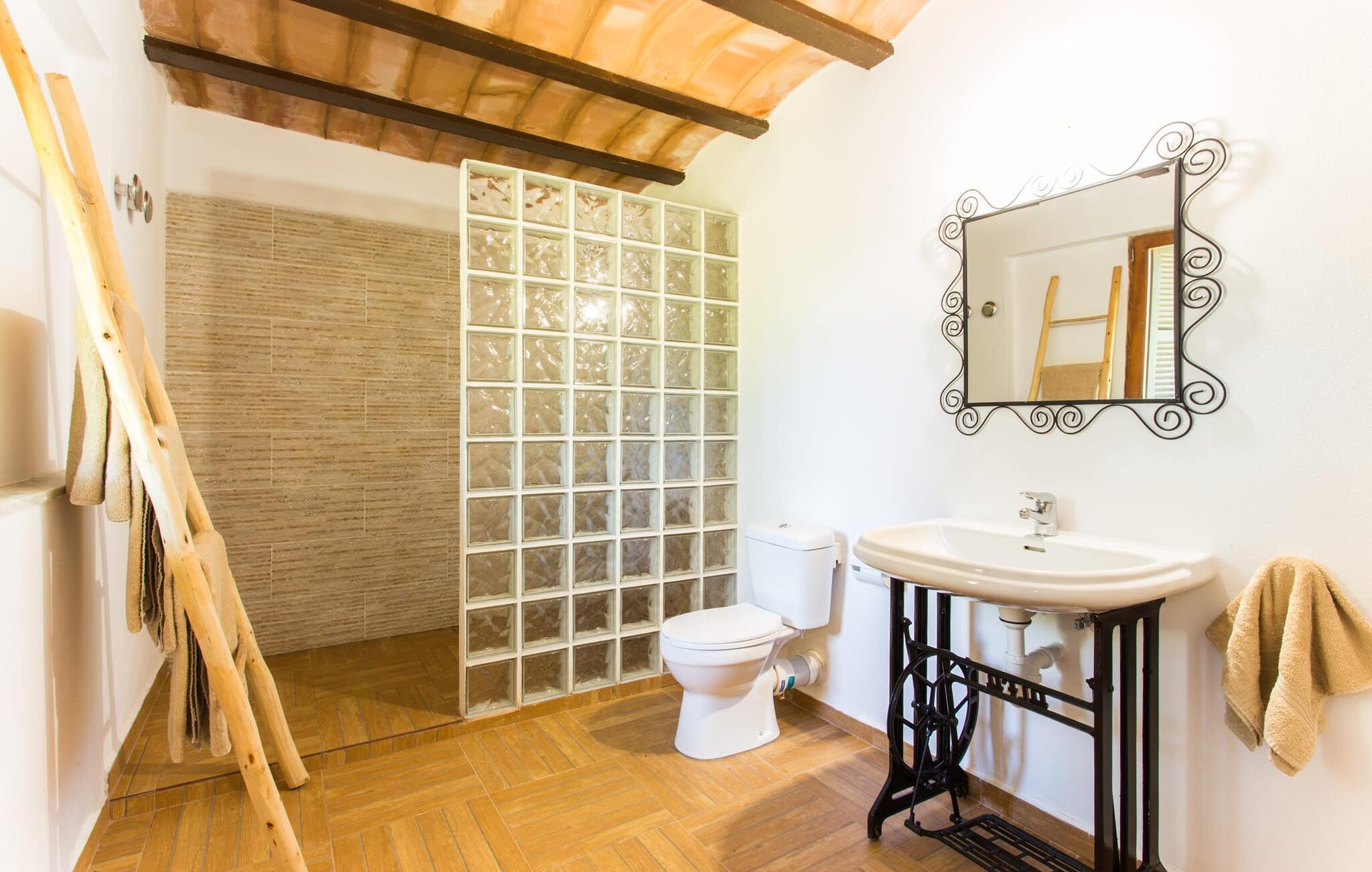 Die Villa „Mirabo Guixa“ ist eine tolle Unterkunft für Familien. Ein großer Garten mit Rasen zum Austoben? Sicherlich! Ein zusätzliches Wohnzimmer für die Jugendlichen? Natürlich. Darüber hinaus gibt es einen privaten Spielplatz mit Schaukel, Trampolin und Basketballkorb. Reicht das den Kindern immer noch nicht? Na dann, spring ins kühle, nasse, sich ausgleichende Becken, bis die große Schwester mit dem nächsten Snack zurückkommt. Ein weiteres Highlight ist sicherlich der rustikale Grillplatz auf der überdachten Terrasse. Spanischer Wein und frischer, gegrillter Fisch. Muscheln. Oder vielleicht doch Lamm? Begeben Sie sich auf jeden Fall an den wunderbar großen, ovalen Holztisch, denn er wird bestimmt lecker sein. Die ländliche Lage mit wenigen Nachbarn und der großzügige, ursprünglich begrünte Außenbereich sorgen für absolute Privatsphäre. Wer früh aus dem Bett krabbelt, schnappt sich für den ersten Morgenkaffee noch den Platz in der Hängematte im Halbschatten. Für gemütliches Beisammensein stehen diverse weitere Sitzgelegenheiten zur Verfügung. Es ist einfach unglaublich unter den natürlichen Weinblättern. Oder auf der Hollywoodschaukel mit Blick auf den Pool. Oder inmitten der grünen Oase direkt am Spielplatz. Über eine asphaltierte Auffahrt gelangen Sie bequem und direkt zum Carport mit ausreichend Stellplätzen.