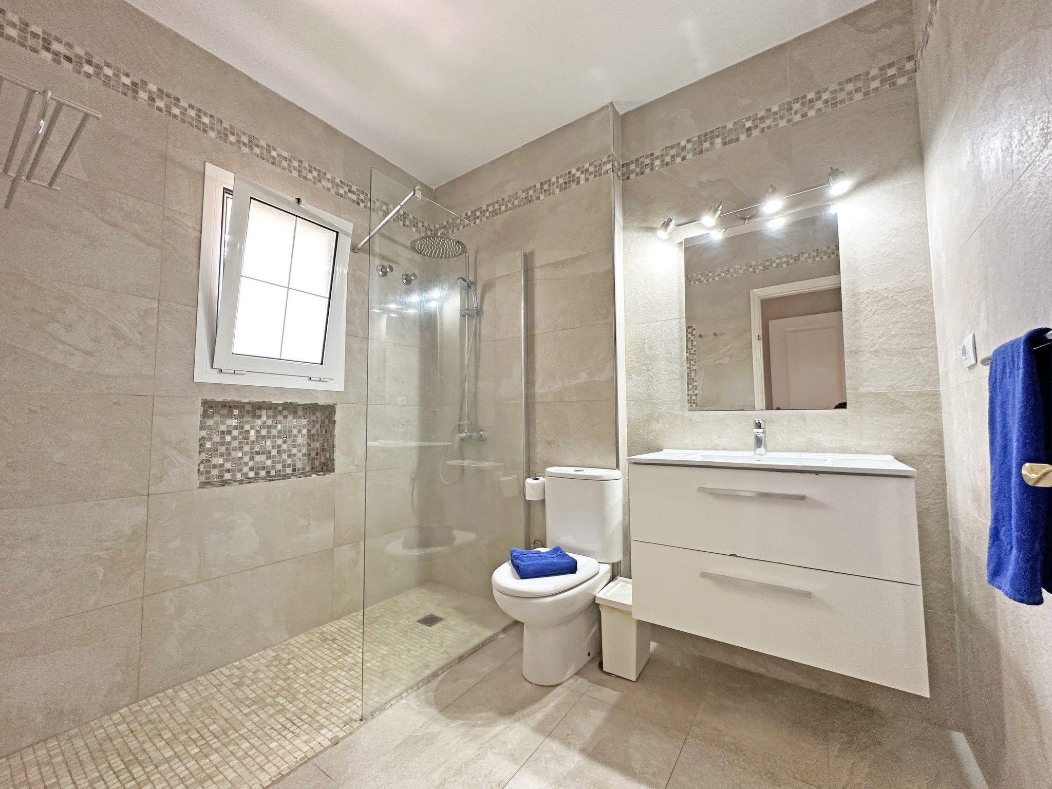 Es ist eine sehr geräumige Villa für eine maximale Belegung von 10 Personen. Im Erdgeschoss befindet sich eine voll ausgestattete Küche mit Backofen, Mikrowelle, Geschirrspüler, Kühlschrank, Gefrierschrank, Induktionskochfeld, Wasserkocher und Kaffeemaschine. Das Esszimmer hat einen runden Tisch aus Marmor und Glas und einen beeindruckenden Kamin aus Holz und Marmor. Das Wohnzimmer hat zwei Schlafsofas, Klimaanlage, Schiebetür zur Terrasse mit Blick, 46-Zoll-Plasma-TV, Wii Videospielkonsole, DVD, viele Filme, Satelliten-TV mit internationalen Kanälen. Badezimmer im Erdgeschoss. Terrasse mit Garten, Grillplatz, Außenspüle, 45 m3 Swimmingpool. Der beheizte Pool ist mit Naturstein ausgekleidet.