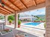 Draußen genießen Sie auf der überdachten Terrasse einen herrlichen Blick auf den Pool und die faszinierende Berglandschaft der Umgebung. Bereiten Sie leckere Gerichte für alle auf dem Grill zu und entspannen Sie auf bequemen Sonnenliegen.