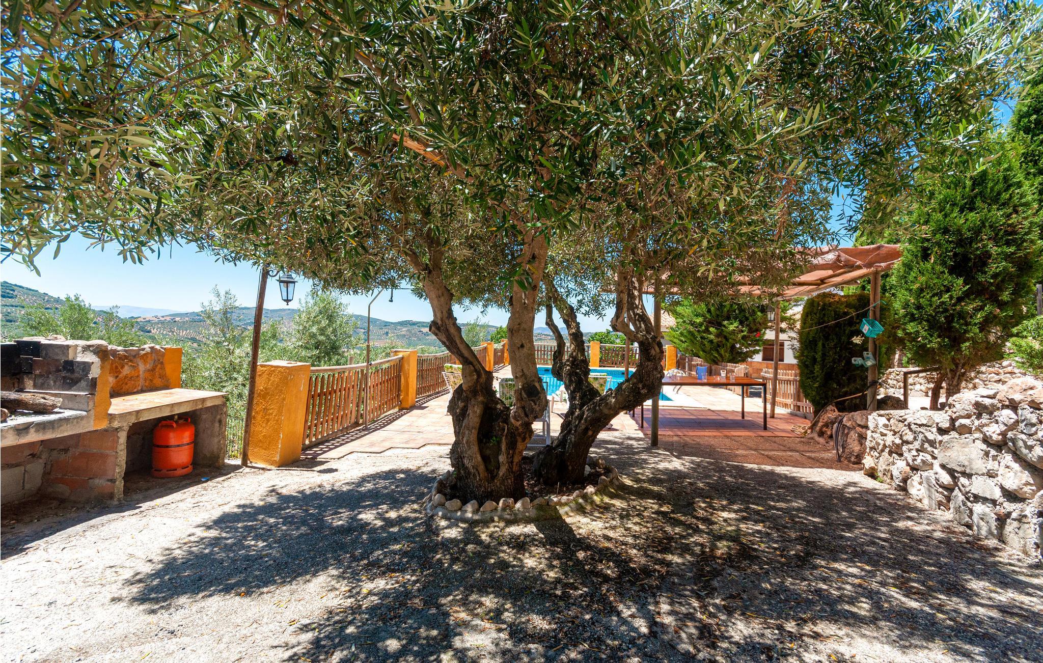 Genießen Sie die Sonne auf der überdachten Terrasse und erfrischen Sie sich im Pool, auf dem Grill können Sie leckere Urlaubsmahlzeiten zubereiten. Eine Außendusche ist ebenfalls vorhanden.
