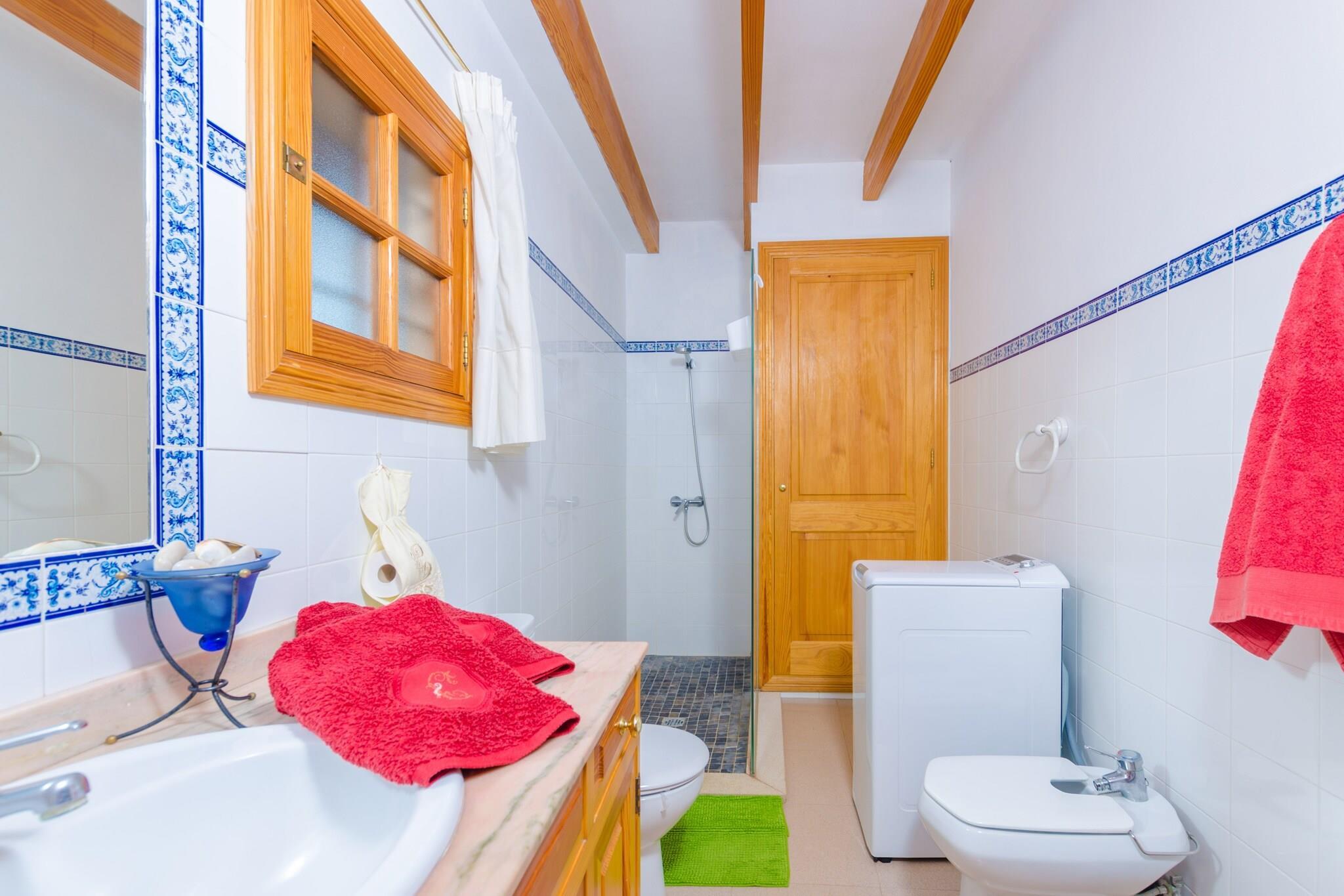 Das Landhaus ist Teil eines landwirtschaftlichen Betriebs auf dem täglich der Arbeit nachgegangen wird. Die grüne Umgebung, gepflegte Felder und mildes Klima laden zu Spaziergängen ein. Der Pool lockt, durch seine Länge von 15m, ein paar Bahnen zu schwimmen. Die Breite beträgt 4m und wird nur von unseren Gästen benutzt: Er hat eine Wassertiefe von 0,90 - 1,90m und wird mit Salz sauber gehalten. 6 Sonnenliegen und Schirme auf der Poolterrasse verlocken zum Relaxen. Es gibt eine Hollywood Schaukel und eine möblierte Veranda. Mit Solarzellen wird auf den Naturschutz geachtet und zusammen mit den Eigentümern können Sie die bewirtschafteten Felder mit Mandel-, Zitronen- und Olivenbäumen betreten. Eine Terrasse mit fest installiertem Grill, Pergola und Esstisch, der perfekte Ort für einen Grillabend mit Freunden und Familie und für lange laue Sommernächte. Es empfängt Sie ein schön gestalteter Wohn - Essbereich mit offener Küche und farbigen Akzenten. Beim gemeinsamen Essen können Sie ein Programm im Sat TV ansehen und danach auf dem bequemen Sofa Entspannen. Das Kochen wird in der Küche mit Gasherd und allen wichtigen Geräten und Utensilien zum Vergnügen. Alle Hobbyköche haben Dank des Küchentresens beste Gesellschaft und ausreichend helfende Hände. Im Erdgeschoss gibt es 2 Schlafzimmer mit je einem Doppelbett und Kleiderschrank, eins der Zimmer ist klimatisiert, und 1 Duschbad. In der oberen Etage ist 1 weiteres Schlafzimmer mit 2 Einzelbetten, Kleiderschrank und 1 WC. Auf Anfrage kann 1 Babybett und Hochstuhl bereitgestellt werden. In der Waschkammer befinden sich Waschmaschine, Bügelbrett und Bügeleisen. Montuïri ist ein Dorf in der Inselmitte mit sehr guter Verkehrsanbindung, was Ausflüge zu jedem Punkt der Insel erleichtert. Der Ort ist ruhig und hat alle wichtigen Dienstleistungen für einen unabhängigen Urlaub. Der nächste Strand ist in Palma, ca. 25km entfernt mit feinem Sand, klarem Wasser, Dienstleistungen und Wassersportmöglichkeiten. Die Inselhauptstadt lock mit zahlreichen Freizeitmöglichkeiten, Gastronomie und Kultur. Zusammengefasst ist diese Finca die richtige Wahl für alle die einen ruhigen Urlaub verbringen möchten und gleichzeitig die Möglichkeit von Trubel und Unterhaltung schätzen. Eventuelle Nebenkosten müssen beim Anbieter nachgefragt werden. Haustiere sind verboten. Partys oder ähnliche Veranstaltungen sind nicht gestattet. Es gibt Freiluftparkplätze für 2 Autos. Entfernungen Strand: 24.6 km - Platja de Palma Flughafen: 22.1 km - Son Sant Joan Golfplatz: 21.2 km - Golf Son Gual Ortsmitte: 3 km - Montuiri Bahnhof: 8.7 km - Sineu Bushaltestelle: 3.7 km - Montuiri Fähre: 32.6 km - Port de Palma Krankenhaus: 25.7 km - Hospital Son Llàtzer Touristen Lizenz: ETV/8165Einheitsregister: ESFCTU00000702900043635300000000000000000000ETV/81652Bei der Anreise muss die Ecotasa (Touristensteuer der Balearen) bar bezahlt werden. Der zu zahlende Betrag beträgt zwischen 0.55EURO pro Nacht und Gast in der Nebensaison und 2.2EURO pro Nacht und Gast in der Hochsaison. Ab dem 9. Tag reduziert sich die Steuer um die Hälfte. Personen unter 16 Jahren sind davon ausgenommen. Klimaanlage (Jan - Dezember): 10 EUR/Nacht (optional)