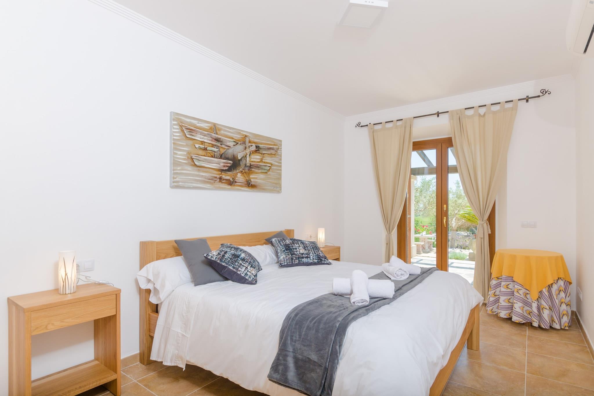 Der spektakuläre Blick von den 2 Terrassen die das Haus umgeben ist wirklich unvergleichlich schön. Lassen Sie den Blick über weite Ebenen und Felder schweifen, lehnen Sie sich zurück und vergessen Sie den Alltag! Im 8 x 4m großen Salzwasserpool können Sie sich erfrischen und sich auf einer de 7 Sonnenliegen von der Sonne verwöhnen lassen. Die Wassertiefe des Pools geht von 1 - 1,80m, leicht abfallend. Einem Grillabend steht dank des fest installiertem Grills auch nichts im Wege. Für die Mahlzeiten an der frischen Luft gibt es eine möblierte Veranda und bequeme Gartensofas laden Sie ein, den Tag gemütlich auf der Terrasse ausklingen zu lassen. Den geräumigen Salon betreten Sie von der Terrasse. Hier erwaten Sie gemütliche Sofas, Klimaanlage, Pelletofens und es verfügt über Sat TV. In der modernen, klimatisierten Wohnküche befindet sich ein Essplatz für 6 Personen. Auf einem Cerankochfeld können Sie Ihre Lieblingsgerichte zubereiten und verfügen dafür über alle wichtigen Geräte und Utensilien. Die Waschkammer ist mit einer Waschmaschine, Trockner, Bügelbrett und Bügeleisen ausgestattet. Ein grosses Duschbad ist für alle Bewohner zugänglich. Nach ereignisreichen Urlaubstagen freuen Sie sich in einem der insgesamt 3 Schlafzimmer auszuruhen. 2 der Zimmer sind mit je 1 Doppelbett, 1 mit 2 Einzelbetten eingerichtet. Alle Zimmer sind klimatisiert, haben je 1 Kleiderschrank und Zugang zu den Terrassen. Auf Anfrage wird gerne ein Babybett und Hochstuhl bereitgestellt. Die Finca liegt nur 3km von Montuïri entfernt, einem schönen Dorf in der Inselmitte, in dem Sie alle nötigen Serviceleistungen finden, die Sie für einen unabhängigen Urlaub brauchen. Neben einem Supermarkt, einigen Geschäften gibt es auch ein paar Bars und Restaurants, in denen Sie die typisch mallorquinische Küche oder ein "Pa amb Oli" probieren können. Die Region ist landwirtschaftlich geprägt, neben typischen Windmühlen auf den Feldern der Umgebung, gibt es mittelalterliche Überreste und mallorquinische Kultur zu entdecken. Die Landstraße Ma-15 sorgt dafür, dass Sie jeden Punkt der Insel schnell und gut erreichen, so natürlich auch die unglaublichen und paradiesischen Stränden und Buchten wie Portocolom, 31 km entfernt, oder Sa Ràpita und das Naturschutzgebiet Es Trenc. Besuchen Sie den sonntäglichen Markt im nahe gelegenen Felanitx , Sie werden es nicht bereuen. Eventuelle Nebenkosten müssen beim Anbieter nachgefragt werden. Haustiere sind verboten. Partys oder ähnliche Veranstaltungen sind nicht gestattet. Es gibt Freiluftparkplätze für 4 Autos. Entfernungen Strand: 31 km - Portocolom Flughafen: 21.4 km - Son Sant Joan Golfplatz: 23 km - Golf Puntiró Ortsmitte: 3 km - Montuiri Bahnhof: 23.7 km - Manacor Bushaltestelle: 3 km - Montuiri Fähre: 32 km - Port de Palma Krankenhaus: 23.8 km - Hospital de Manacor Touristen Lizenz: ETV/10373Einheitsregister: ESFCTU0000070290004360180000000000000000000ETV/103734Bei der Anreise muss die Ecotasa (Touristensteuer der Balearen) bar bezahlt werden. Der zu zahlende Betrag beträgt zwischen 0.55EURO pro Nacht und Gast in der Nebensaison und 2.2EURO pro Nacht und Gast in der Hochsaison. Ab dem 9. Tag reduziert sich die Steuer um die Hälfte. Personen unter 16 Jahren sind davon ausgenommen. Stromverbrauch (Jan - Dezember): 0.45 EUR/Kw (obligatorisch)