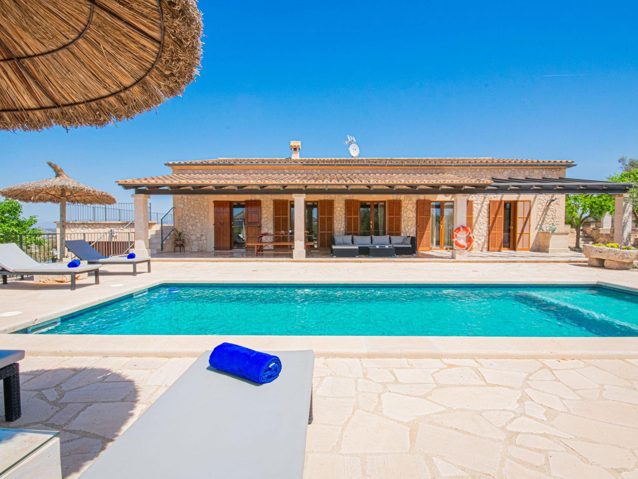 Can Roca liegt nur 5 Minuten von Montuïri entfernt, im Zentrum von Mallorca. Diese wunderschöne Finca bietet einen atemberaubenden Panoramablick auf die Insel. Sie verfügt über einen Swimmingpool, der von Sonnenschirmen und Hängematten umgeben ist, um die Sonne zu genießen, sowie über einen eingebauten Grill, um Mahlzeiten im Freien zu genießen. Außerdem gibt es eine überdachte Terrasse mit einem bequemen Sofa zum Entspannen und einem Tisch, an dem man essen kann, während man die Umgebung genießt. Das Haus verfügt über eine voll ausgestattete Küche mit allen modernen Geräten wie Backofen, Herd, Mikrowelle, Kühlschrank, Geschirrspüler und Dunstabzugshaube, die alles bietet, was man zum täglichen Leben braucht. Das geräumige und helle Wohnzimmer ist ideal zum Entspannen, während die drei Schlafzimmer, alle mit Einbauschränken, Komfort bieten. Eines der Schlafzimmer verfügt über ein Doppelbett von 1,60x200, ein weiteres über ein Doppelbett von 1,40x200 und das dritte über Einzelbetten von 90x200. Das Anwesen verfügt über ein großes Badezimmer mit zwei Armaturen, eine Toilette und eine Dusche, bietet alles, was Sie für einen angenehmen Aufenthalt benötigen, ist die Waschküche mit Waschmaschine, Trockner und ein Trockengestell ausgestattet, um die Wartung von Kleidung zu erleichtern.