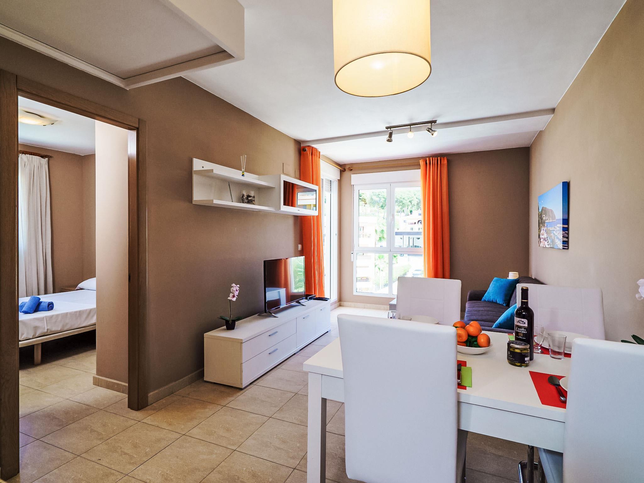 "Sueno del Mar", 3-Zimmer-Wohnung 60 m2. Hell, sehr schön und gemütlich eingerichtet: Wohn-/Esszimmer mit Internationale TV-Sender, Flachbildschirm und Klimaanlage. Ausgang zur Terrasse. 1 Doppelzimmer mit (2 x 90 cm, Länge 200 cm), Dusche/WC und Klimaanlage. 1 Zimmer mit 2 Betten (90 cm, Länge 200 cm), Klimaanlage. Offene Küche (Backofen, Geschirrspüler, 4 Glaskeramikplatten, Mikrowelle, Tiefkühler, elektrische Kaffeemaschine). Dusche/WC. Heizung, Warmluftheizung. Balkon. Terrassenmöbel. Zur Verfügung: Waschmaschine, Bügeleisen. Internet (WLAN, gratis). Garage. Bitte beachten: geeignet für Familien Wohnung auf Hofseite. Nichtraucher-Unterkunft. AT-458126-A // Reg. Nr.: ESFCTU00000303800085629400000000000000000AT-458126-A4