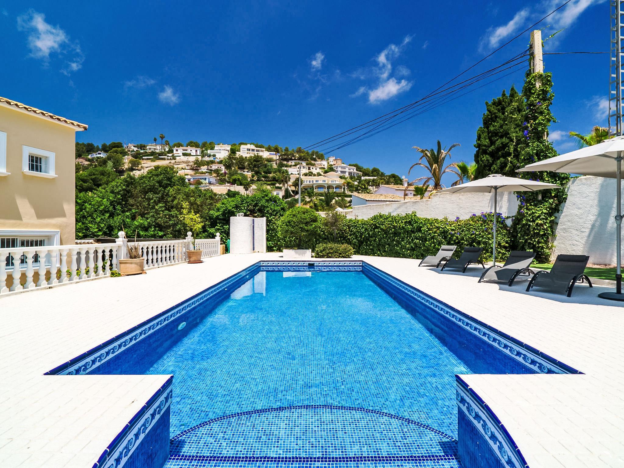 Los Bancales Benissa: Sehr schönes, gemütliches, komfortables Haus "Alina", auf 2 Stockwerken. Im Ortsteil Benissa, 8 km vom Zentrum von Moraira, 8 km vom Zentrum von Calpe, alleinstehende, ruhige, sonnige Lage, 1.5 km vom Meer, 1.5 km vom Strand, in einer Sackgasse. Zur Alleinbenutzung: grosser, schöner, gepflegter Garten 910 m2 (eingezäunt) mit Rasen und Bäumen, Schwimmbad eckig (4 x 10 m, 140 - 220 cm tief, saisonale Verfügbarkeit: 01.Jan. - 31.Dez.) mit Innentreppe. Aussendusche, Terrasse, Gartenmöbel. Im Hause: Internetzugang, Wireless LAN, Waschmaschine. Parkplatz (für 3 Autos, überdacht) auf dem Grundstück. Carport. Supermarkt 1.5 km, Restaurant 1.5 km, Bushaltestelle 7 km, Sandstrand 5 km, Badebucht 1.5 km. Golfplatz (9 Loch) 8 km. Bitte beachten: Fahrzeug empfohlen. Geeignet für Familien, geeignet für Senioren. Der Besitzer akzeptiert keine Jugendgruppen.
