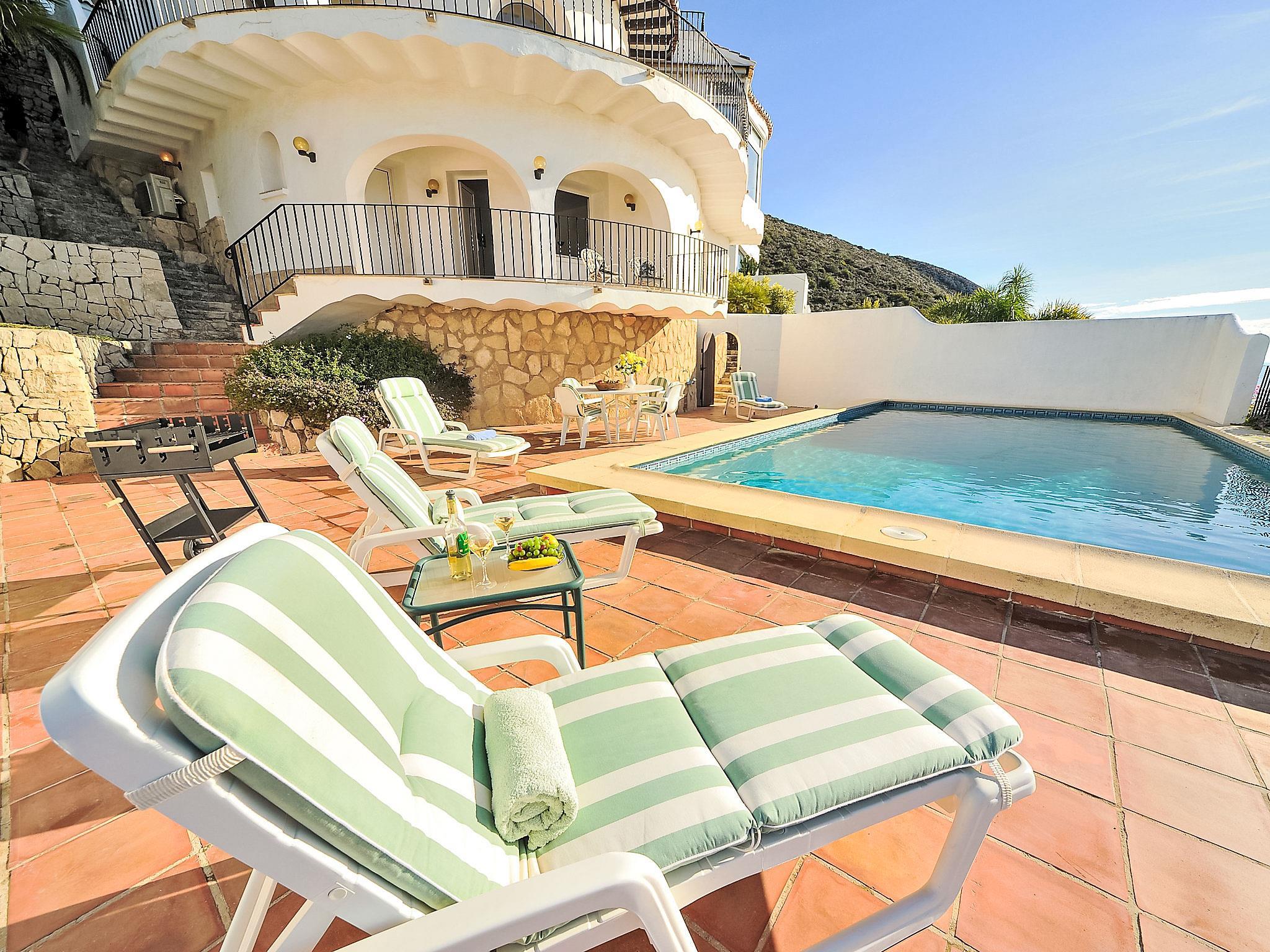 Sehr schöne, komfortable Villa "Vista Panorama", auf 3 Stockwerken. Im Ortsteil El Portet, ruhige, sonnige Lage am Hang, 300 m vom Meer, 300 m vom Strand. Zur Alleinbenutzung: terrassierter Garten mit Pflanzen und Blumen, Schwimmbad eckig (5 x 10 m, 140 - 220 cm tief, saisonale Verfügbarkeit: 01.Jan. - 31.Dez.) mit Innentreppe. Im Hause: Zentralheizung. Parkplatz auf dem Grundstück. Einkaufsgeschäft 2 km, Supermarkt 2 km, Restaurant 300 m, Bushaltestelle 3.2 km. Sporthafen 1.5 km. Der Besitzer akzeptiert keine Jugendgruppen.