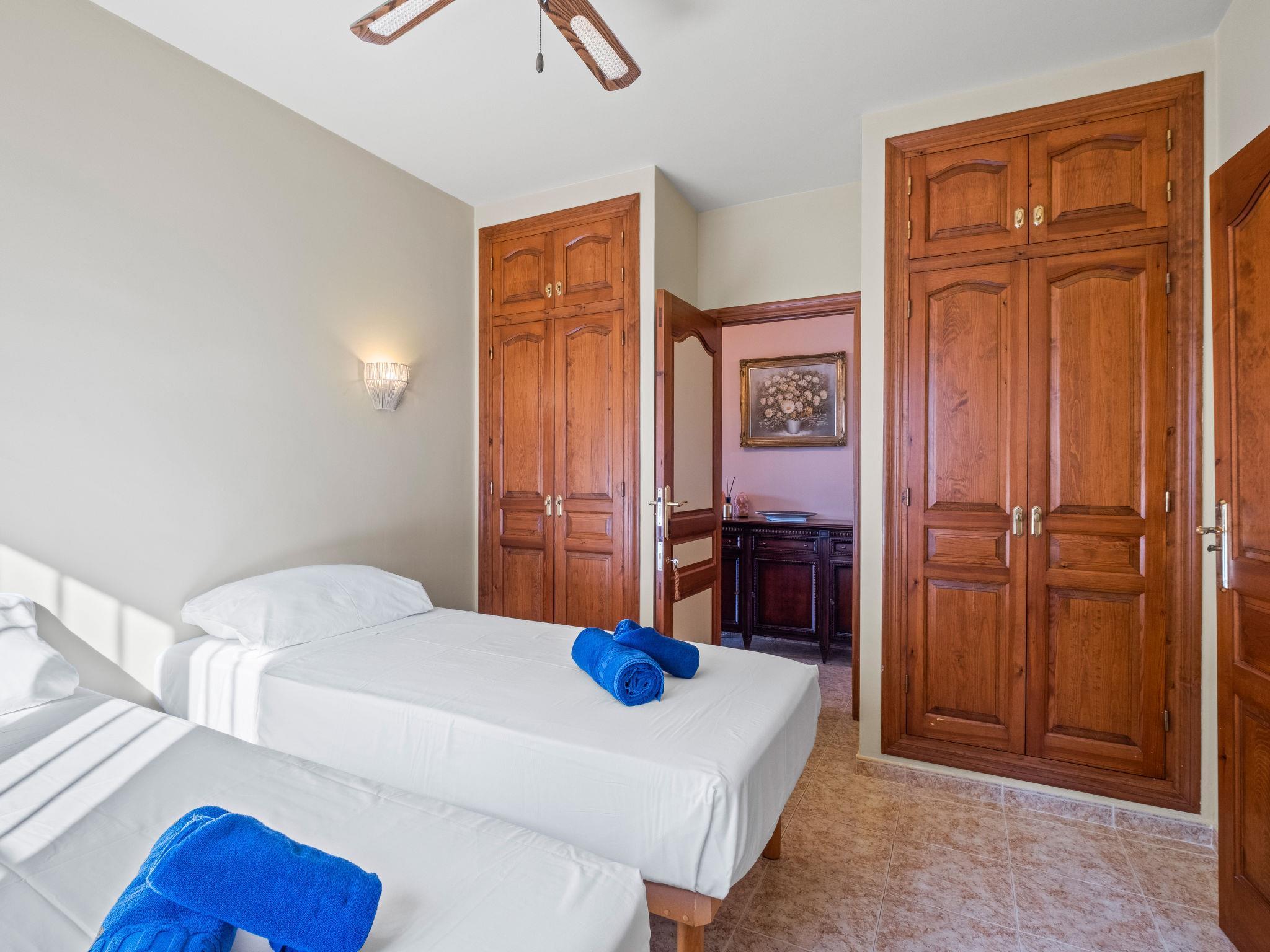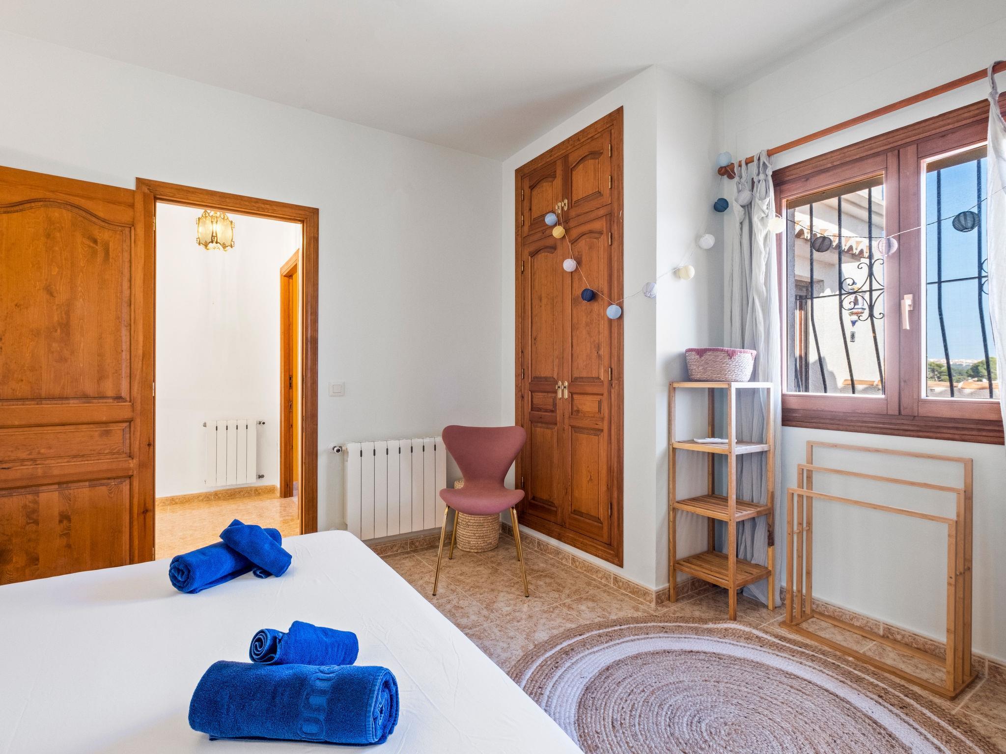 "Moraira Magica", 4-Zimmer-Villa 253 m2 auf 2 Stockwerken. Geräumig und hell, komfortabel und schön eingerichtet: offenes Wohn-/Esszimmer. Esszimmer. Ausgang zur Terrasse, zum Schwimmbad. 1 Zimmer mit 2 Betten (90 cm, Länge 200 cm), Dusche/WC, Klimaanlage, Ventilator und Warmluftheizung. Küche (Backofen, Geschirrspüler, 4 Glaskeramikplatten, Toaster, Wasserkocher, Mikrowelle, elektrische Kaffeemaschine). Sep. WC. Obergeschoss: 1 Zimmer mit 1 franz. Bett (1 x 160 cm, Länge 200 cm), Dusche/WC, Klimaanlage und Warmluftheizung. 1 Zimmer mit 2 Betten (90 cm, Länge 200 cm), Bad/WC, Klimaanlage und Warmluftheizung. Ausgang zur Terrasse. Grosse Terrasse. Terrassenmöbel, Gartengrill. Schöne Sicht auf das Meer, die Ortschaft und das Städtchen. Zur Verfügung: Waschmaschine, Bügeleisen, Haartrockner. Internet (WLAN, gratis). Parkplatz. Bitte beachten: Nichtraucher-Haus. VT-510168-A // Reg. Nr.: ESFCTU00000303800079367400000000000000000VT-510168-A2