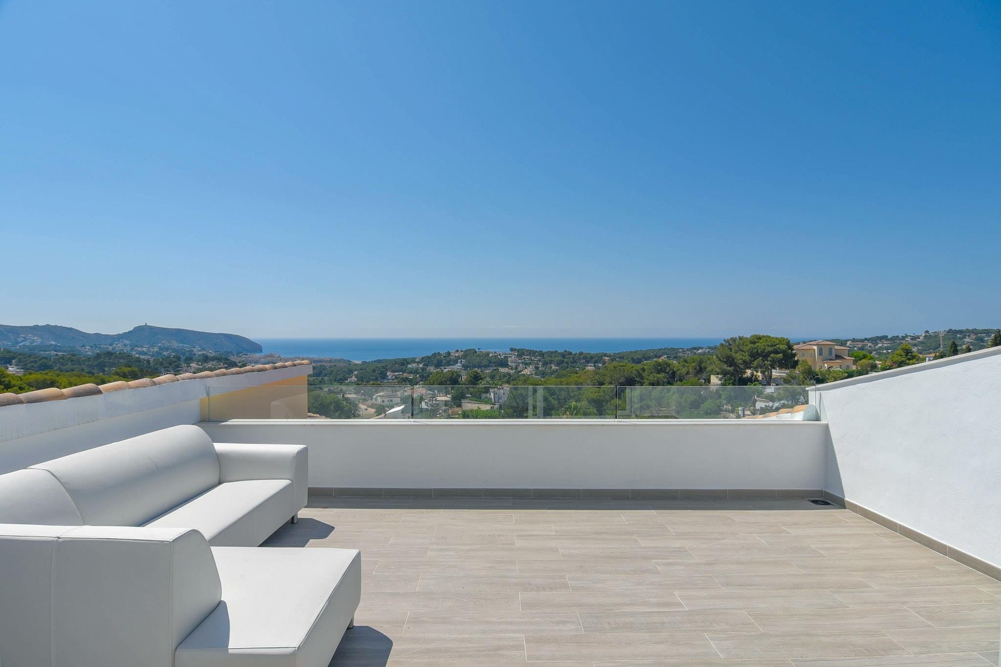 Entspanntes Leben an der Küste Diese Villa im charmanten Küstenort Moraira verbindet Komfort mit atemberaubendem Meerblick und viel Platz zum Entspannen. Der private Pool lädt zu erfrischenden Bädern ein, während die großzügige Terrasse und der eingezäunte Garten ruhige Plätze zum Sonnenbaden bieten. Genießen Sie unvergessliche Abende mit einem Barbecue oder Plancha-Grill unter freiem Himmel. Die hellen Wohnbereiche und die gut ausgestattete Küche der Villa eignen sich ideal für Familien oder Gruppen und ermöglichen einen perfekten Ausgleich zwischen Entspannung und gemeinsamen Mahlzeiten. Strände und Kultur entdecken Von der Villa aus sind die goldenen Sandstrände von La Fustera, Moraira und El Portet nur wenige Minuten entfernt – ideal zum Schwimmen, Schnorcheln oder Tauchen. Für Aktivurlauber bietet die Region außerdem Reitmöglichkeiten, malerische Wanderungen und nahegelegene Golfplätze. Morairas historische Strandburg verleiht der Villa einen kulturellen Touch, während Tagesausflüge nach Valencia Besuche des Zentralmarkts und der Kathedrale ermöglichen. Feinschmecker werden besonders die Tapas und Weine aus lokalen Muskatellertrauben genießen – ein wahrer Geschmack der Costa Blanca. Komfort für jeden Aufenthalt Klimaanlage und Zentralheizung sorgen für Komfort zu jeder Jahreszeit. Die Schlafzimmer sind geräumig, und mehrere Badezimmer machen Gruppenaufenthalte komfortabel. Im Außenbereich laden die überdachte Küche und die großzügigen Sitzbereiche zum Essen im Freien ein. Ob Sie am Pool entspannen, im Wintergarten lesen oder Ihren Morgenkaffee mit Aussicht genießen – jeder Winkel dieser Villa ist auf ein entspanntes Küstenleben ausgelegt.