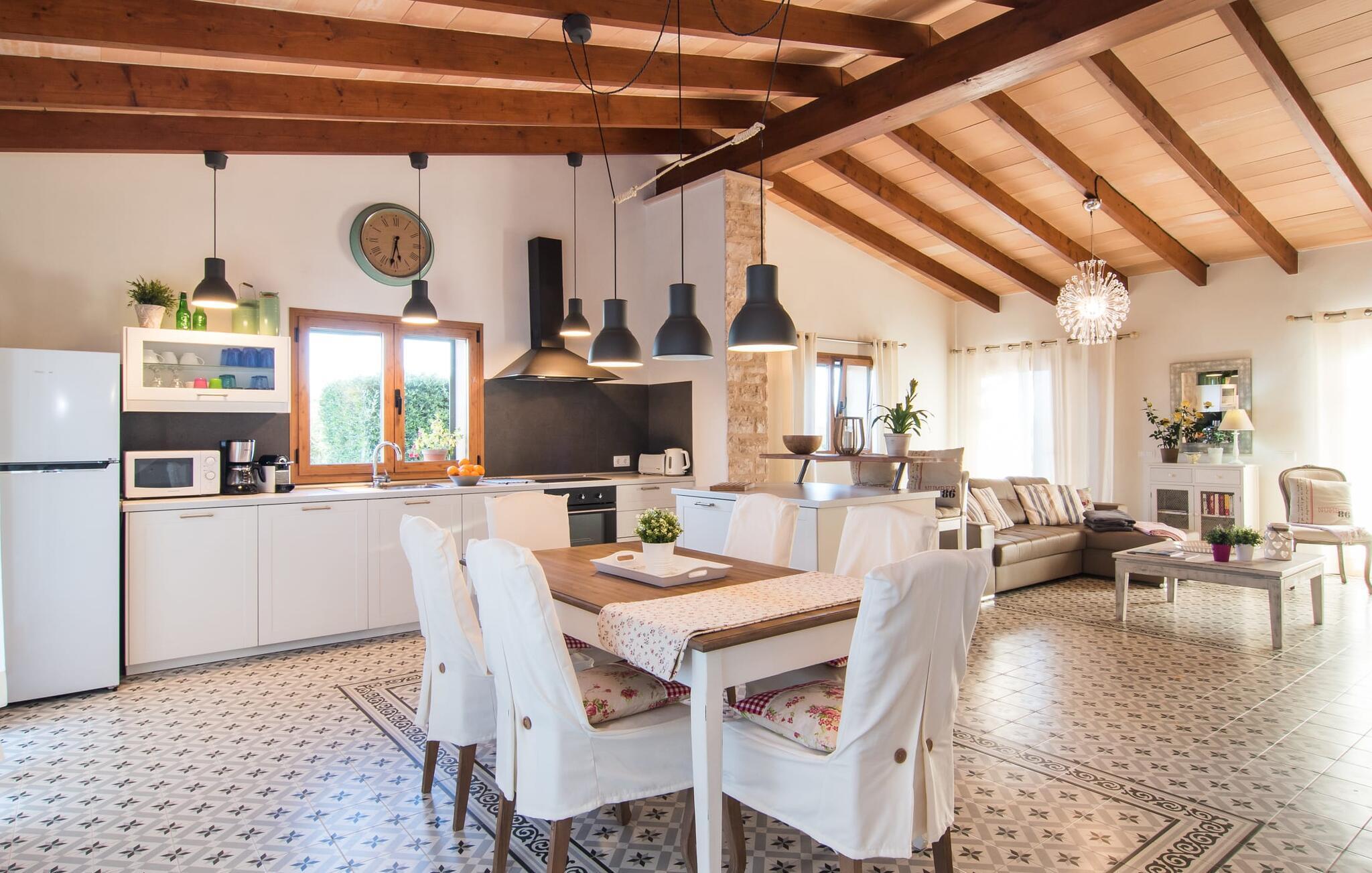 Trotz der ländlichen Lage des Hauses ist es dennoch ein hervorragender Ausgangspunkt für verschiedene Ausflüge zur Erkundung der Insel. Die Villa liegt westlich des kleinen Ortes Ses Salines, der in 5 Minuten mit dem Auto zu erreichen ist. Ses Salines ist der Inbegriff einer traditionellen mallorquinischen Kleinstadt, in der Sie alles finden sollten, was Sie für einen erholsamen Urlaub brauchen. Da die Villa nur 250 m von einer kleinen Landstraße entfernt liegt, ist es auch sehr einfach, verschiedene Küstenstädte wie Colònia de Sant Jordi zu erreichen. Die Küste nördlich von Colònia de Sant Jordi bietet einige wunderschöne Sandstrände, allen voran den spektakulären Strand Es Trenc. Und abends, wenn Sie mit Ihren täglichen Ausflügen fertig sind, können Sie zurückkommen und die Privatsphäre der schönen Villa „Morell“ genießen. Wir von Fincallorca wünschen Ihnen einen angenehmen und erholsamen Aufenthalt. Die 2015 erbaute Villa „Morell“ liegt idyllisch auf dem Land, nur 5 Autominuten vom malerischen Städtchen Ses Salines entfernt. Sie können in die Stadt fahren, um Lebensmittel und andere Dinge des täglichen Bedarfs einzukaufen, und donnerstags können Sie sogar auf dem wöchentlichen Bauernmarkt einkaufen. Die schöne Küstenstadt Colònia de Sant Jordi ist ebenfalls nur 4 km entfernt. Dieses ehemalige Fischerdorf verfügt über zwei wunderschöne Sandstrände, der nördliche davon ist der berühmte unberührte Naturstrand Es Trenc.