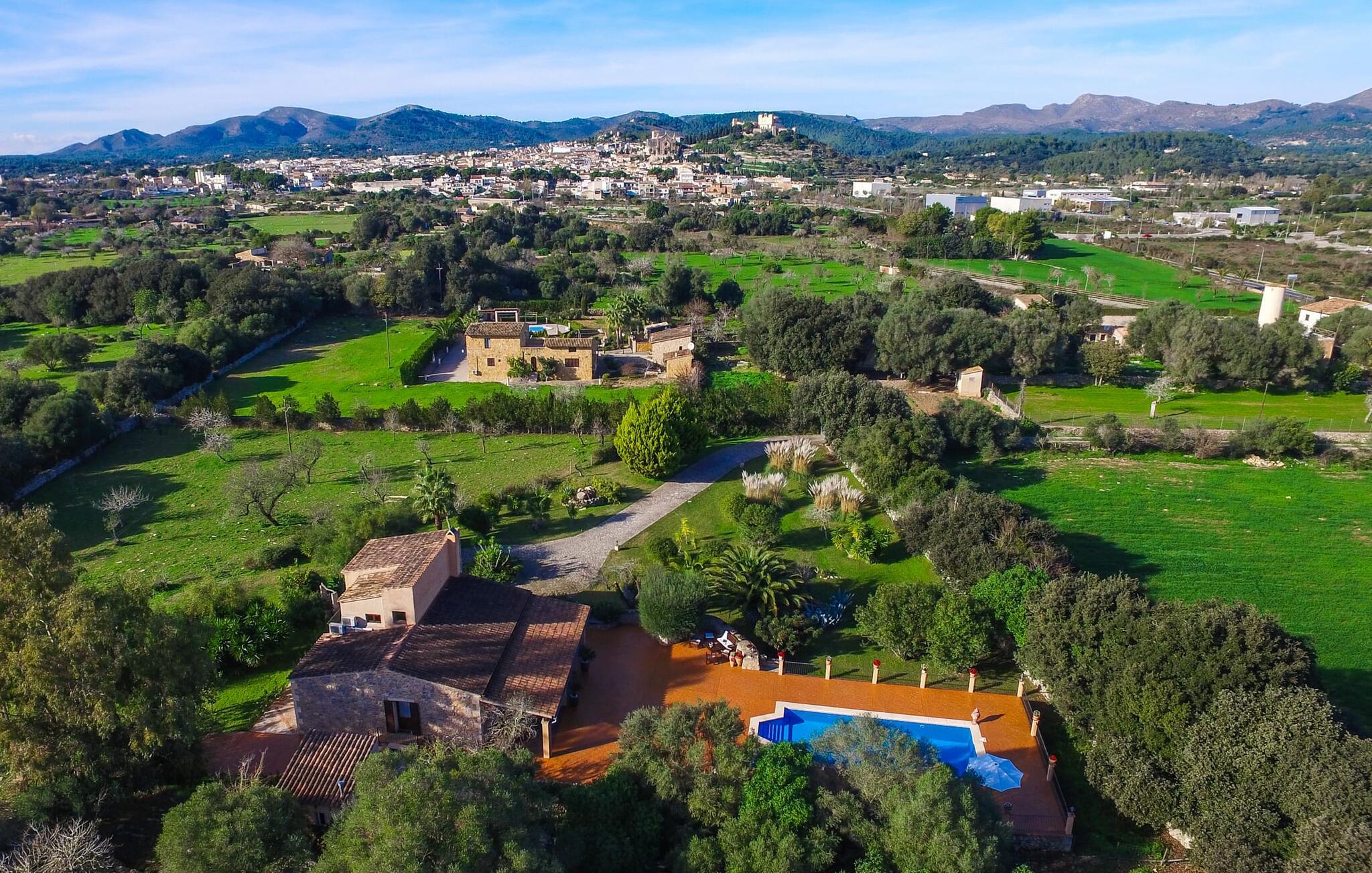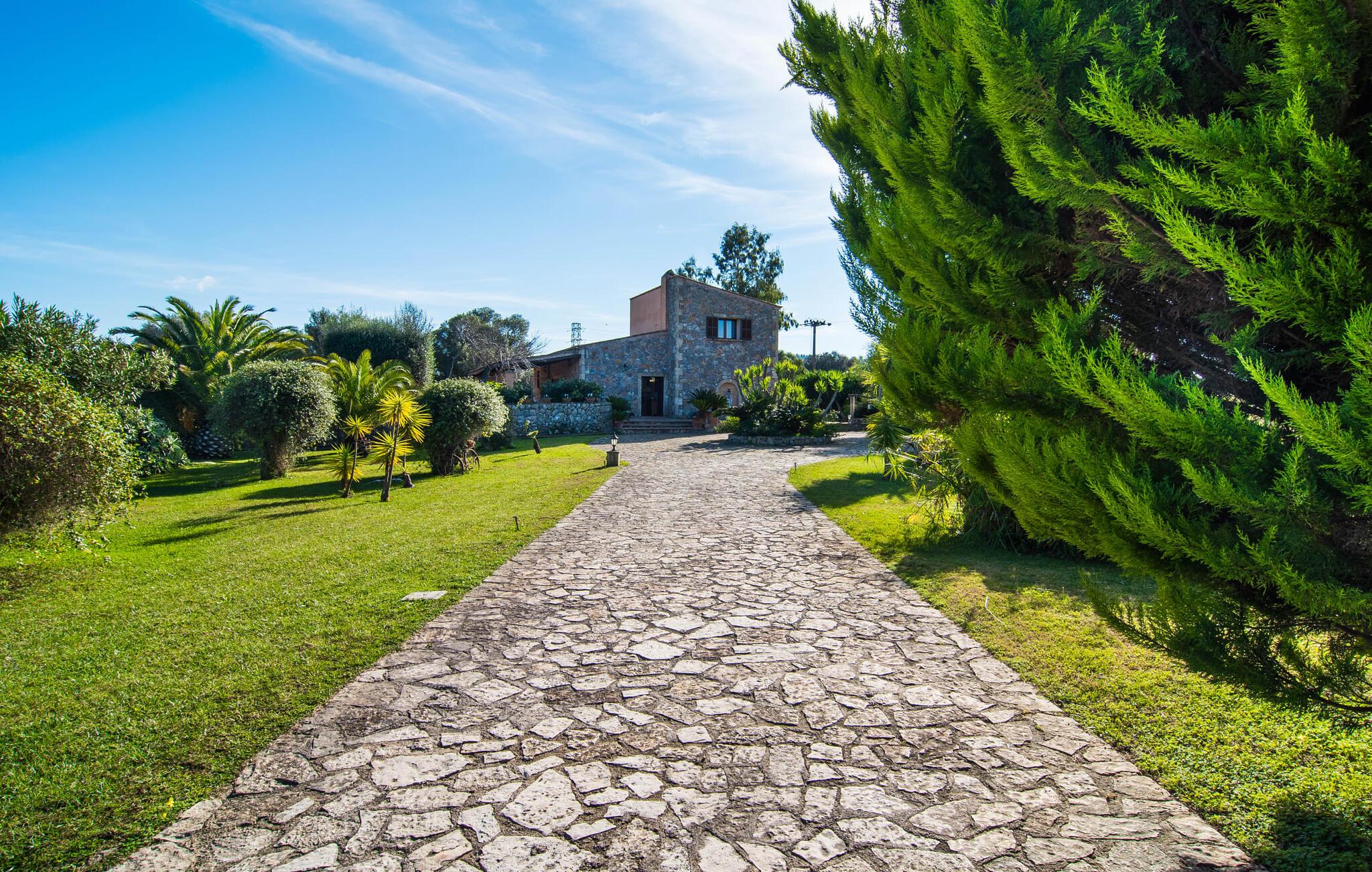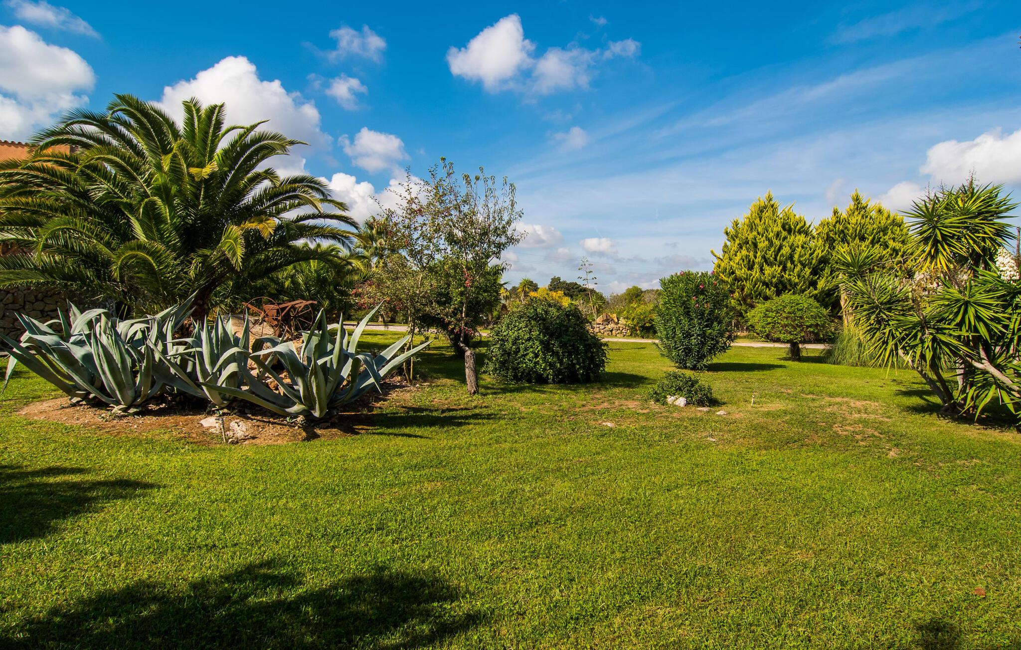Im Inneren wechseln sich Natursteinmauern mit hell und freundlich weiß getünchten Wänden ab. Das unter massiven Holzbalkendecken eingebettete Wohnzimmer ist der ideale Ort, um ein paar entspannte Stunden auf dem Ecksofa zu verbringen und sich dabei vor dem modernen Fernseher für eine Weile nach Hause zu holen. Die grün geflieste Küche nebenan ist eine weitere Gelegenheit, sich beim Zubereiten Ihrer Köstlichkeiten wie zu Hause zu fühlen. Andererseits verbringen Sie Ihren Urlaub auf einer wunderschönen Insel und in einem wunderschönen Haus, das mit seiner Inneneinrichtung viel von der ursprünglichen Atmosphäre des ländlichen Insellebens vermittelt. Schnappen Sie sich also Töpfe und Pfannen und lassen Sie Ihren Gaumen die mallorquinische Lebensart entdecken. Die Küche ist mit einem Backofen, einem Kühlschrank, einer Mikrowelle, einer Waschmaschine und einem Geschirrspüler ausgestattet – alle modernen Annehmlichkeiten stehen Ihnen zur Verfügung. Luxuriöse Fußbodenheizung sowie Klimaanlage sorgen dafür, dass Sie Ihren Urlaub bei idealer Temperatur genießen können. Auch die Möblierung der drei gemütlichen Doppelzimmer passt perfekt zum antiken Charakter des Hauses. Eines der Schlafzimmer ist mit zwei Einzelbetten ausgestattet und bietet somit vielfältige Übernachtungsmöglichkeiten. Das Badezimmer ist außerdem mit einem Bidet und einer Badewanne ausgestattet.
