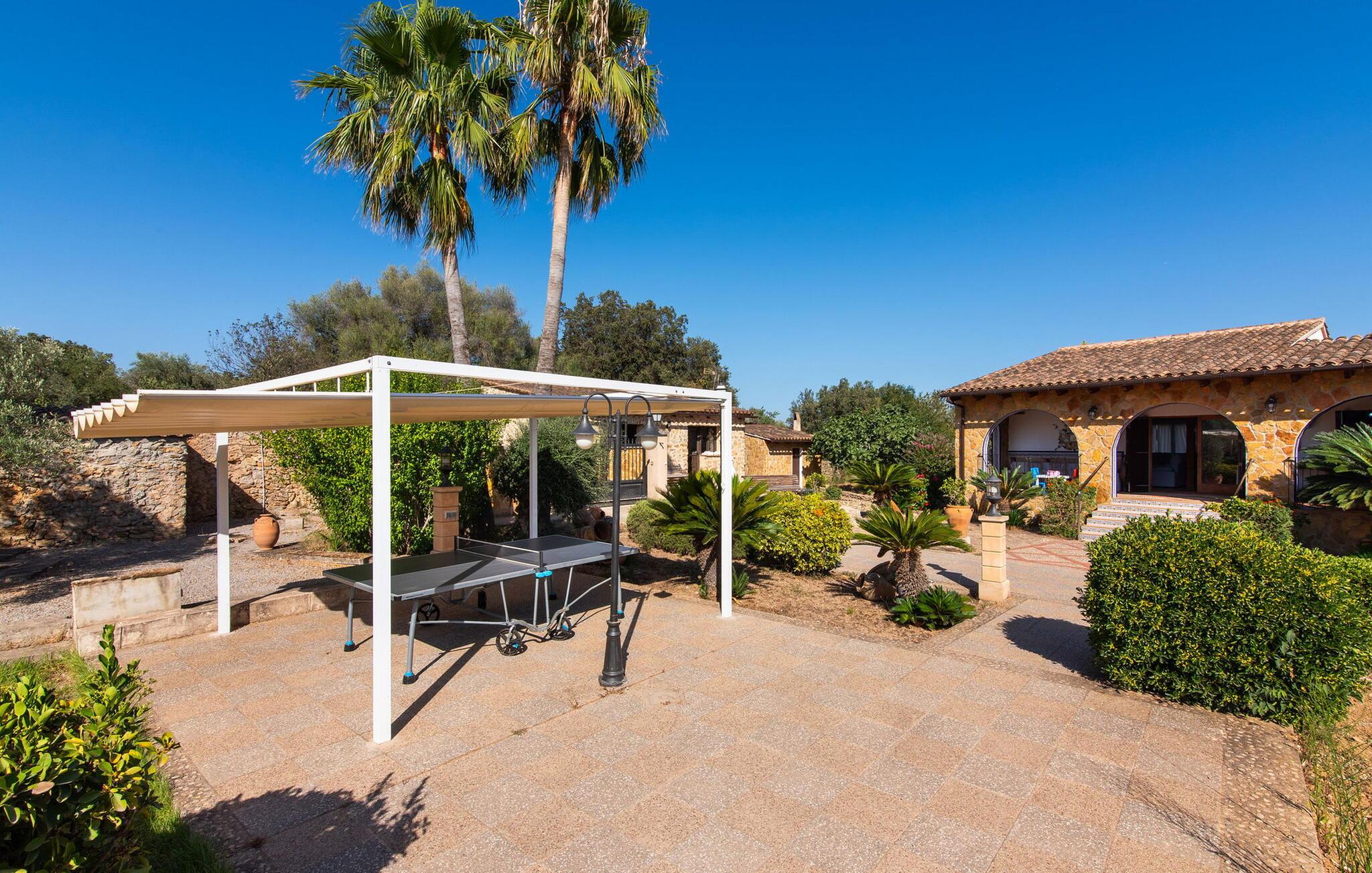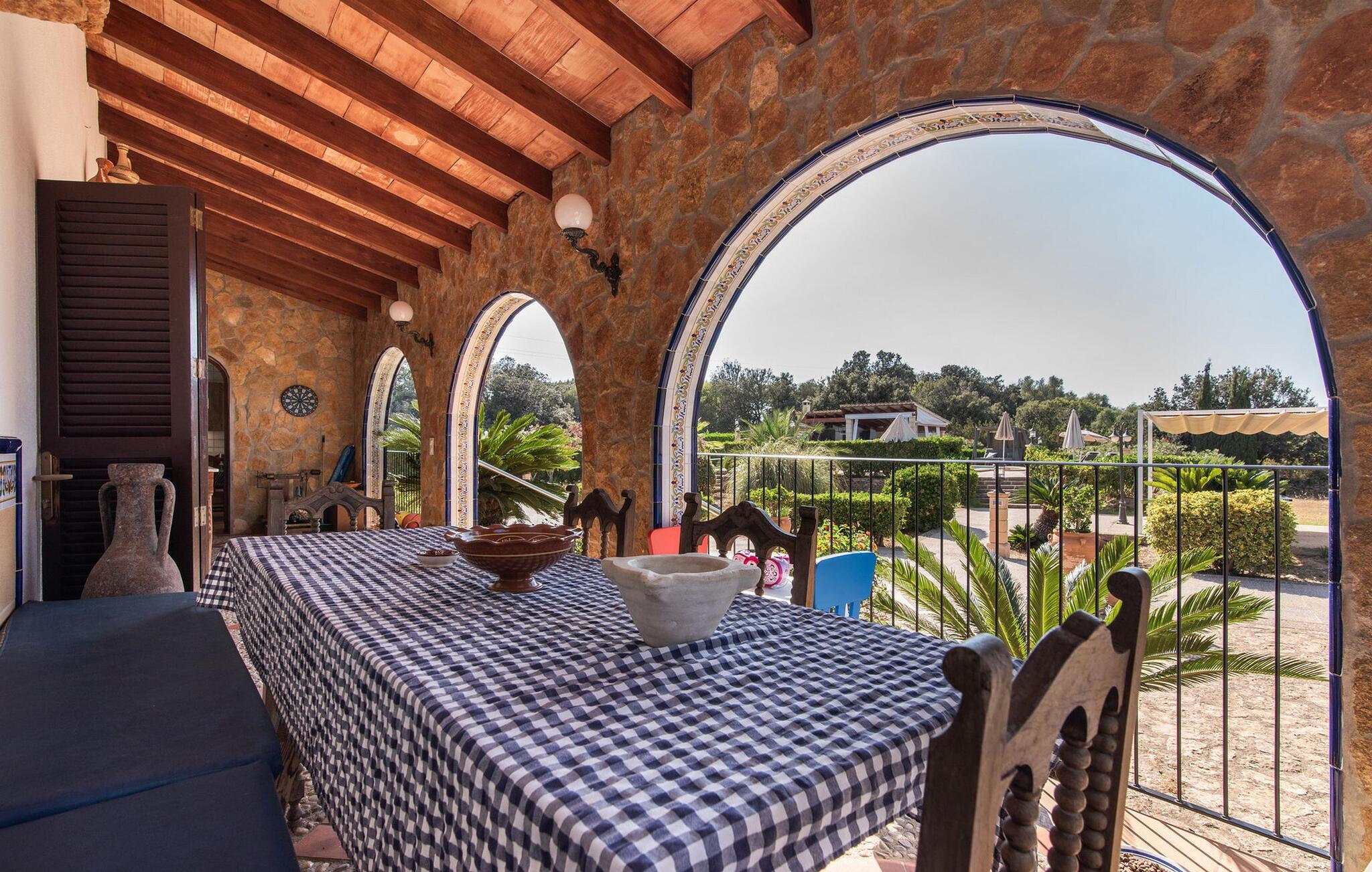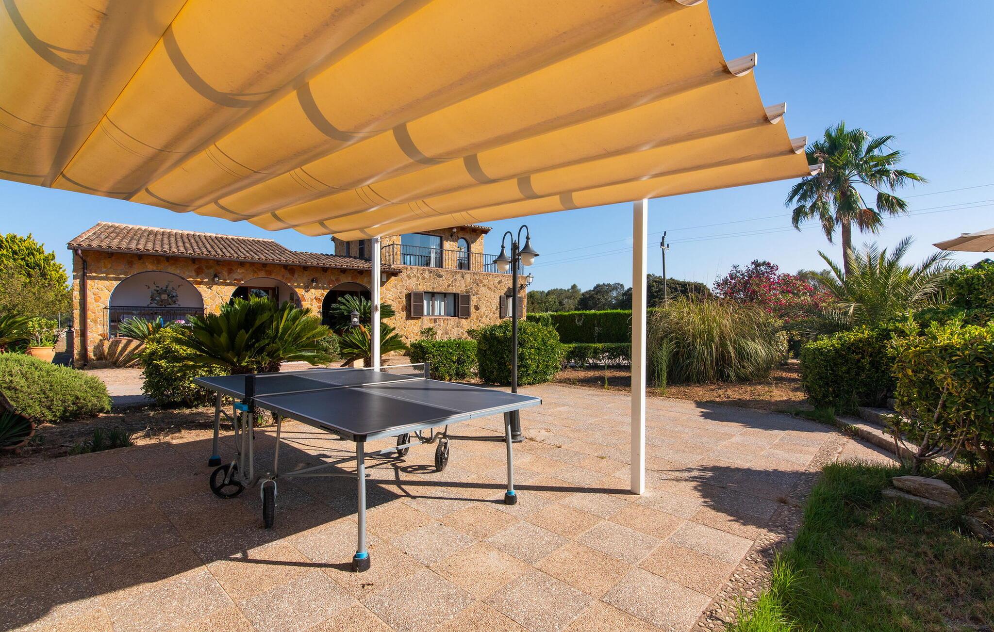Das malerische Landhaus „Na Peixet“ wurde auf einem idyllisch und ruhig gelegenen Grundstück mit herrlicher mediterraner Vegetation errichtet. Die Villa zeigt typisch mallorquinische Architektur und Baumaterialien wie Naturstein, Lehmziegel und Eichenholz. Terrassen und Gartenwege rund um das Haus wurden dekorativ mit Flusskieseln gestaltet und verleihen dem Anwesen, auch durch viele weitere besondere Details, ein ganz individuelles Flair. Der Ausblick von diesem Ferienhaus ist absolut sensationell: Man sieht sowohl die Burg von Artà als auch das Castillo von Capdepera. Im ersten Stock gibt es zwei Dachterrassen, von denen Sie einen fantastischen Ausblick genießen können. Herzstück des Außenbereichs ist der leicht erhöhte Pool umgeben von grünem Gras und einer Lounge-Terrasse. Eine Außendusche befindet sich praktischerweise auch direkt in der Nähe, ebenso wie die geniale Veranda, der stilvoll überdachte Teil, unter dem Sie bei einer leichten Brise und geschützt vor der Sonne sitzen können. Zwischen Pool und Haus liegt der heimelige Grillplatz mit ummauertem Grill, der besonders an lauen Abenden zu leckeren Grillsessions einlädt. Auch an kühlen Abenden und im Winter können Sie hier gemütlich sitzen – dafür sorgen die vorhandenen modernen Heizstrahler und das winddichte Glas. Direkt daneben finden Sie ein weiteres Highlight des Außenbereichs: den kleinen Spielplatz. Die Kleinen können nach Herzenslust spielen und sich austoben. Eine Tischtennisplatte steht zur Verfügung, ebenso ein an der Außenwand befestigter Basketballkorb. Die überdachte Terrasse am Haus ist windgeschützt, sodass Sie hier beispielsweise bis spät in die Nacht bei einem guten Glas Wein und herrlicher Aussicht sitzen können. An Wochenenden ist die Burg von Artà sogar beleuchtet. Die Villa ist eingezäunt (ca. 1 m hoch). Sie können direkt am Ferienhaus parken und das Grundstück ist mit Hilfe eines Tors abschließbar.