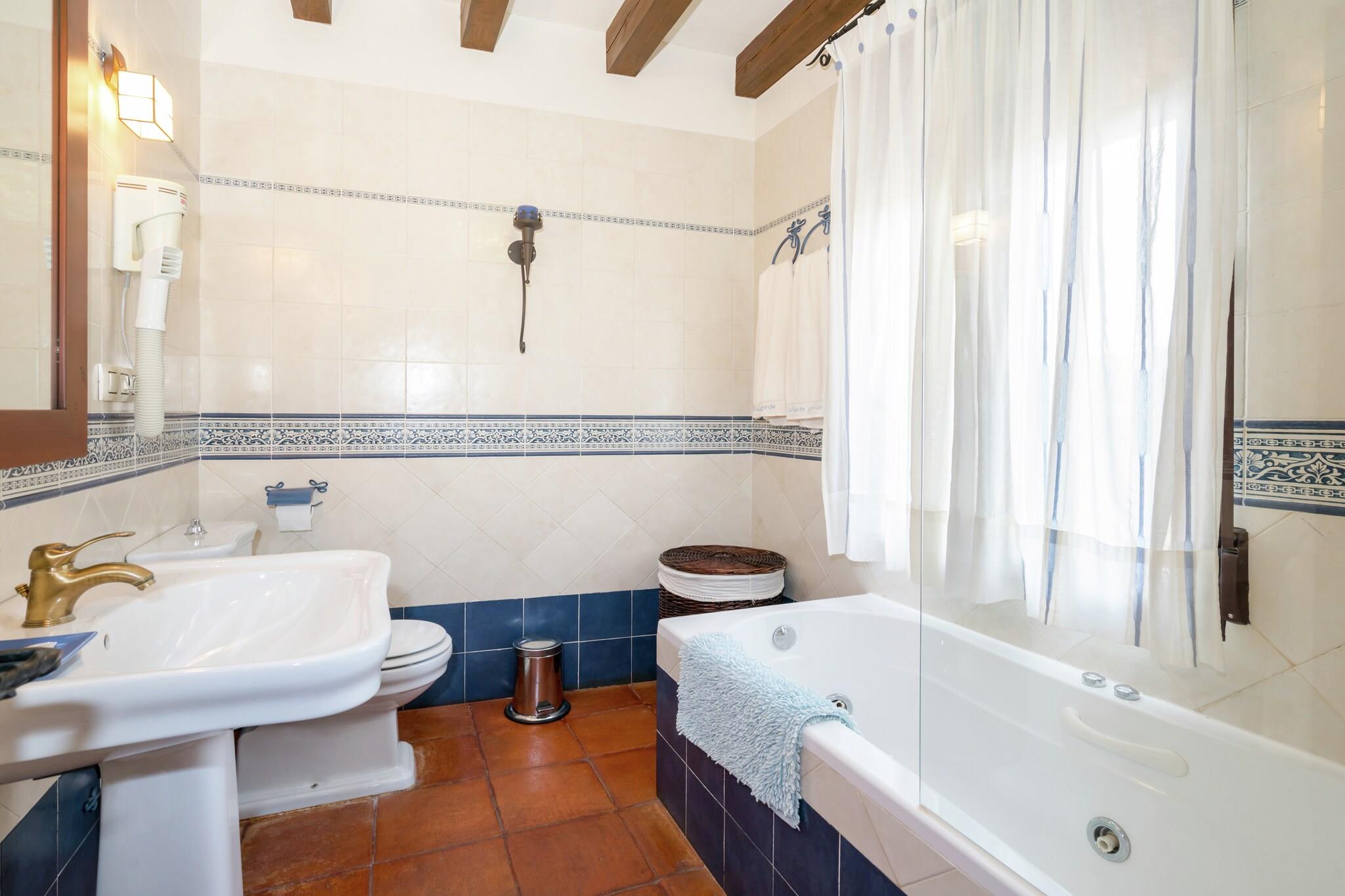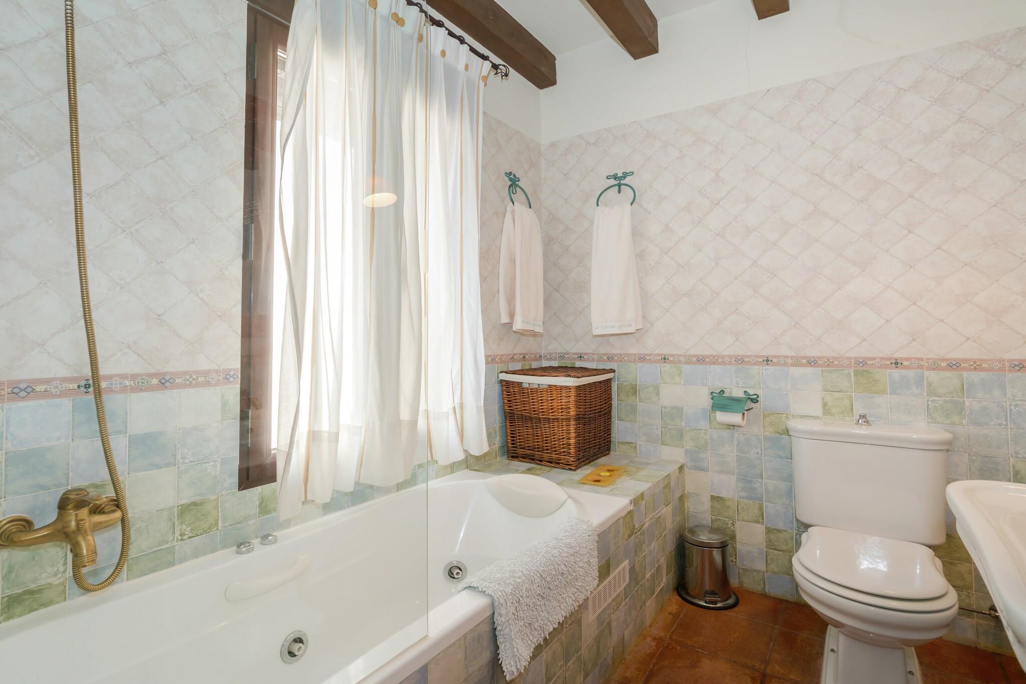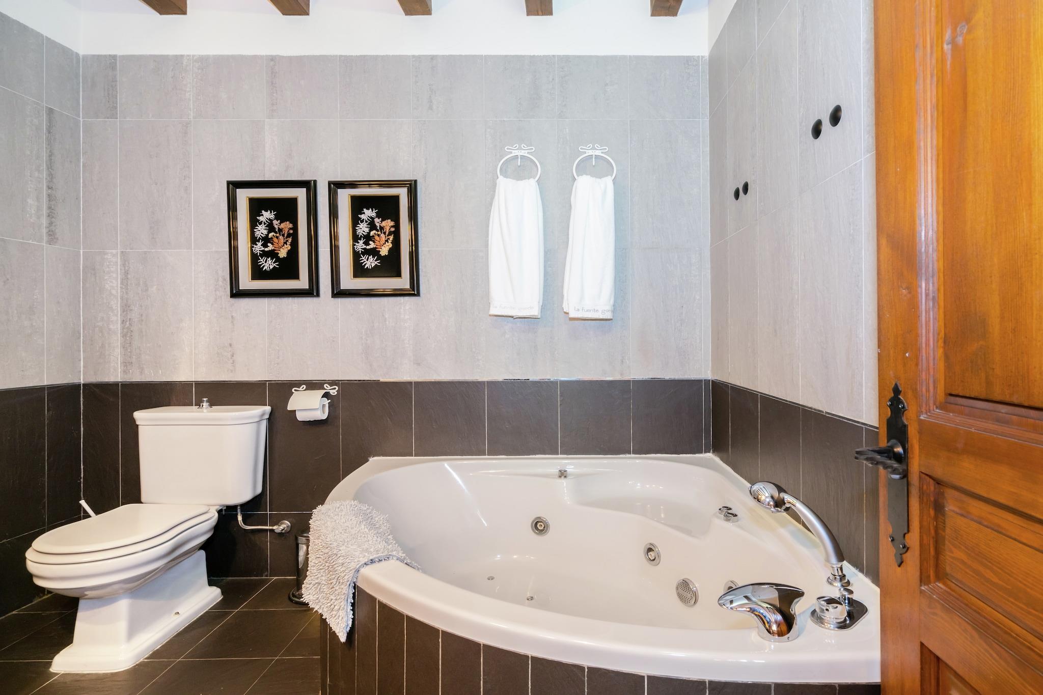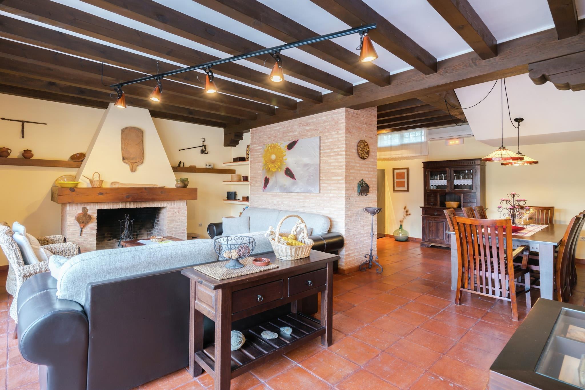 Dieses charmante Cottage in Navas de Estena im friedlichen Nationalpark Cabañeros bietet einen ruhigen Rückzugsort für Familien oder Gruppen und bietet bequem Platz für bis zu 8 Gäste. Das Haus verfügt über 4 gemütliche Schlafzimmer, ist kinderfreundlich und bietet modernen Komfort wie Heizung, Klimaanlage und ein Wohnzimmer mit Kamin. Gäste können sich am privaten Swimmingpool und Whirlpool entspannen oder auf der Terrasse grillen. Für Spiel und Spaß stehen ein Tischtennis- und ein Bouleplatz zur Verfügung. Naturliebhaber werden die atemberaubende Umgebung des Nationalparks Cabañeros lieben, der zahlreiche Möglichkeiten für Spaziergänge und Tierbeobachtungen bietet. Das Haus liegt nur 1 km von malerischen Waldwegen entfernt und die historischen Städte Toledo (75 km) und Madrid (150 km) sind leicht erreichbar. Toledo, ein UNESCO-Weltkulturerbe, ist für seine reiche Geschichte bekannt, während die lebendige Kultur Madrids nur eine kurze Autofahrt entfernt ist. Lokale Restaurants und Supermärkte sind zu Fuß erreichbar. Das Anwesen ist mit allen wichtigen Annehmlichkeiten ausgestattet, darunter eine voll ausgestattete Küche und kinderfreundliche Extras wie ein Kinderbett und ein Hochstuhl. Für Ihre Bequemlichkeit ist das Gesundheitszentrum nur 12 km entfernt und in jedem Zimmer gibt es Karten und Anleitungen für die Geräte des Hauses. Bitte beachten Sie, dass es im Umkreis von 25 Kilometern keinen Kartenleser oder Geldautomaten gibt. Bringen Sie daher unbedingt genügend Bargeld für Ihren Aufenthalt mit.