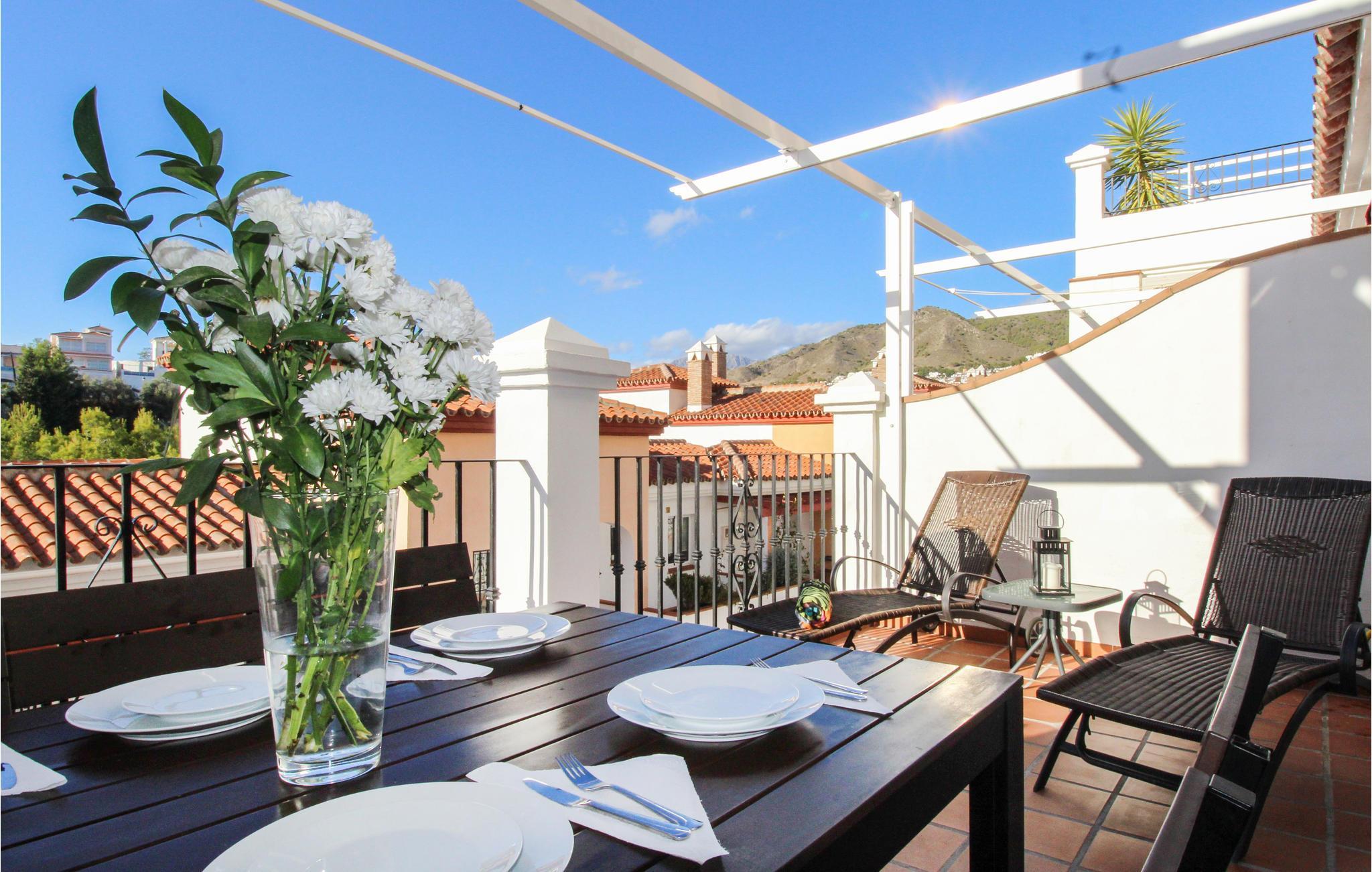 Schöne, helle und gemütliche Ferienwohnung, die sich in Nerja, Málaga, befindet. Sie bietet Platz für 6 Personen. Es gibt 3 Schlafzimmer und 1 Badezimmer. Die große Terrasse mit Tisch und Stühlen ist ideal, um angenehme Momente mit Familie und Freunden zu genießen. Von hier haben Sie Aussicht auf die Sierra Almijara.