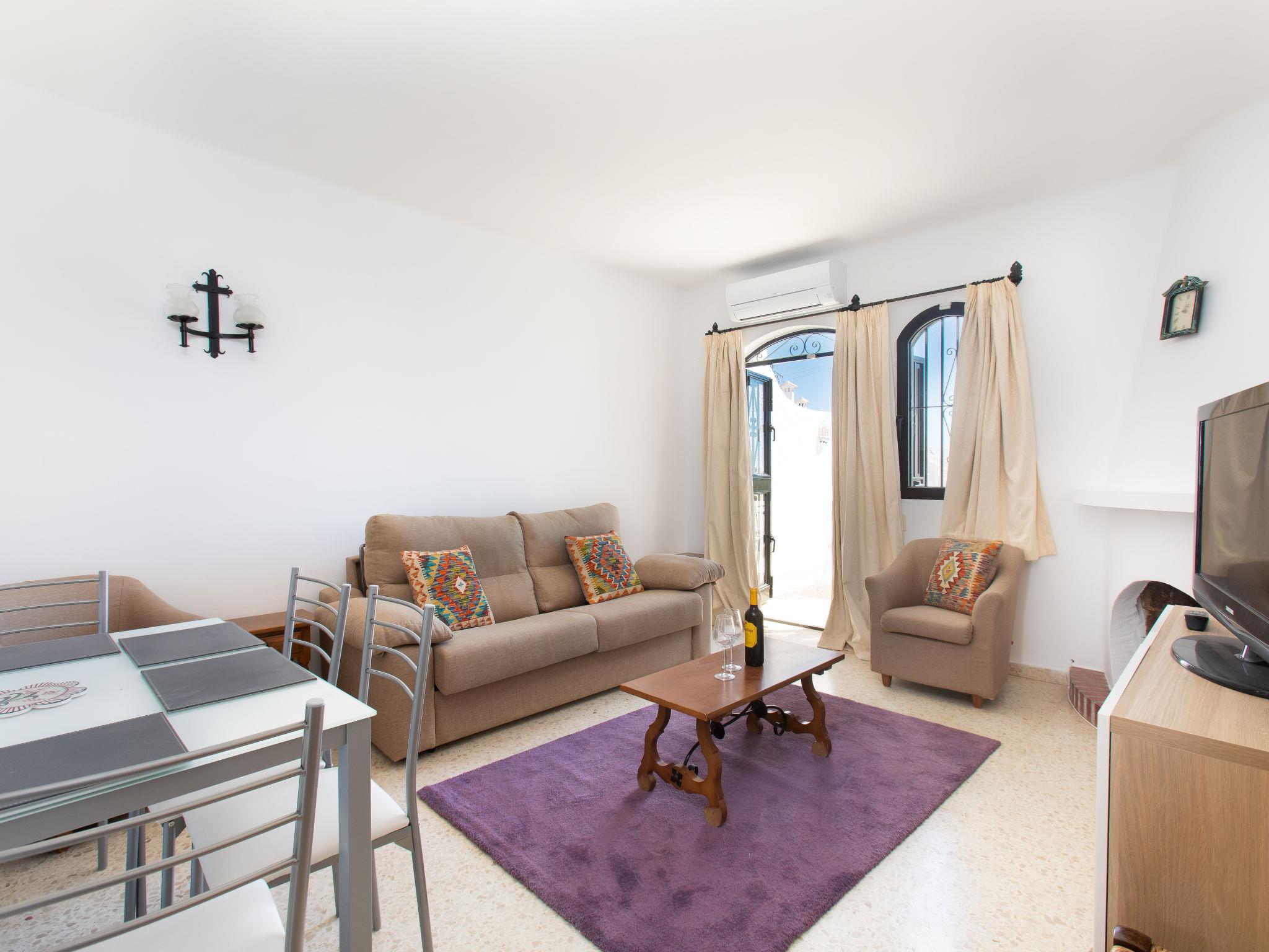 Capistrano Village 1 km von Nerja: Gemütliches, komfortables Appartementhaus "Descanso". Im Ort, 2 km vom Zentrum von Nerja, ruhige Lage, 500 m vom Waldrand, 1 km vom Meer, 1.3 km vom Strand, Richtung Süden. Zur Mitbenutzung: Garten mit Rasen, 2 Schwimmbäder (10 x 5 m, 50 m2, 100 - 175 cm tief, saisonale Verfügbarkeit: 31.Apr. - 31.Okt.). Dusche/WC im Poolbereich, Aussendusche. Zur Alleinbenutzung: Terrasse (20 m2), Gartenmöbel. Im Hause: Restaurant, Bar. Treppenweg (20 Stufen) bis zum Haus. Öffentliche Parkplätze auf der Strasse. Einkaufsgeschäft, Lebensmittelgeschäft 500 m, Supermarkt 300 m, Einkaufszentrum 18 km, Restaurant 150 m, Bar, Café 100 m, Biergarten 200 m, Bushaltestelle "Vía Romana" 100 m, Bahnstation "Malaga" 50 km, Fähre "Malaga" 50 km, Sandstrand 1.3 km. Sporthafen 14 km, Jacht-Hafen 14 km, Golfplatz (18 Loch) 20 km, Tennis, Sportzentrum 500 m. Nahe gelegene Sehenswürdigkeiten: Cuevas de nerja 5 km, Frigiliana, catalogado pueblo más bonito 7 km, Balcón de Europa, Nerja 2 km, Acua Tropic 20 km. Bekannte Skigebiete sind gut erreichbar: Sierra Nevada 100 km. Wandergebiete: El Acebuchal 7 km, Rio Seco 3 km. Bitte beachten: Ferienwohnung Ref. ES5405.18.1 befindet sich auf dem gleichen Grundstück.