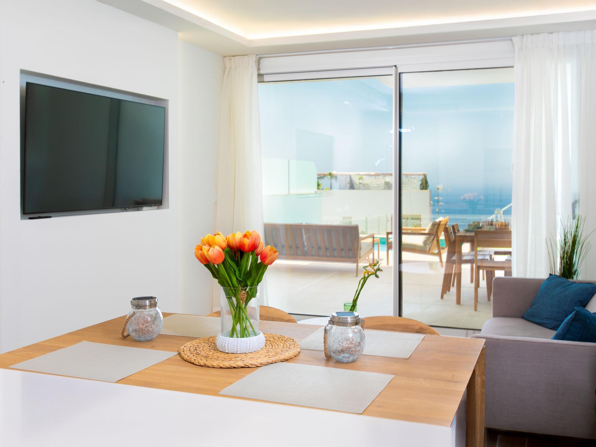 "D´Mediterranea Free Spa and Padle", 3-Zimmer-Wohnung 99 m2. Komfortabel und modern eingerichtet: Wohn-/Esszimmer mit Klimaanlage und Warmluftheizung. Ausgang zur Terrasse, zum Schwimmbad. 1 Zimmer mit 1 franz. Bett (180 cm, Länge 200 cm), Dusche/WC, Klimaanlage und Warmluftheizung. Ausgang zur Terrasse, zum Schwimmbad. 1 Zimmer mit 2 Betten (90 cm, Länge 200 cm), Klimaanlage und Warmluftheizung. Ausgang zur Terrasse. Offene Küche (Backofen, Geschirrspüler, 4 Glaskeramikplatten, Toaster, Wasserkocher, Mikrowelle, Tiefkühler). Dusche/WC. 2 grosse Terrassen 58 m2. Terrassenmöbel, Liegestühle. Panoramasicht auf das Meer. Zur Verfügung: Waschmaschine, Wäschetrockner, Safe, Bügeleisen, Haartrockner. Internet (WLAN, gratis). Bitte beachten: Rauchmelder, Feuerlöscher. VUT/MA/96969 // Reg. Nr.: ESFCTU000029013001120221000000000000000000VUT/MA/9696