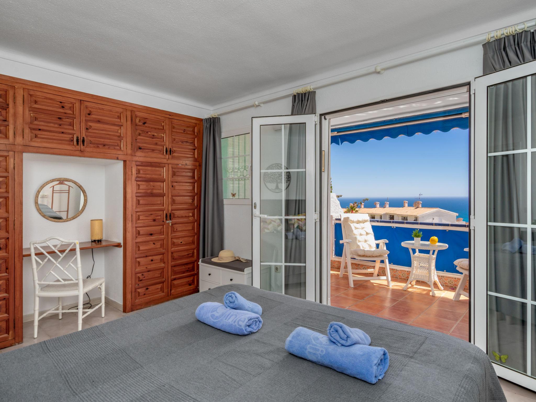 Nerja: Schönes, gemütliches, komfortables Reihenhaus "Lind", auf 2 Stockwerken, Baujahr 1985, renoviert im Jahre 2023. Am Ortsrand, ruhige, sonnige Lage in einem Wohnquartier, verkehrsberuhigte Zone, 2.3 km vom Meer, 2.3 km vom Strand, Richtung Süden. Zur Mitbenutzung: kleiner, schöner, gepflegter Garten, Schwimmbad (15 x 8 m, 100 - 175 cm tief, saisonale Verfügbarkeit: 01.Mai. - 30.Sep.). Dusche/WC im Poolbereich. Zur Alleinbenutzung: kleiner, schöner, gepflegter Garten, öffentliche Parkplätze auf der Strasse. Einkaufsgeschäft 200 m, Lebensmittelgeschäft, Supermarkt 80 m, Einkaufszentrum 23 km, Restaurant, Bar 50 m, Bäckerei 1 km, Café 80 m, Fußgängerzone 2 km, Fahrradverleih 2 km, Biergarten 200 m, Bushaltestelle "Nerja" 700 m, Sandstrand "Burriana" 2.4 km, Tauchzentrum 2.4 km, Freibad 500 m. Sporthafen 17 km, Jacht-Hafen 1.7 km, Golfplatz (18 Loch) 23 km, Surfschule 17 km, Segelschule 1.7 km, Tennis 1 km, Reitstall 2 km, Sportzentrum 1 km. Nahe gelegene Sehenswürdigkeiten: Frigiliana, La Herradura, Maro, Cómpeta, Málaga, Granada. Bekannte Skigebiete sind gut erreichbar: Sierra Nevada. Wandergebiete: Sierra Tejada, Sierra Almijara. Der Besitzer akzeptiert keine Jugendgruppen.
