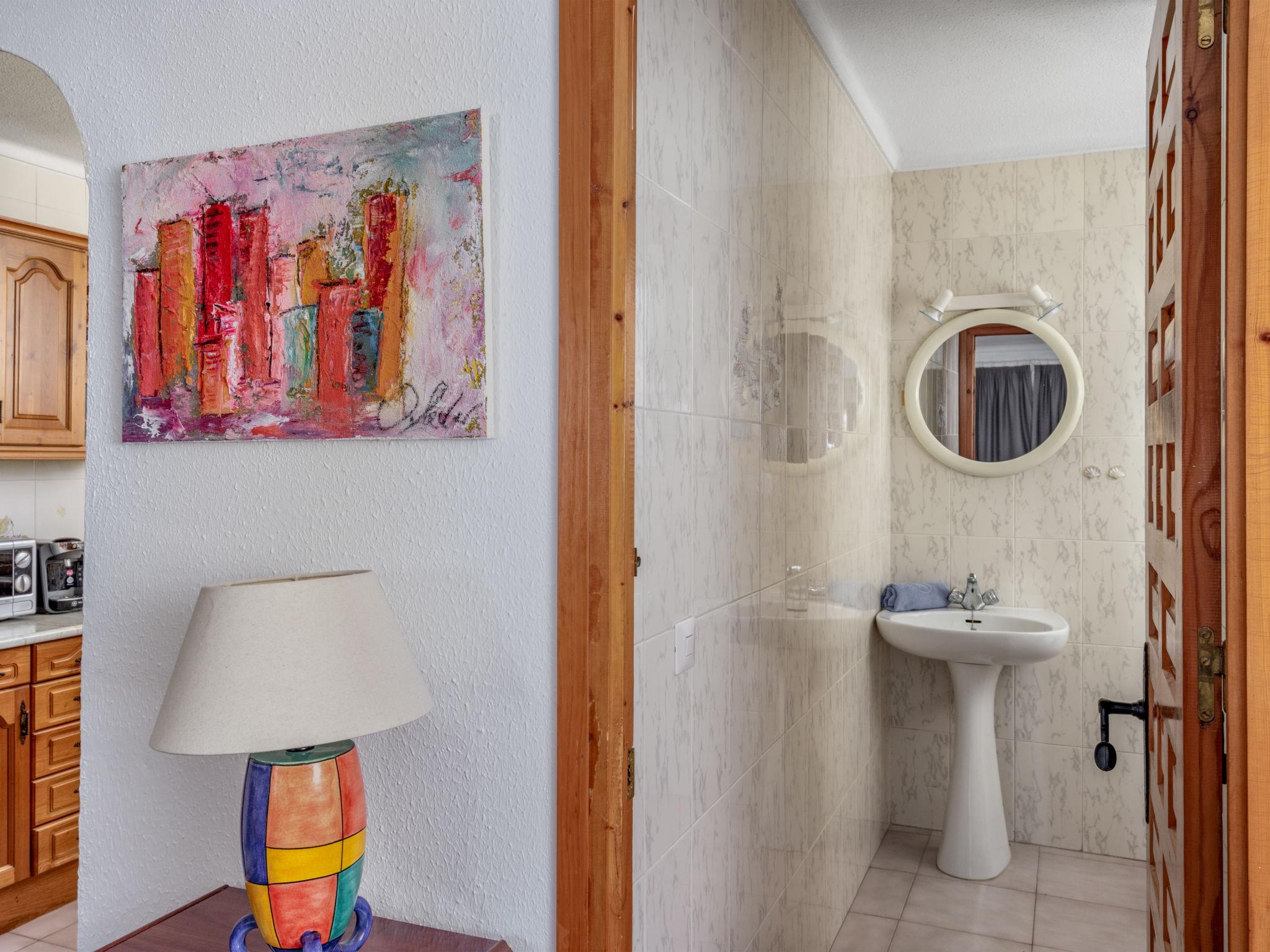 "Casa Lind", 3-Zimmer-Reihenhaus 80 m2 auf 2 Stockwerken. Geräumig und hell, teilweise renoviert im Jahre 2023, komfortabel und schön eingerichtet: Wohn-/Esszimmer mit Digital-TV, Klimaanlage und Warmluftheizung. Ausgang zur Terrasse, Richtung Süden. Offene Küche (Backofen, Geschirrspüler, 4 Glaskeramikplatten, Toaster, Wasserkocher, Mikrowelle, Tiefkühler, elektrische Kaffeemaschine). Sep. WC. Unteres Geschoss: 1 Zimmer mit 1 franz. Bett (160 cm, Länge 190 cm), Klimaanlage und Warmluftheizung. Ausgang zum Garten, zur Terrasse. 1 Zimmer mit 2 Betten (90 cm, Länge 190 cm), Klimaanlage und Warmluftheizung. Dusche/WC. Terrasse 15 m2, Garten 25 m2. Terrassenmöbel, Gartengrill. Sehr schöne Sicht auf das Meer. Zur Verfügung: Waschmaschine, Bügeleisen, Kinderhochstuhl, Babybett bis 2 Jahre, Haartrockner. Internet (WLAN, gratis). Bitte beachten: Rauchmelder, Feuerlöscher. VUT/MA/57199 // Reg. Nr.: ESFCTU0000290130001843470000000000000000VUT/MA/571992