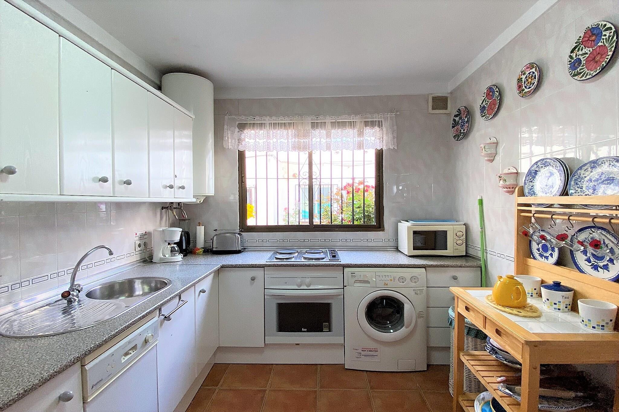 Parterre: (Wohnzimmer(TV, Esstisch, Sitzecke), offene Küche(Kochplatte(elektrisch), Wasserkocher, Toaster, Kaffeemaschine, Backofen, Mikrowelle, Kühl-/Gefrierkombination, ), Badezimmer(Dusche), Internet) In der 1. Etage: (Schlafzimmer(Doppelbett), Schlafzimmer(Einzelbett, Einzelbett), Badezimmer(Dusche, Föhn)) Waschmaschine, Balkon, Klimaanlage, Terrasse, Pool(Gemeinschaftliche Nutzung mit anderen Gästen), Bügeleisen