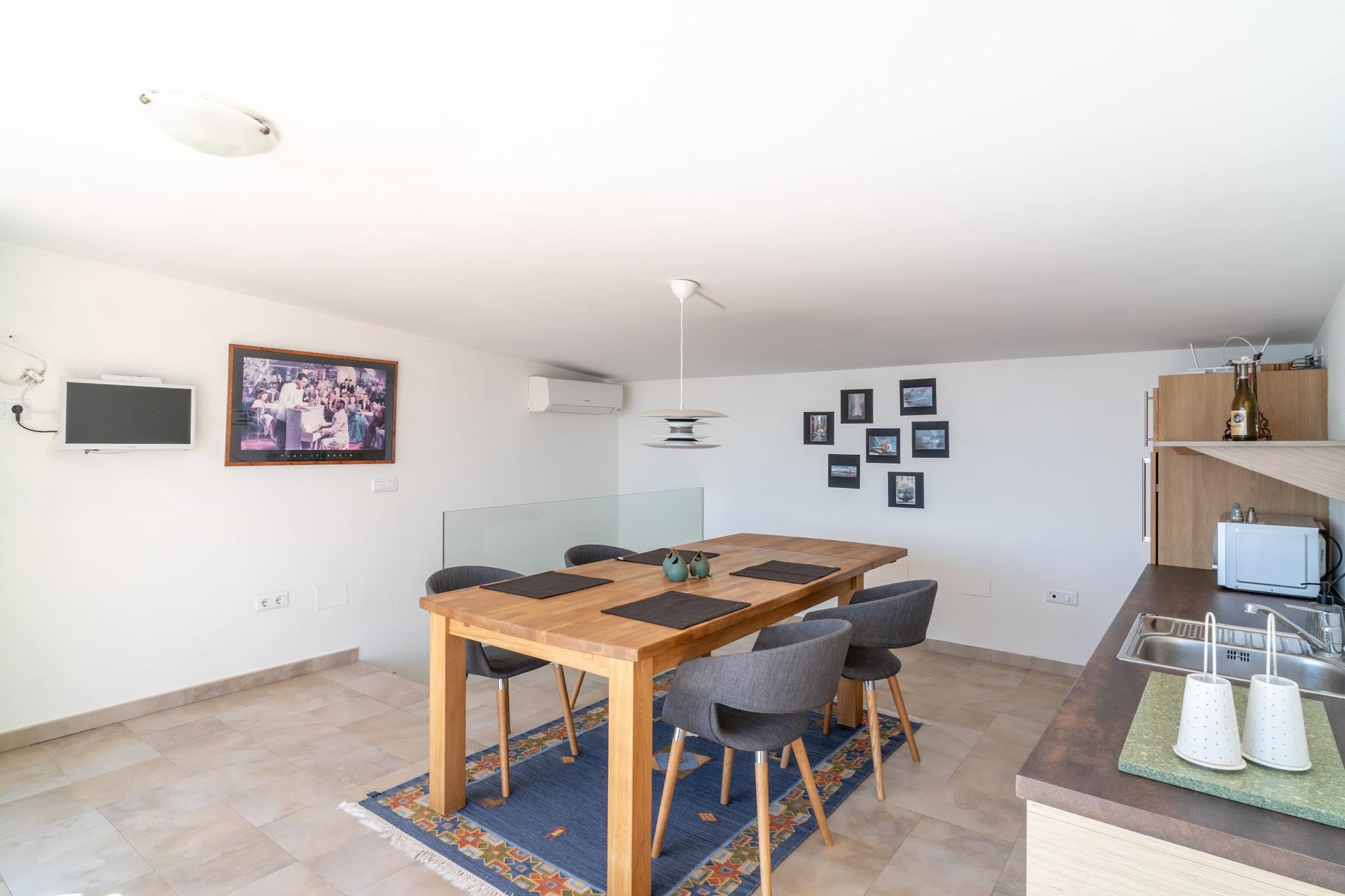 Dieses gemütliche Apartment mit 2 Schlafzimmern im Bahamas-Gebäude bietet bis zu vier Gästen einen komfortablen Aufenthalt. Die Terrasse bietet Blick auf den Gemeinschaftspool und die Grünfläche – ideal zum Entspannen und Genießen der Natur. Das Apartment ist mit modernen Annehmlichkeiten wie Klimaanlage, Highspeed-Internet, Bügeleisen und Haartrockner ausgestattet. Bettwäsche und Handtücher werden gestellt, um einen sorgenfreien Aufenthalt zu gewährleisten. Gemeinschaftsparkplätze sind zwar vorhanden, jedoch begrenzt, sodass ein Parkplatz nicht garantiert werden kann. Das Apartment befindet sich in idealer Lage, nur 600 Meter vom berühmten Strand Burriana entfernt, einem der beliebtesten Sandstrände Nerjas. Hier können Sie die mediterrane Sonne und die Wellen genießen. Für alle, die die Umgebung erkunden möchten, bietet die ruhige Lage des Anwesens Ruhe und Frieden, während lokale Sehenswürdigkeiten dennoch leicht zu erreichen sind. Der Gemeinschaftspool und die umliegenden Grünflächen laden zum Sonnenbaden oder für ein erfrischendes Bad ein. Die voll ausgestattete Küche erfüllt Ihre Bedürfnisse und verfügt über alle wichtigen Geräte, darunter Kühlschrank, Mikrowelle, Backofen und Geschirrspüler. Egal, ob Sie einen schnellen Snack oder eine komplette Mahlzeit zubereiten, Sie haben alles, was Sie für einen komfortablen und angenehmen Aufenthalt benötigen.