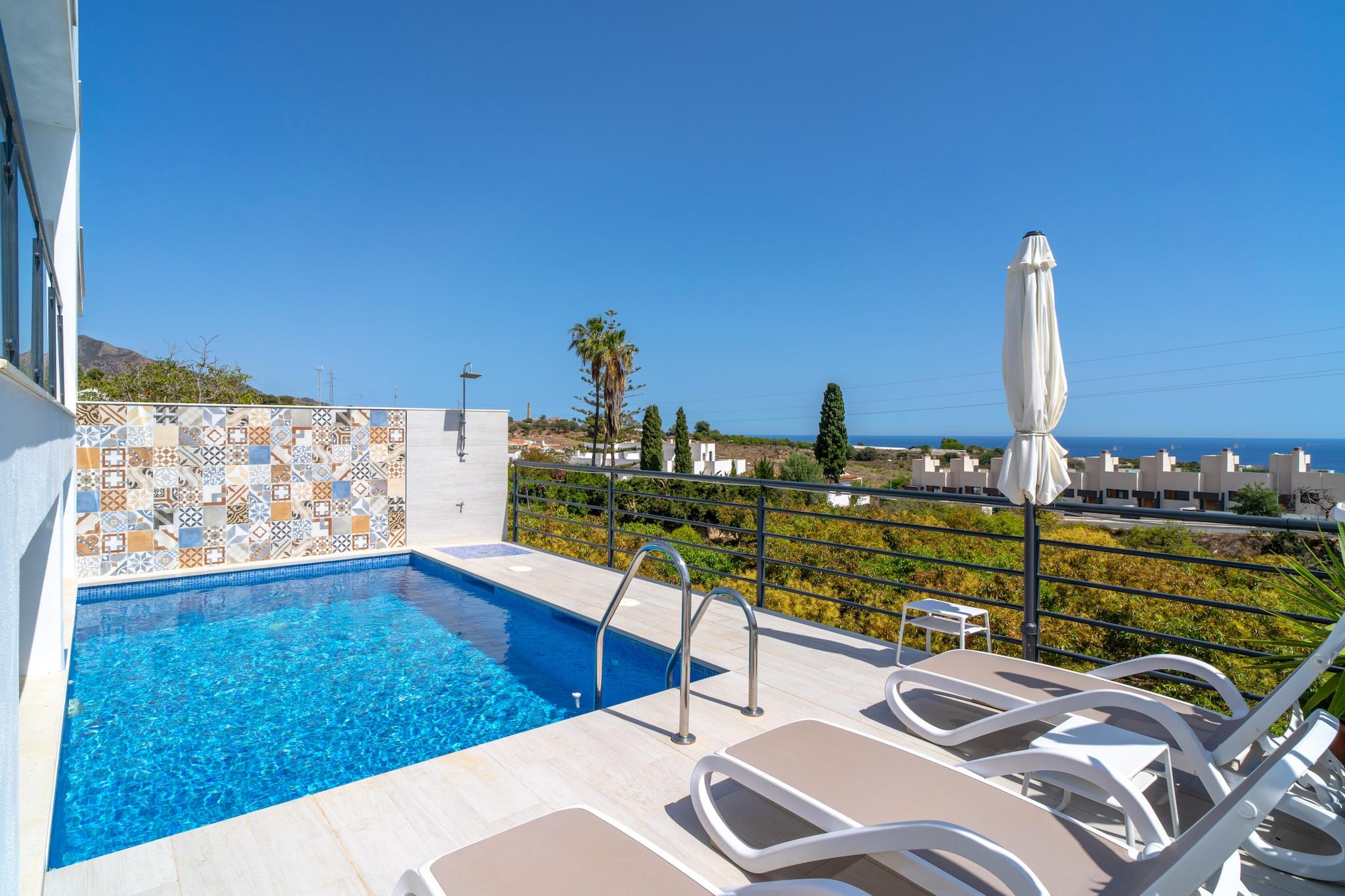 Dieses wunderschön gestaltete Haus mit 4 Schlafzimmern bietet die perfekte Mischung aus modernem Komfort und traditionellem andalusischem Charme. Das geräumige Anwesen bietet Platz für bis zu 8 Gäste und ist somit ideal für große Familien oder Gruppen. Es verfügt über ein Kingsize-Bett, ein Doppelbett und zwei Schlafzimmer mit Einzelbetten, die zu Doppelbetten zusammengestellt werden können. Klimaanlage, Highspeed-Internet und ein großer Fernseher sorgen für Komfort während Ihres gesamten Aufenthalts. Zu den wichtigsten Annehmlichkeiten gehören ein privater Pool, eine private Garage und eine Dachterrasse mit Panoramablick auf Meer und Berge. Im Herzen von Nerja gelegen, bietet das Anwesen eine gute Anbindung an das Stadtzentrum, die Strände, Geschäfte, Restaurants und Supermärkte. Der Sandstrand ist nur 450 Meter zu Fuß entfernt, und das geschäftige Zentrum bietet eine Vielzahl von Restaurants und Einkaufsmöglichkeiten. Gäste können auch die berühmten Sehenswürdigkeiten der Stadt erkunden, wie zum Beispiel den Balcón de Europa. Öffentliche Verkehrsmittel sind gut erreichbar, sodass Sie die Umgebung bequem erkunden können. Für Gäste, die mit dem Auto anreisen, steht eine Garage für ein Fahrzeug zur Verfügung. Weitere Parkplätze finden Sie in der Nähe. Das Haus bietet zahlreiche hochwertige Annehmlichkeiten für einen angenehmen Aufenthalt. Im Erdgeschoss befindet sich ein offener Wohnbereich mit einer voll ausgestatteten Küche und modernen Geräten, darunter eine Mikrowelle mit Heißluftofen. Das Anwesen bietet außerdem eine Waschküche, eine gemütliche Terrasse mit privatem Pool und einen Grillplatz.