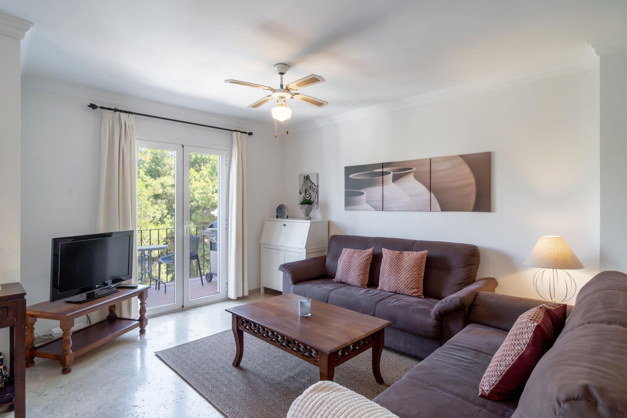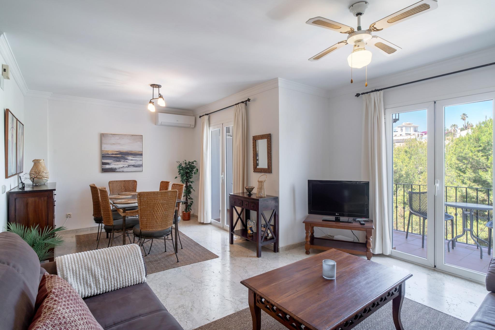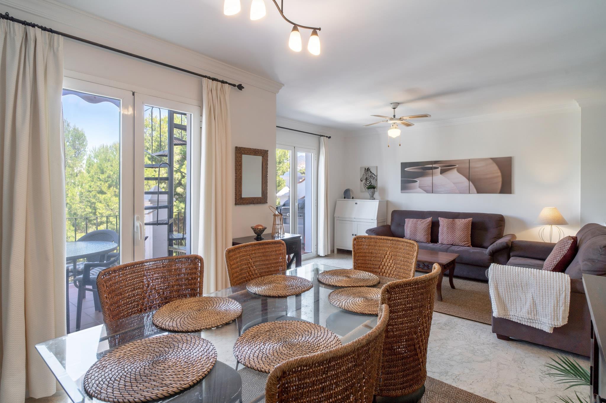 Los Aguacates Bellavista ist ein charmantes Ferienhaus mit atemberaubendem Blick auf das Mittelmeer im ruhigen Stadtteil Capistrano von Nerja. Dieses Anwesen mit zwei Schlafzimmern bietet einen ruhigen Rückzugsort, nur 2 Kilometer vom Strand entfernt. Genießen Sie den Meerblick vom Hauptschlafzimmer und Wohnzimmer und wachen Sie jeden Tag mit einem malerischen Start in den Tag auf. Das Haus verfügt über zwei Terrassen, von denen eine vom Wohnzimmer aus zugänglich ist und zum Gemeinschaftspool führt – ideal zum Entspannen und Genießen des mediterranen Klimas. Das geräumige Hauptschlafzimmer bietet ein hochwertiges Doppelbett mit Meerblick und einer privaten Terrasse, die zum Sonnenbaden einlädt. Das zweite Schlafzimmer ist mit zwei bequemen Einzelbetten ausgestattet. Das Anwesen verfügt außerdem über eine voll ausgestattete Küche, Klimaanlage, Highspeed-Internet und internationale TV-Kanäle. Ein modernes Badezimmer mit Dusche und ein zusätzliches WC im Wohnzimmergeschoss sorgen für zusätzlichen Komfort. Die wunderschön angelegte Urbanisation Aguacates Bellavista bietet botanische Gärten, Avocadobäume und einen gepflegten Poolbereich. Parkplätze sind auch in der Hochsaison leicht zu finden. Für zusätzliche Für Ihren Komfort können Sie einen Flughafentransfer buchen und ein Willkommenspaket mit kalten Getränken und Snacks anfordern. Der persönliche Check-in ist ab 16:00 Uhr möglich. Ein Host-Manager begrüßt Sie und sorgt für eine reibungslose Ankunft.