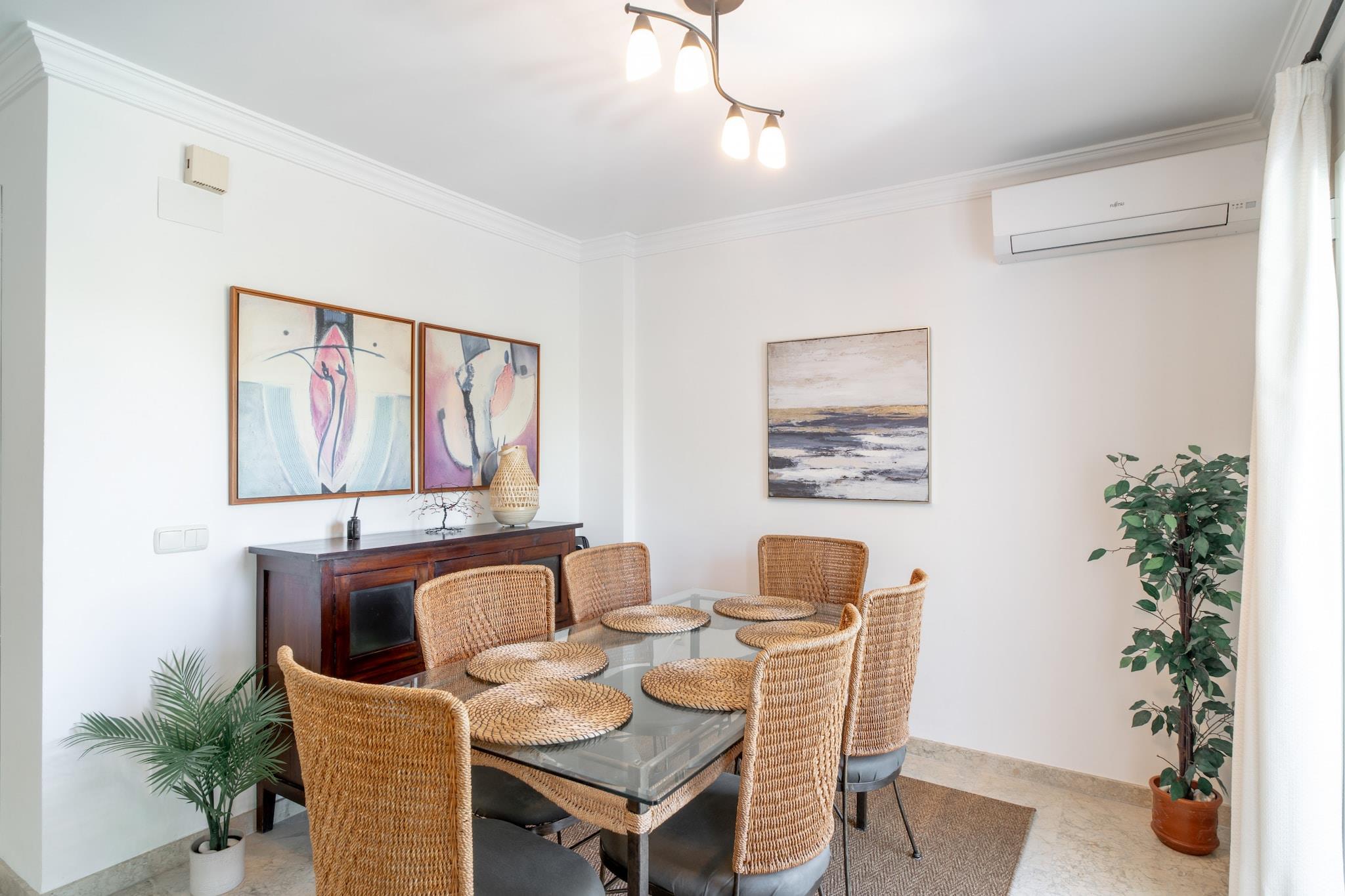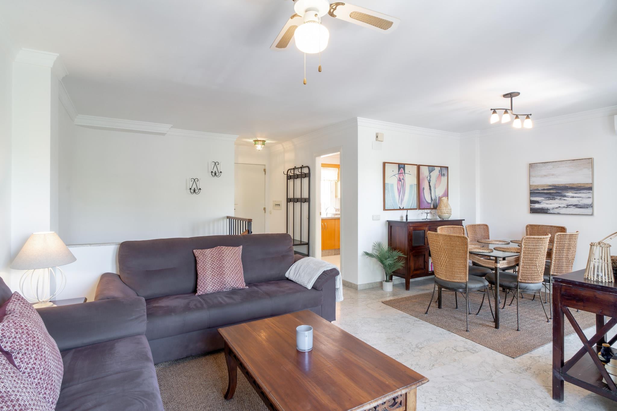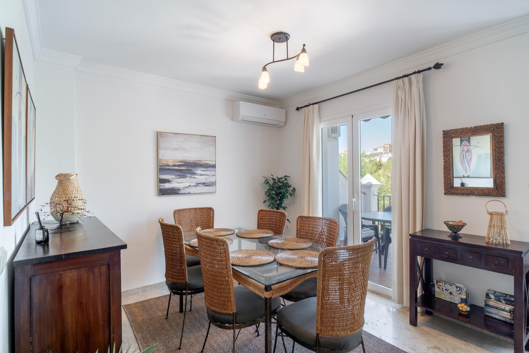 Los Aguacates Bellavista ist ein charmantes Ferienhaus mit atemberaubendem Blick auf das Mittelmeer im ruhigen Stadtteil Capistrano von Nerja. Dieses Anwesen mit zwei Schlafzimmern bietet einen ruhigen Rückzugsort, nur 2 Kilometer vom Strand entfernt. Genießen Sie den Meerblick vom Hauptschlafzimmer und Wohnzimmer und wachen Sie jeden Tag mit einem malerischen Start in den Tag auf. Das Haus verfügt über zwei Terrassen, von denen eine vom Wohnzimmer aus zugänglich ist und zum Gemeinschaftspool führt – ideal zum Entspannen und Genießen des mediterranen Klimas. Das geräumige Hauptschlafzimmer bietet ein hochwertiges Doppelbett mit Meerblick und einer privaten Terrasse, die zum Sonnenbaden einlädt. Das zweite Schlafzimmer ist mit zwei bequemen Einzelbetten ausgestattet. Das Anwesen verfügt außerdem über eine voll ausgestattete Küche, Klimaanlage, Highspeed-Internet und internationale TV-Kanäle. Ein modernes Badezimmer mit Dusche und ein zusätzliches WC im Wohnzimmergeschoss sorgen für zusätzlichen Komfort. Die wunderschön angelegte Urbanisation Aguacates Bellavista bietet botanische Gärten, Avocadobäume und einen gepflegten Poolbereich. Parkplätze sind auch in der Hochsaison leicht zu finden. Für zusätzliche Für Ihren Komfort können Sie einen Flughafentransfer buchen und ein Willkommenspaket mit kalten Getränken und Snacks anfordern. Der persönliche Check-in ist ab 16:00 Uhr möglich. Ein Host-Manager begrüßt Sie und sorgt für eine reibungslose Ankunft.