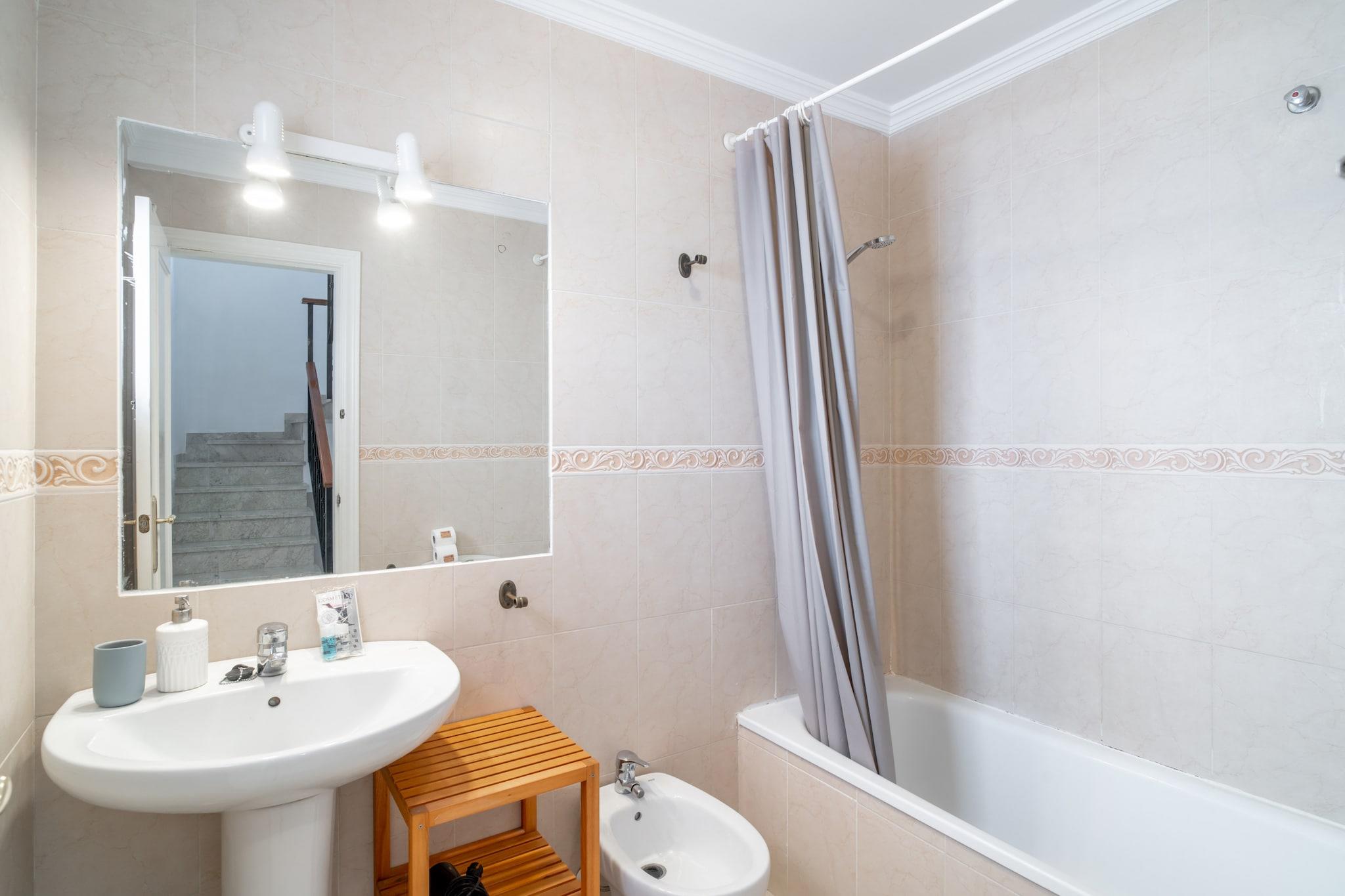 Küche(Wasserkocher, Toaster, Kaffeemaschine, Backofen, Mikrowelle, Spülmaschine, Kühlschrank, Tiefkühlschrank, ), Wohn/Esszimmer(TV(smart TV), Esstisch, Sitzecke), Schlafzimmer(Einzelbett, Einzelbett), Schlafzimmer(Doppelbett), Schlafzimmer(Doppelbett), Badezimmer(Badewanne), Badezimmer(Badewanne), Badezimmer(Toilette), Internet, Waschmaschine, Klimaanlage, Terrasse(30 m2), Liegen, Grill, Parkplatz, Pool(alleinige Nutzung), Bügeleisen, Föhn