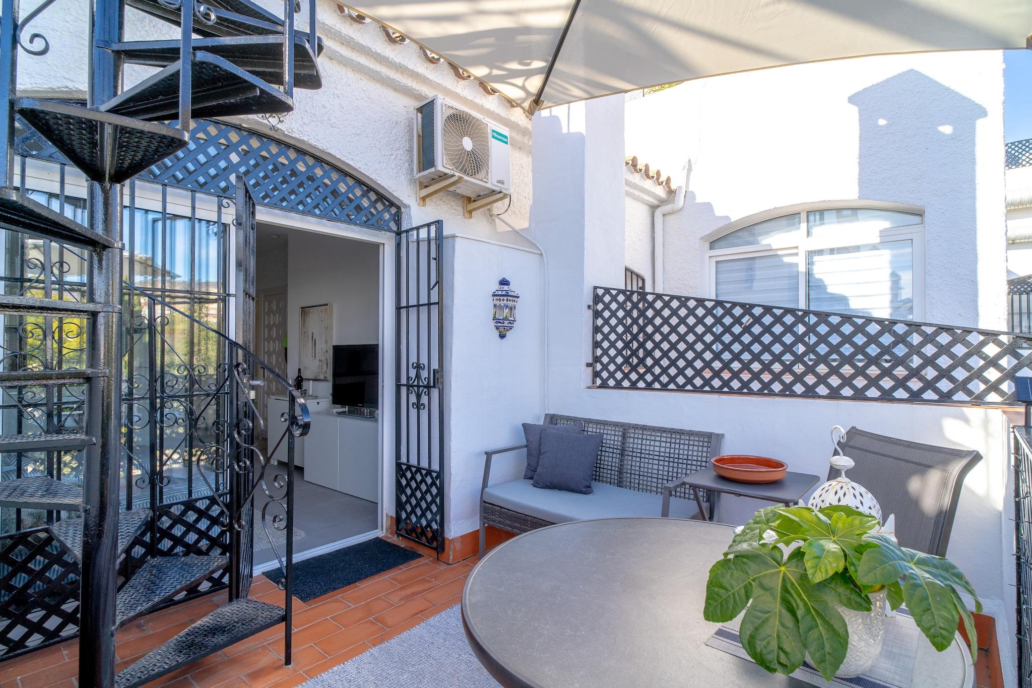 Los Aguacates Bellavista ist ein charmantes Ferienhaus mit atemberaubendem Blick auf das Mittelmeer im ruhigen Stadtteil Capistrano von Nerja. Dieses Anwesen mit zwei Schlafzimmern bietet einen ruhigen Rückzugsort, nur 2 Kilometer vom Strand entfernt. Genießen Sie den Meerblick vom Hauptschlafzimmer und Wohnzimmer und wachen Sie jeden Tag mit einem malerischen Start in den Tag auf. Das Haus verfügt über zwei Terrassen, von denen eine vom Wohnzimmer aus zugänglich ist und zum Gemeinschaftspool führt – ideal zum Entspannen und Genießen des mediterranen Klimas. Das geräumige Hauptschlafzimmer bietet ein hochwertiges Doppelbett mit Meerblick und einer privaten Terrasse, die zum Sonnenbaden einlädt. Das zweite Schlafzimmer ist mit zwei bequemen Einzelbetten ausgestattet. Das Anwesen verfügt außerdem über eine voll ausgestattete Küche, Klimaanlage, Highspeed-Internet und internationale TV-Kanäle. Ein modernes Badezimmer mit Dusche und ein zusätzliches WC im Wohnzimmergeschoss sorgen für zusätzlichen Komfort. Die wunderschön angelegte Urbanisation Aguacates Bellavista bietet botanische Gärten, Avocadobäume und einen gepflegten Poolbereich. Parkplätze sind auch in der Hochsaison leicht zu finden. Für zusätzliche Für Ihren Komfort können Sie einen Flughafentransfer buchen und ein Willkommenspaket mit kalten Getränken und Snacks anfordern. Der persönliche Check-in ist ab 16:00 Uhr möglich. Ein Host-Manager begrüßt Sie und sorgt für eine reibungslose Ankunft.