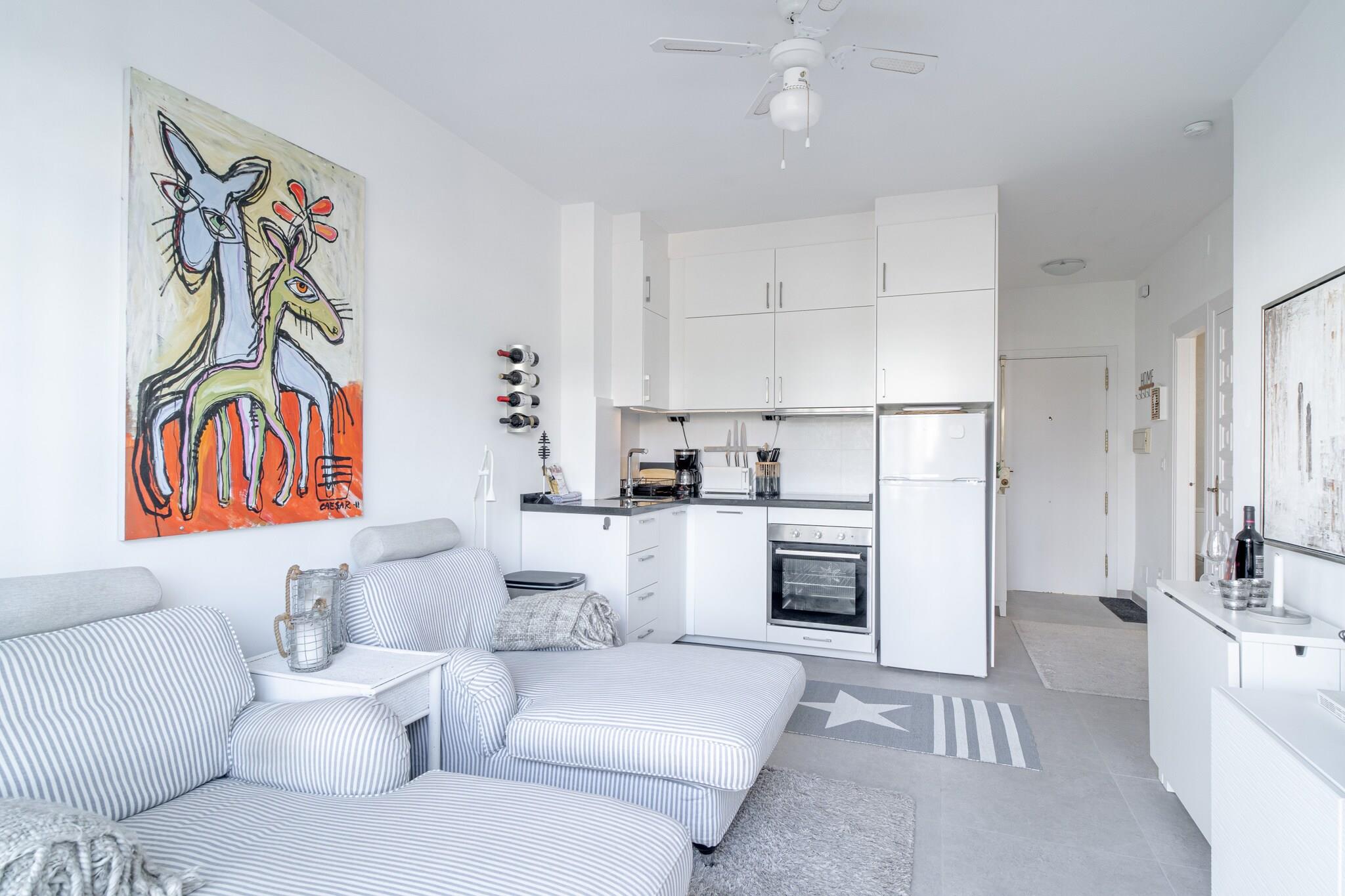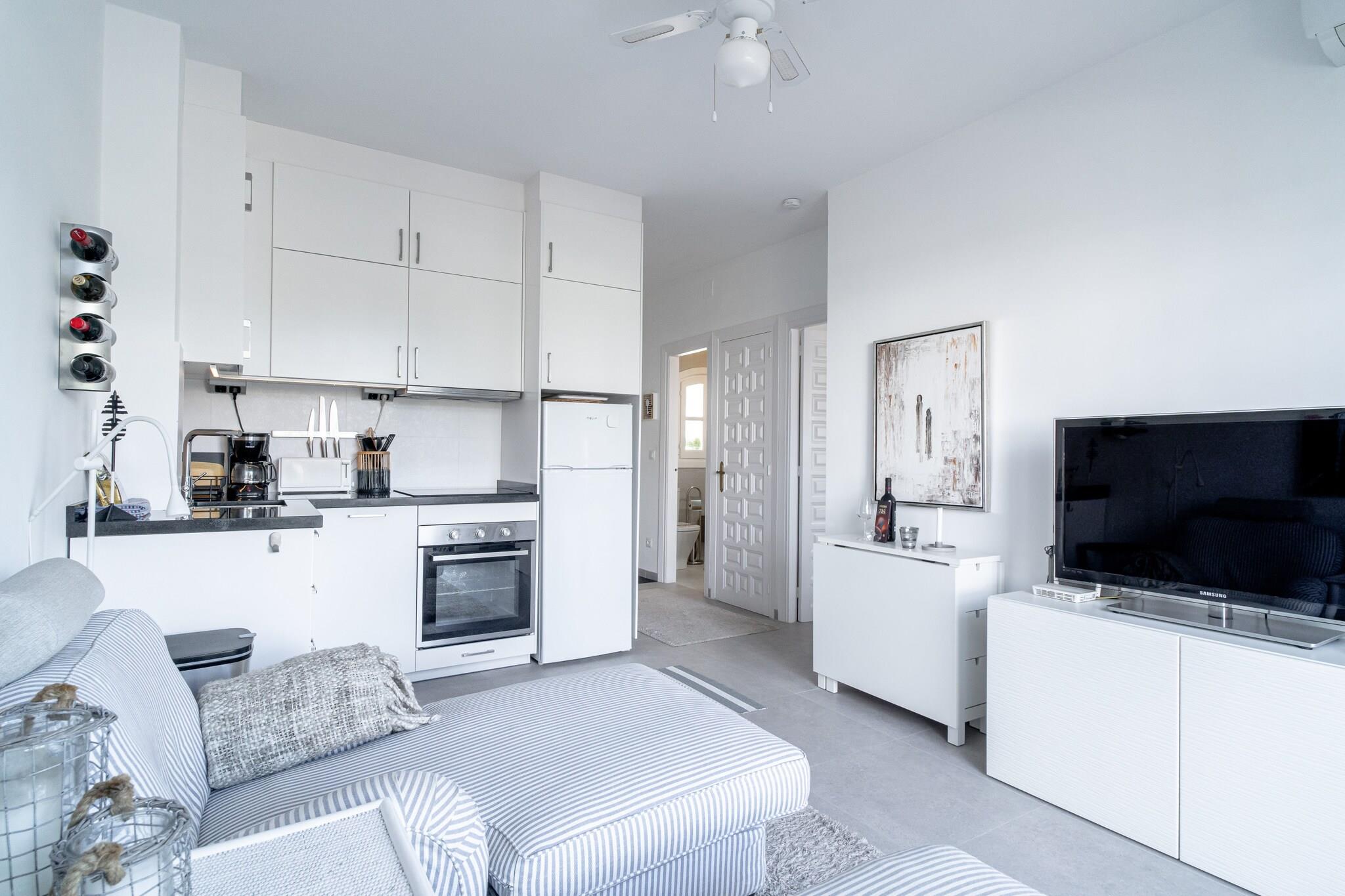 Offene Küche(Wasserkocher, Toaster, Kaffeemaschine, Backofen, Mikrowelle, Spülmaschine, Kühlschrank, Tiefkühlschrank, ), Wohn/Esszimmer(TV, Esstisch, Sitzecke), Schlafzimmer(Doppelbett), Badezimmer(Dusche), Internet, Waschmaschine, Balkon, Klimaanlage, Terrasse, Pool(Gemeinschaftliche Nutzung mit anderen Gästen), Bügeleisen, Föhn, Mountain view, Wine glasses