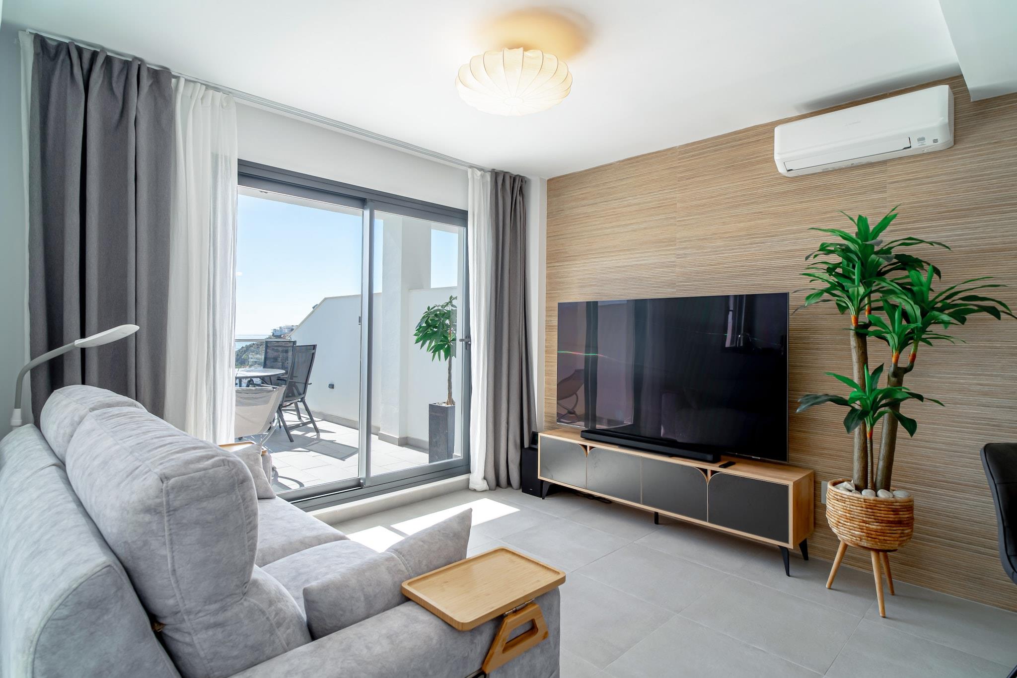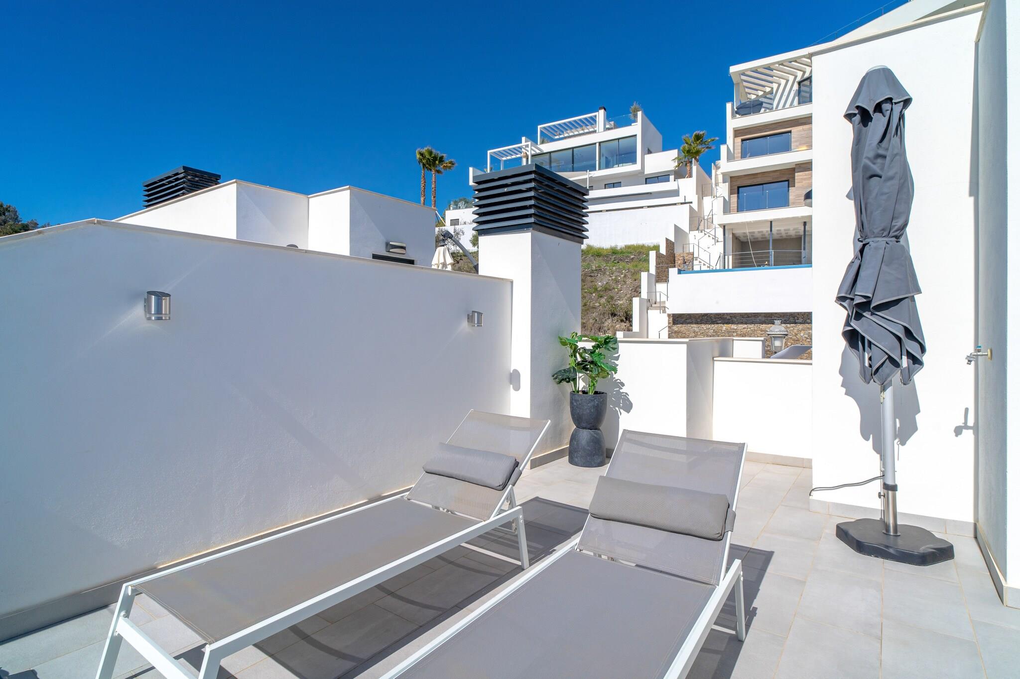 Los Aguacates Bellavista ist ein charmantes Ferienhaus mit atemberaubendem Blick auf das Mittelmeer im ruhigen Stadtteil Capistrano von Nerja. Dieses Anwesen mit zwei Schlafzimmern bietet einen ruhigen Rückzugsort, nur 2 Kilometer vom Strand entfernt. Genießen Sie den Meerblick vom Hauptschlafzimmer und Wohnzimmer und wachen Sie jeden Tag mit einem malerischen Start in den Tag auf. Das Haus verfügt über zwei Terrassen, von denen eine vom Wohnzimmer aus zugänglich ist und zum Gemeinschaftspool führt – ideal zum Entspannen und Genießen des mediterranen Klimas. Das geräumige Hauptschlafzimmer bietet ein hochwertiges Doppelbett mit Meerblick und einer privaten Terrasse, die zum Sonnenbaden einlädt. Das zweite Schlafzimmer ist mit zwei bequemen Einzelbetten ausgestattet. Das Anwesen verfügt außerdem über eine voll ausgestattete Küche, Klimaanlage, Highspeed-Internet und internationale TV-Kanäle. Ein modernes Badezimmer mit Dusche und ein zusätzliches WC im Wohnzimmergeschoss sorgen für zusätzlichen Komfort. Die wunderschön angelegte Urbanisation Aguacates Bellavista bietet botanische Gärten, Avocadobäume und einen gepflegten Poolbereich. Parkplätze sind auch in der Hochsaison leicht zu finden. Für zusätzliche Für Ihren Komfort können Sie einen Flughafentransfer buchen und ein Willkommenspaket mit kalten Getränken und Snacks anfordern. Der persönliche Check-in ist ab 16:00 Uhr möglich. Ein Host-Manager begrüßt Sie und sorgt für eine reibungslose Ankunft.