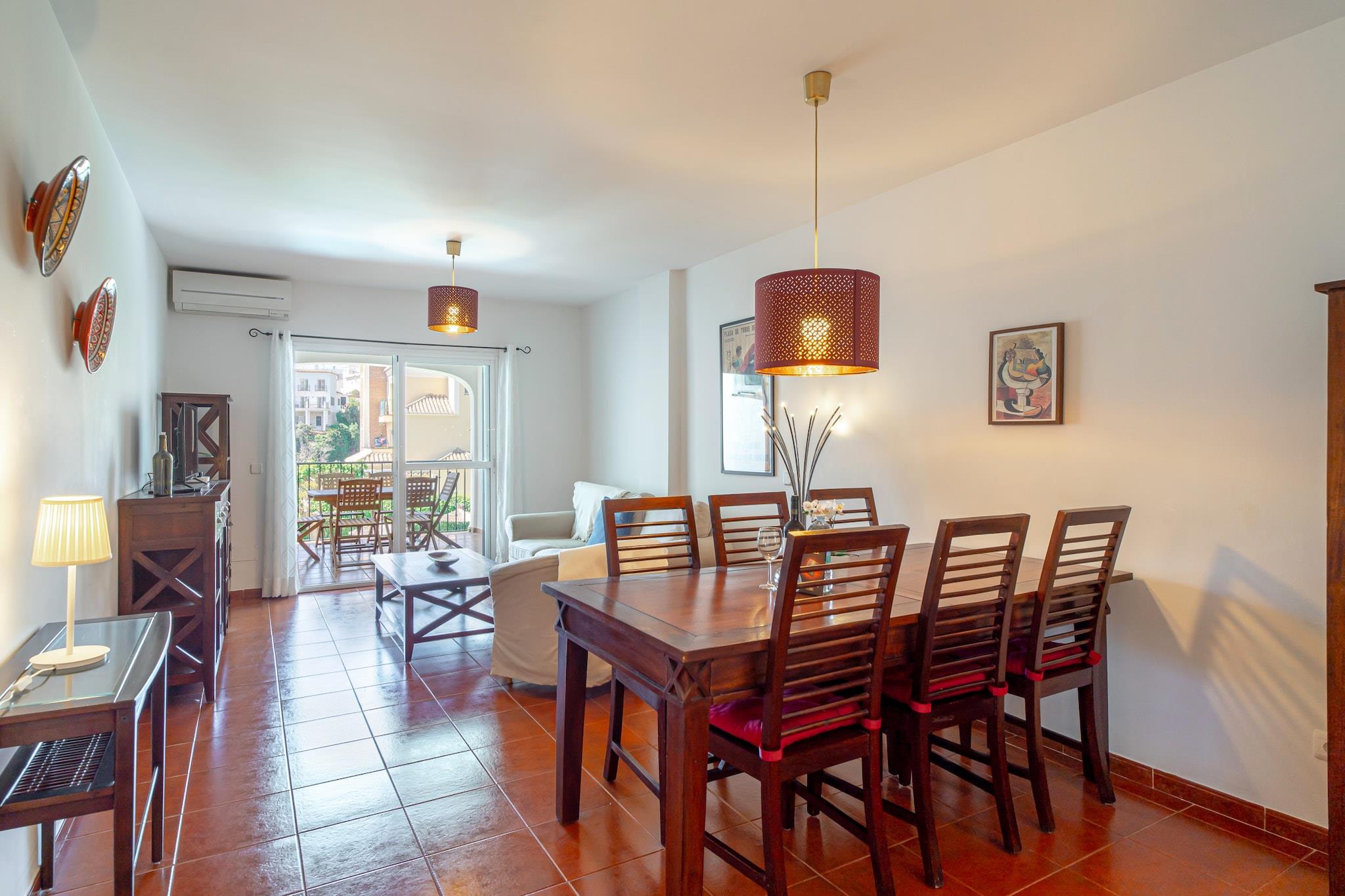 Los Aguacates Bellavista ist ein charmantes Ferienhaus mit atemberaubendem Blick auf das Mittelmeer im ruhigen Stadtteil Capistrano von Nerja. Dieses Anwesen mit zwei Schlafzimmern bietet einen ruhigen Rückzugsort, nur 2 Kilometer vom Strand entfernt. Genießen Sie den Meerblick vom Hauptschlafzimmer und Wohnzimmer und wachen Sie jeden Tag mit einem malerischen Start in den Tag auf. Das Haus verfügt über zwei Terrassen, von denen eine vom Wohnzimmer aus zugänglich ist und zum Gemeinschaftspool führt – ideal zum Entspannen und Genießen des mediterranen Klimas. Das geräumige Hauptschlafzimmer bietet ein hochwertiges Doppelbett mit Meerblick und einer privaten Terrasse, die zum Sonnenbaden einlädt. Das zweite Schlafzimmer ist mit zwei bequemen Einzelbetten ausgestattet. Das Anwesen verfügt außerdem über eine voll ausgestattete Küche, Klimaanlage, Highspeed-Internet und internationale TV-Kanäle. Ein modernes Badezimmer mit Dusche und ein zusätzliches WC im Wohnzimmergeschoss sorgen für zusätzlichen Komfort. Die wunderschön angelegte Urbanisation Aguacates Bellavista bietet botanische Gärten, Avocadobäume und einen gepflegten Poolbereich. Parkplätze sind auch in der Hochsaison leicht zu finden. Für zusätzliche Für Ihren Komfort können Sie einen Flughafentransfer buchen und ein Willkommenspaket mit kalten Getränken und Snacks anfordern. Der persönliche Check-in ist ab 16:00 Uhr möglich. Ein Host-Manager begrüßt Sie und sorgt für eine reibungslose Ankunft.