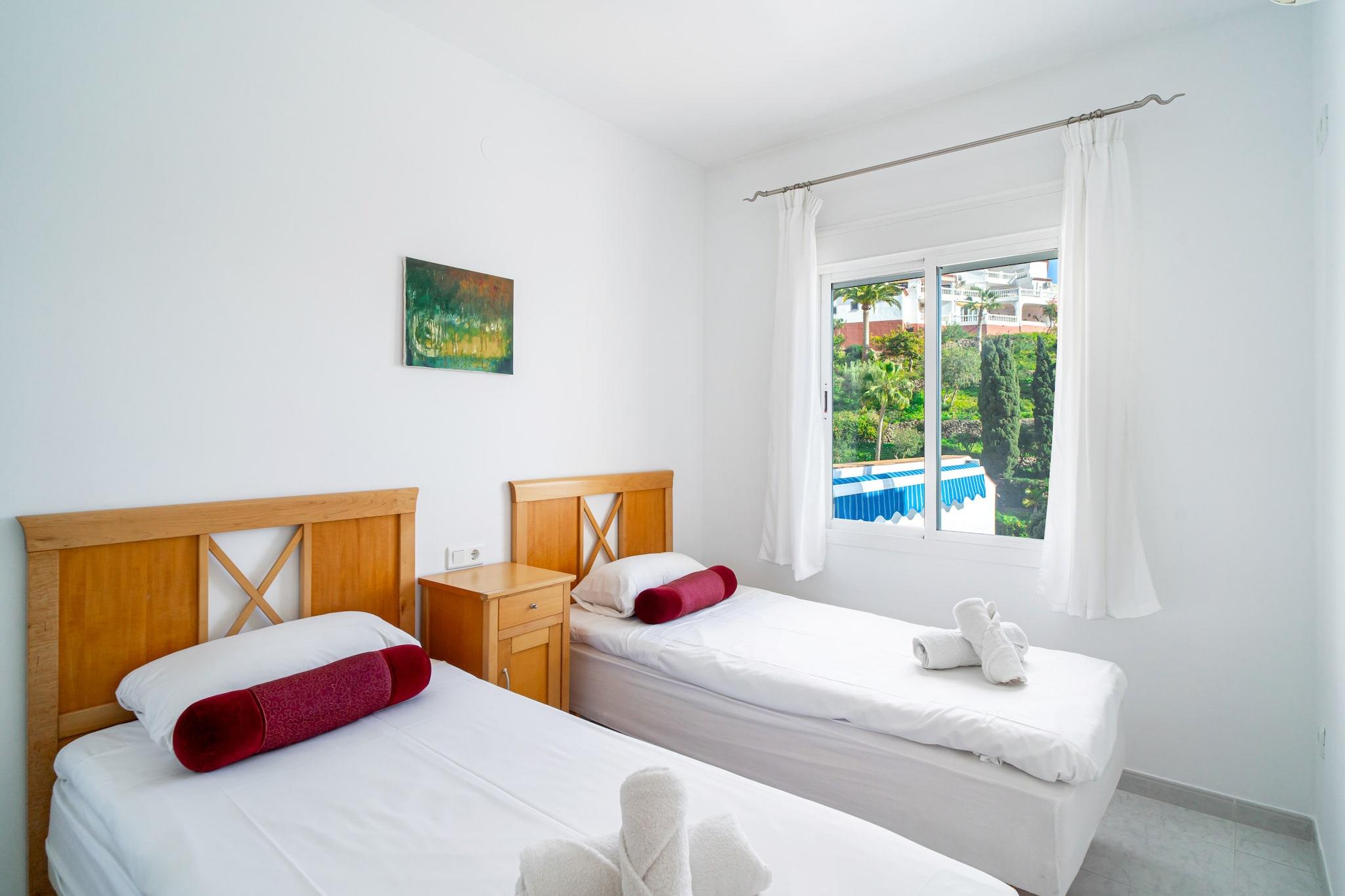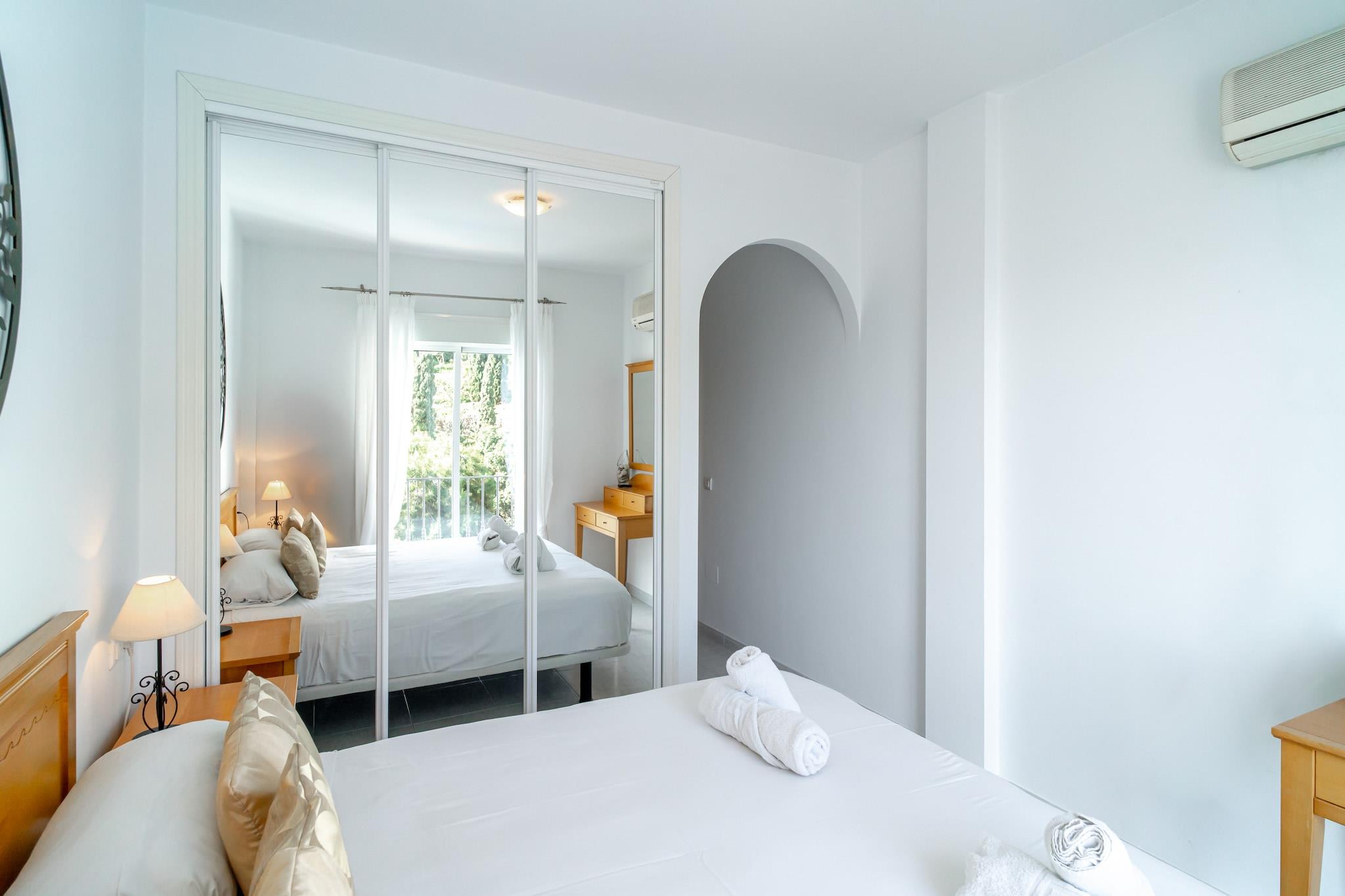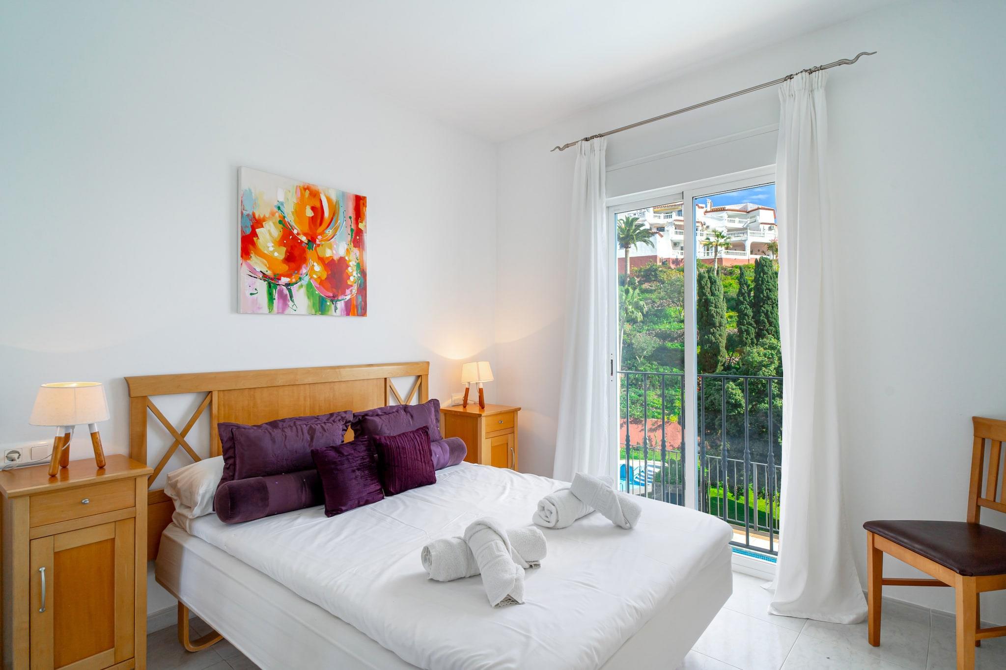 Diese stilvolle Villa bietet einen ruhigen Rückzugsort an der Küste und verfügt über drei komfortable Schlafzimmer: eines mit Kingsize-Bett, eines mit Doppelbett und eines mit zwei Einzelbetten. Damit bietet sie Platz für bis zu sechs Gäste. Haustiere sind nicht erlaubt, sodass allen Gästen eine ruhige Umgebung garantiert ist. Freuen Sie sich auf eine private Terrasse mit Pool und Zugang zum nur wenige Schritte entfernten Gemeinschaftspool. Ein Sofa im geräumigen Wohnzimmer sorgt für zusätzlichen Komfort, und ein Sitzbereich im Freien lädt zum Essen im Freien mit Meerblick ein. Für Familien mit Kleinkindern stehen optional ein Babybett und ein Hochstuhl zur Verfügung. Ein privater Parkplatz ist ebenfalls im Preis inbegriffen. Die Villa liegt in einer ruhigen Gegend, nur 400 Meter vom Strand entfernt, und bietet einfachen Zugang zu lokalen Sehenswürdigkeiten, darunter Nerjas traditionelle Strandbars, die sogenannten Chiringuitos. Eine Bushaltestelle in der Nähe, nur 5 Gehminuten entfernt, bietet direkte Verbindungen ins Stadtzentrum und in die umliegenden Gebiete. Supermärkte, Cafés und Restaurants mit authentischer andalusischer Küche befinden sich in unmittelbarer Nähe. Der malerische Balcón de Europa und andere Aussichtspunkte an der Küste sind nur eine kurze Autofahrt entfernt, während der Flughafen Málaga der nächstgelegene internationale Flughafen ist. Die Villa verfügt über eine voll ausgestattete Küche mit modernen Geräten wie Geschirrspüler, Backofen und Induktionskochfeld. Ein separates Gäste-WC ergänzt die beiden Hauptbäder, von denen eines en-suite zum Hauptschlafzimmer liegt. Highspeed-Internet und internationale TV-Kanäle sorgen für Unterhaltung, während die Klimaanlage für Komfort während des gesamten Aufenthalts sorgt. Ein persönlicher Check-in-Service sorgt für eine reibungslose Ankunft.