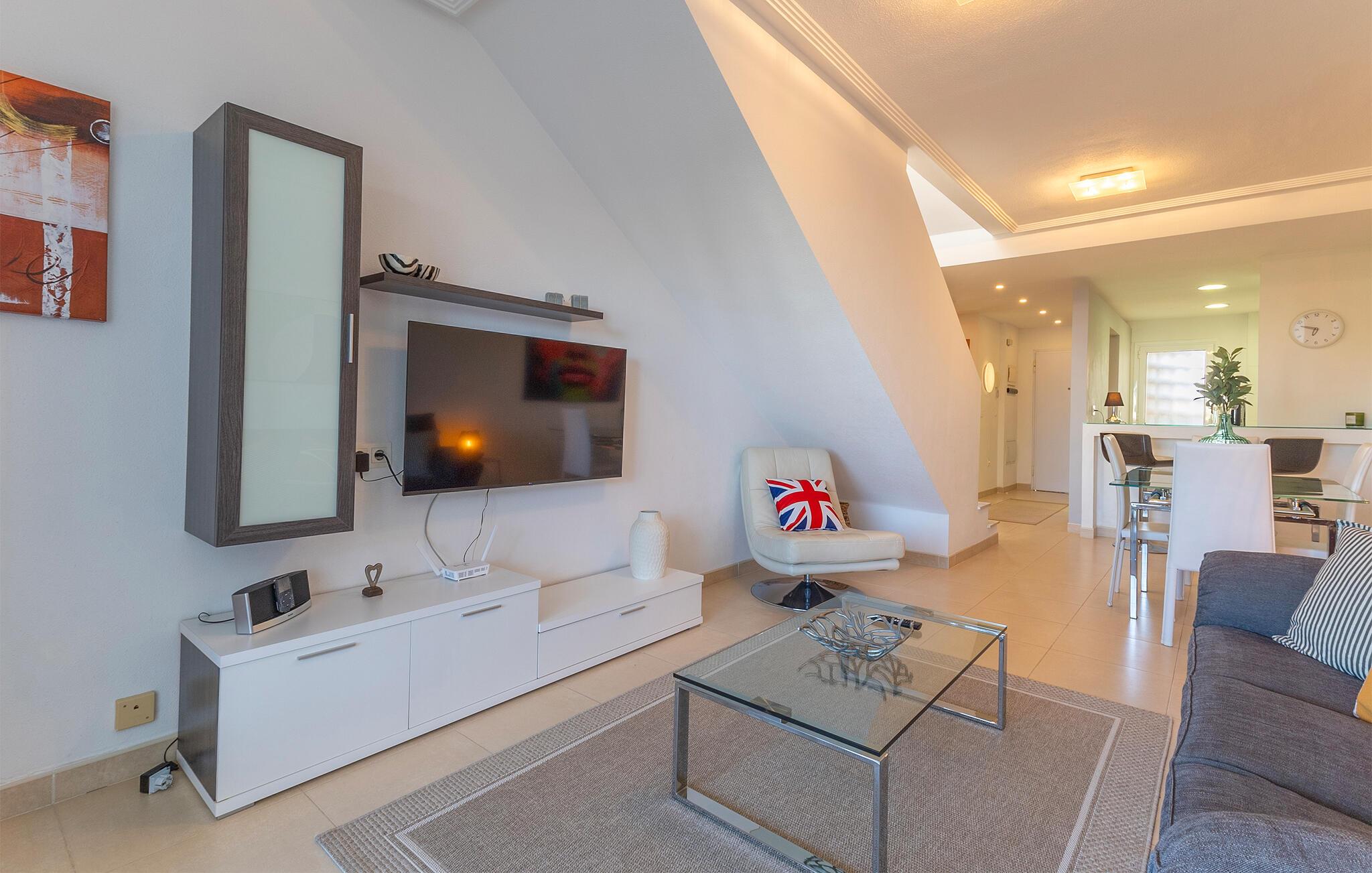 Genießen Sie unbeschwerte Ferientage in dieser geschmackvoll eingerichteten Ferienwohnung, die ideal für Paare oder eine kleine Familie ist. Die lichtdurchfluteten Räume, die moderne Ausstattung und gleich zwei möblierte Außenbereiche sorgen für eine angenehme Urlaubsatmosphäre. Lassen Sie es sich im gemütlichen Wohnbereich gutgehen. Entspannen Sie auf dem Sofa, sehen Sie einen Film oder plaudern Sie am Esstisch. Die Küche ist funktional ausgestattet und bietet alles für die Selbstversorgung.