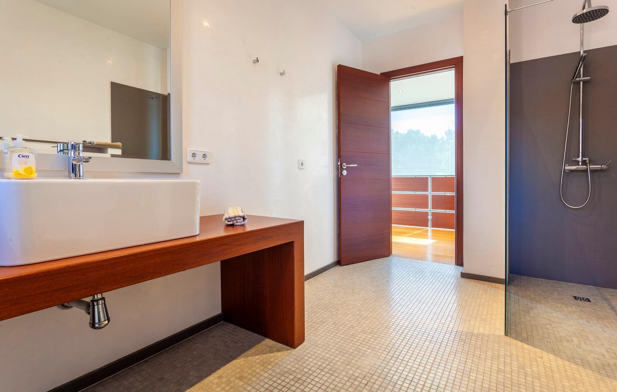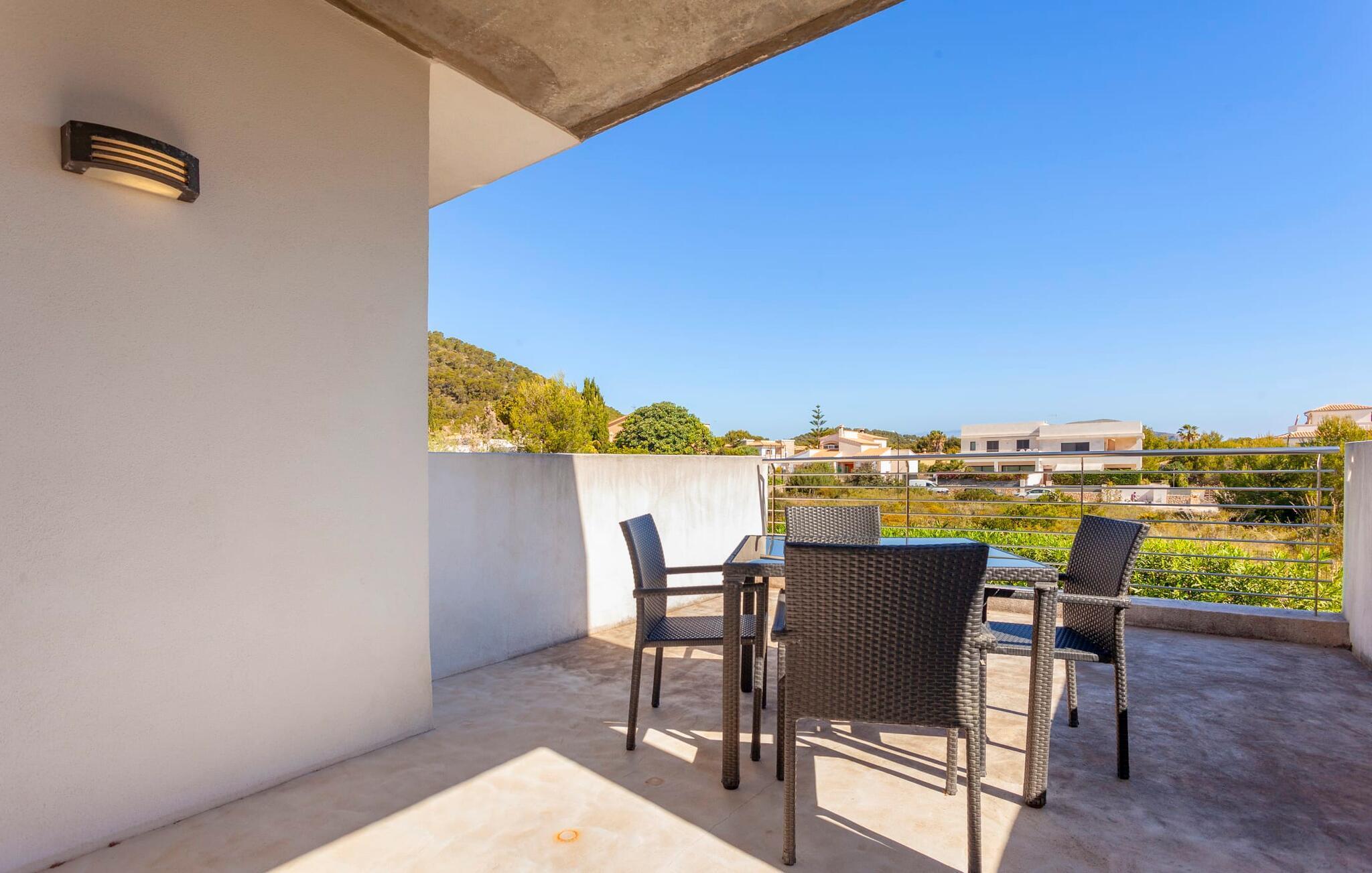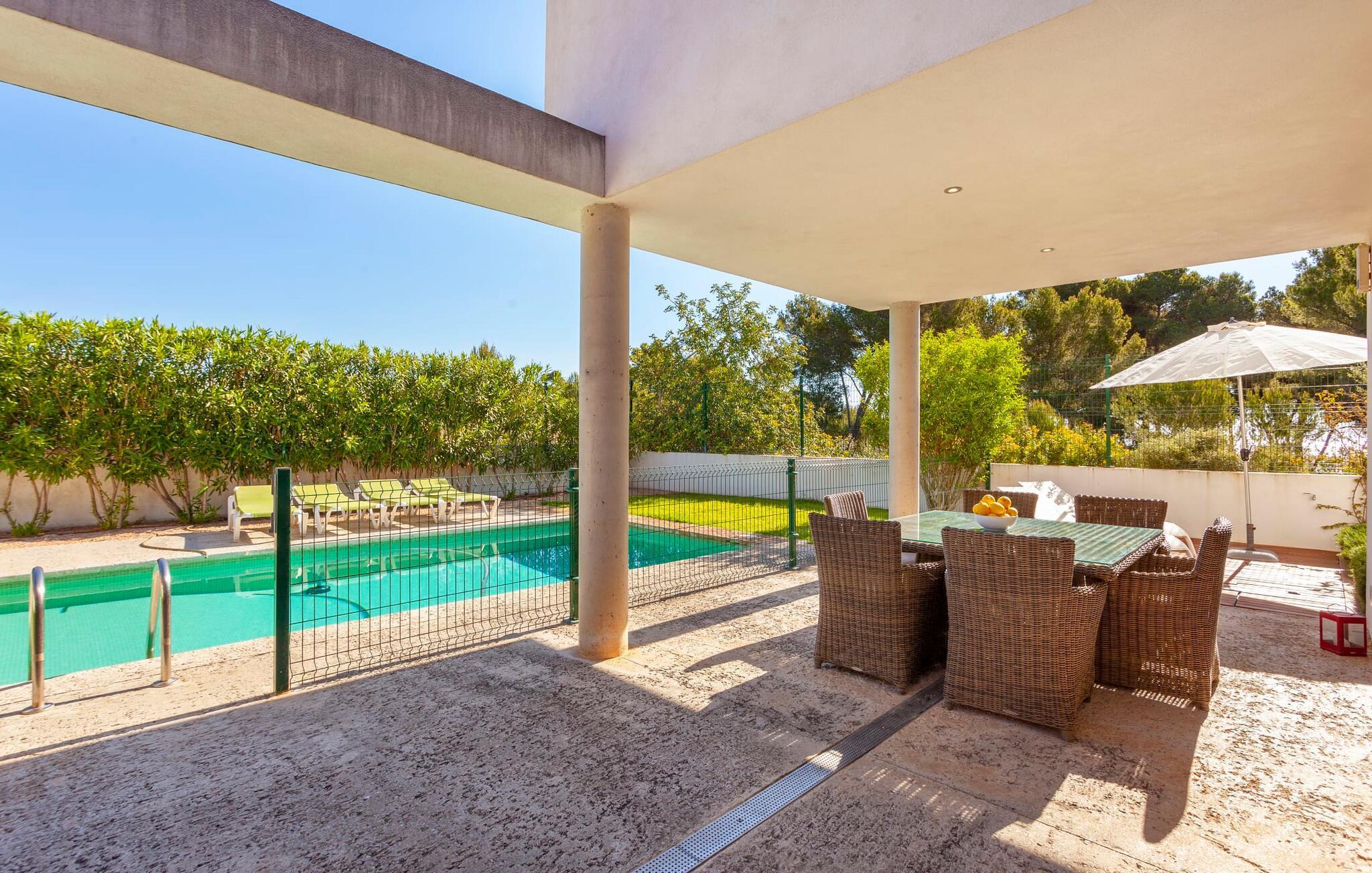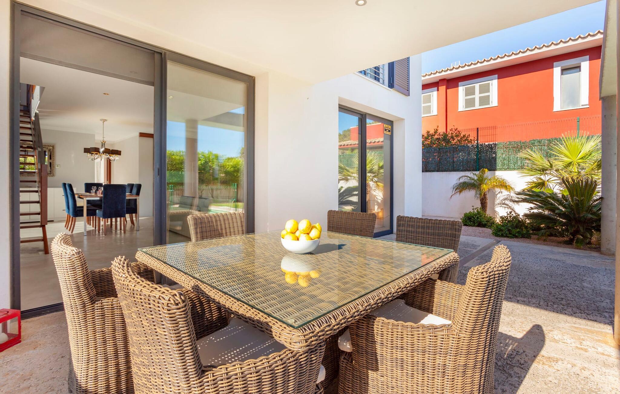 Moderne, klare Formen, kinderfreundlich, mit viel Komfort und dazu noch eine unglaubliche Lage: Das ist die Villa „Oasis 'n Aguait“, erbaut im gepflegten Wohngebiet Sa Pedruscada, nur 2 km von Cala Ratjada entfernt. Die schöne Landschaft der Umgebung lädt zu Spaziergängen und Wanderungen ein, das Meer ist nur einen kurzen Fußweg die Straße hinunter entfernt, und der beliebte Strand Platja de Son Moll liegt nur 1,2 km entfernt. Hier können Sie ins alltägliche Inselleben eintauchen – und gleichzeitig viel Wohnkomfort genießen: Die moderne Villa „Oasis 'n Aguait“ befindet sich in einer typischen Wohnstraße im gepflegten Viertel Sa Pedruscada an der Ostküste Mallorcas und bietet zahlreiche Annehmlichkeiten für einen unvergesslichen Urlaub. Auf dem Grundstück rund um das Haus mit seinem eleganten, fast puristischen Stil finden Sie nicht nur eine großzügige Terrasse mit überdachten und sonnigen Bereichen, sondern auch einen abfallenden Pool mit einladenden Sonnenliegen. Während Sie sich einfach auf der Terrasse in den gemütlichen Korbstühlen entspannen und am großen Tisch frisch Gegrilltes und einen leckeren Salat genießen, können die Kinder auf dem Rasen spielen. Auch ein liebevoll angelegter kleiner Kräutergarten ist vorhanden. Die Dachterrasse hingegen bietet einen großartigen Platz, um mit einem Getränk zu relaxen und den Blick auf die umliegende Landschaft und die Nachbarhäuser zu genießen.