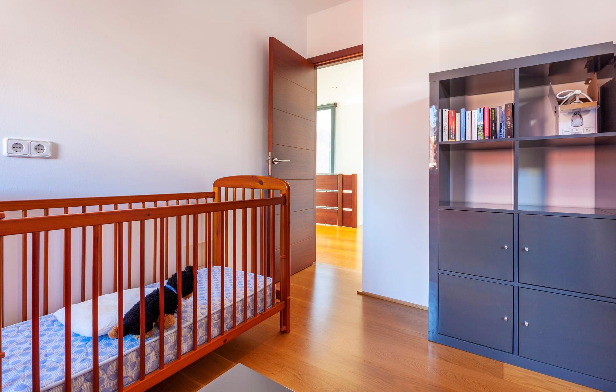 Eine Treppe führt ins Obergeschoss, die dank eines Holzgitters kindersicher ist. Dort finden Sie zwei weitere attraktive Doppelzimmer, ein modernes Bad und ein weiteres Zimmer, das sich ideal als Lese- oder Kinderzimmer eignet. Vom Haus aus müssen Sie nicht weit gehen, um das Meer zu erreichen: Spazieren Sie einfach ein Stück die Straße hinunter, und schon sehen Sie es verlockend in der Sonne glitzern. Ihre Villa eignet sich perfekt als Ausgangspunkt für Spaziergänge durch die Umgebung – genießen Sie die typische mediterrane Landschaft mit riesigen, herrlich duftenden Rosmarinbüschen am Wegesrand, Palmen, die sich imposant in den blauen Himmel recken, und die beeindruckende Felsenküste des Ostens der Insel. Oder fahren Sie 2 km die von der Villa hörbare Straße entlang bis zum beliebten Ferienort Cala Ratjada. Der Ort mit über 6200 Einwohnern schmiegt sich in eine malerische Bucht, die von Felsküsten und grünen Bergen eingerahmt wird, und zieht sowohl Naturliebhaber als auch Partygänger an – er bietet ruhige Ecken mit beeindruckender Landschaft ebenso wie ein abwechslungsreiches Nachtleben. Wenn Sie lieber an den Strand gehen, können Sie zum Beispiel an den Platja de Son Moll, nur 1,2 km entfernt. Er erwartet die Besucher mit einer guten Infrastruktur und einer lebhaften Strandpromenade.