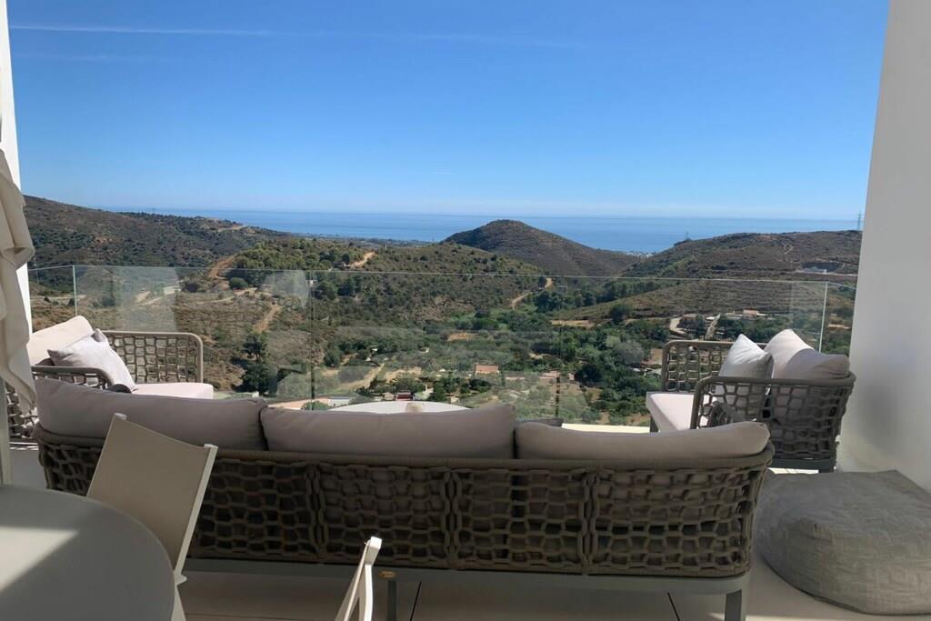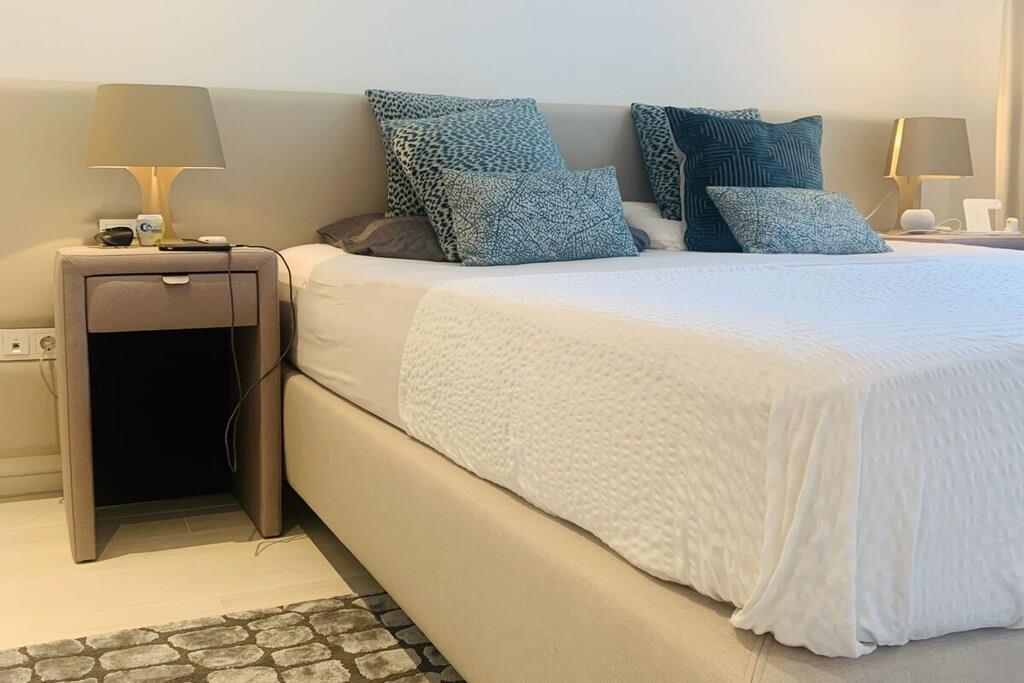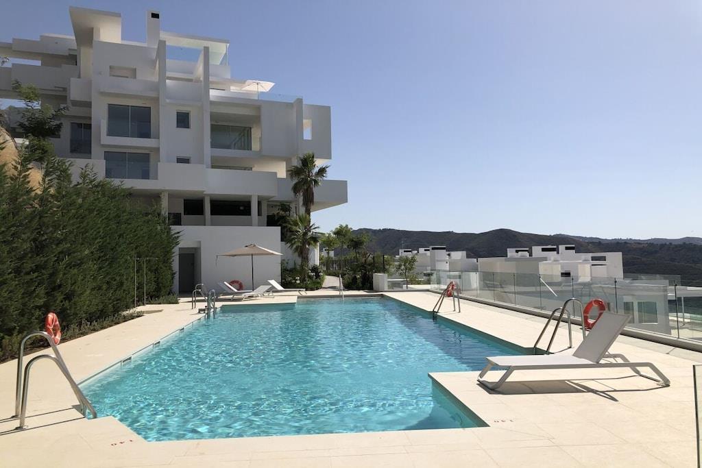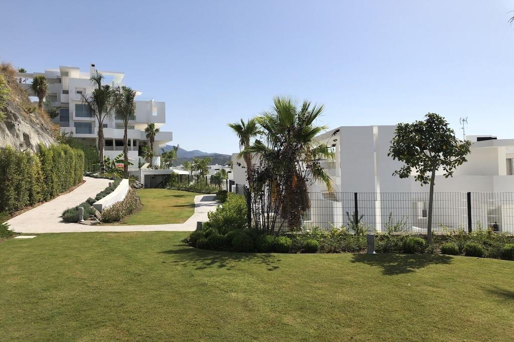 Diese moderne, luxuriöse Ferienwohnung liegt in der neuen Urbanización PaloAlto, 5 km oberhalb von Marbella Centrum, die vom spanischen Stararchtekturbüro Villarroel designed und entwickelt wurde. Diese Wohnung hat einen atemberaubenden Ausblick und überzeugt durch ihre schönen Details. Die Wohnung ist ausgestattet mit 2 Schlafzimmern mit sehr komfortablen Betten, komplett ausgestatteter Küche, 2 Badezimmern und einer 25 m² Sonnenterrasse, Aufzug. 2 Außen-Pools liegen in unmittelbarer Nähe. Ein beheizter Indoorpool, ein super modernes, luxuriöses Spa mit sensationellem Gym stehen zur kostenlosen Nutzung. Ebenso 1 Tennisplatz kann in der Gated Community PALO Alto gebucht werden.