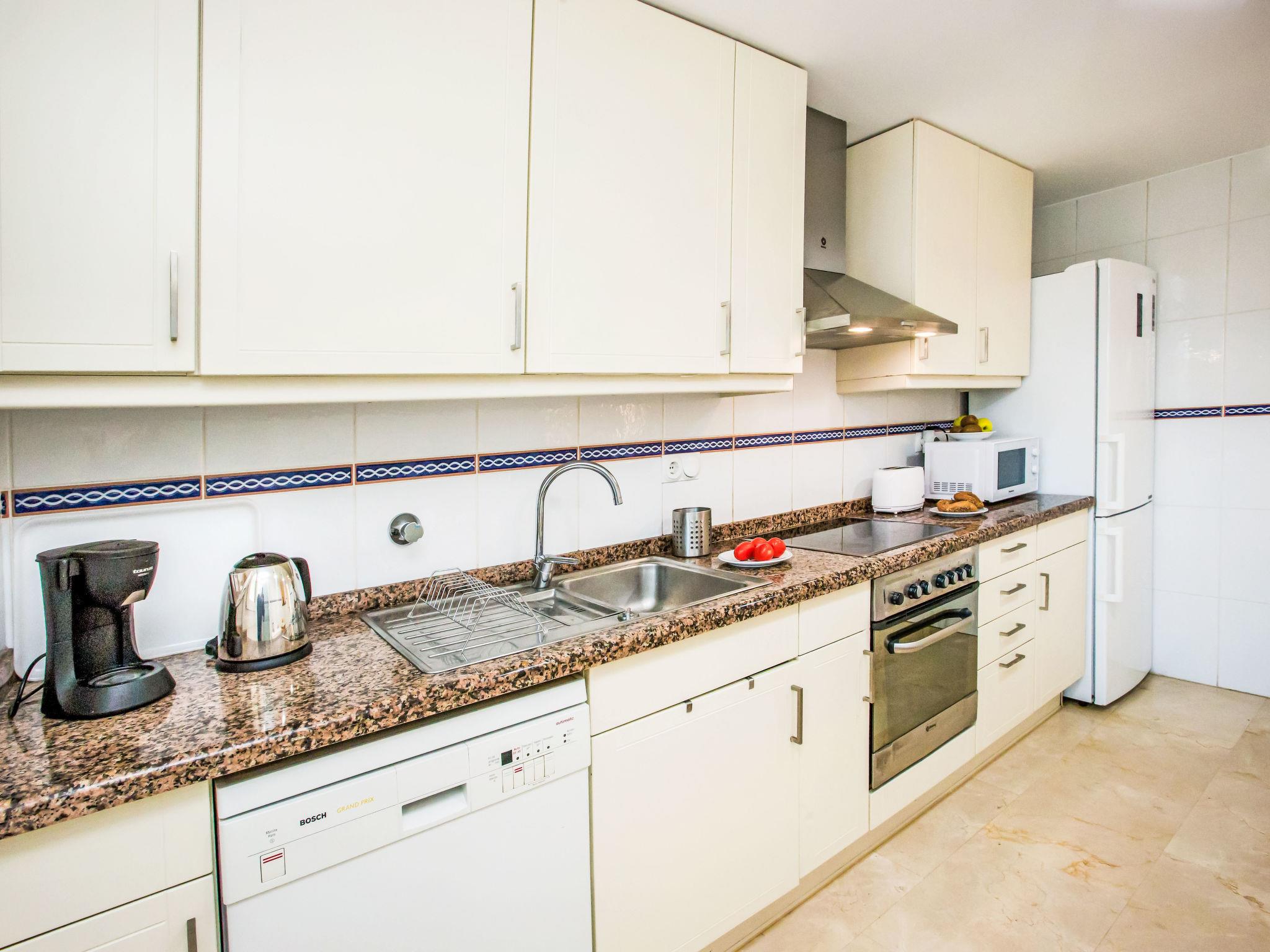 "Golf & Mar", 3-Zimmer-Wohnung 90 m2. Geräumig und hell, sehr komfortabel und stilvoll eingerichtet: Wohn-/Esszimmer mit Digital-TV, Klimaanlage und Warmluftheizung. Ausgang zur Terrasse. 1 Zimmer mit begehbarem Kleiderschrank mit 1 franz. Bett (150 cm, Länge 200 cm), Bad/Bidet/WC und Digital-TV. 1 Zimmer mit 1 Ausziehbett (2 Pers. 2 x 90 cm, Länge 190 cm), Klimaanlage und Warmluftheizung. Küche (Backofen, Geschirrspüler, 4 Glaskeramikplatten, Toaster, Mikrowelle, Tiefkühler, elektrische Kaffeemaschine). Dusche/Bidet/WC. Grosse Terrasse 16 m2. Terrassenmöbel. Zur Verfügung: Waschmaschine, Bügeleisen, Kinderhochstuhl, Babybett, Haartrockner. Internet (WLAN, gratis). Parkplatz. VT-48253-A // Reg. Nr.: ESFCTU000046044000531678000000000000000000VT-48253-A9