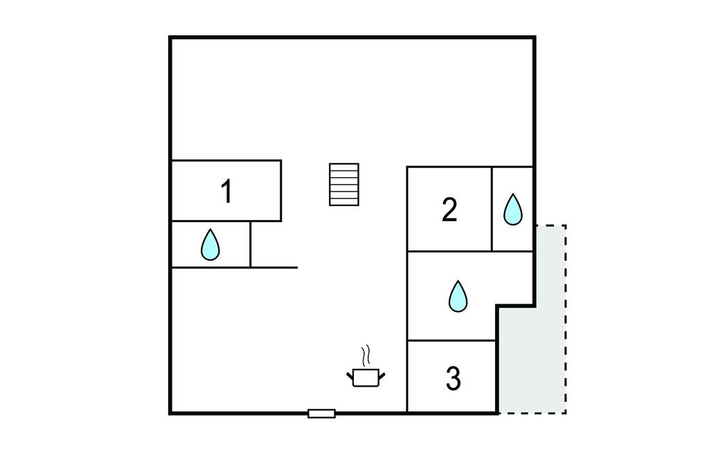 Badezimmer (nr. 3) - WC. Warmes und kaltes Wasser. Dusche