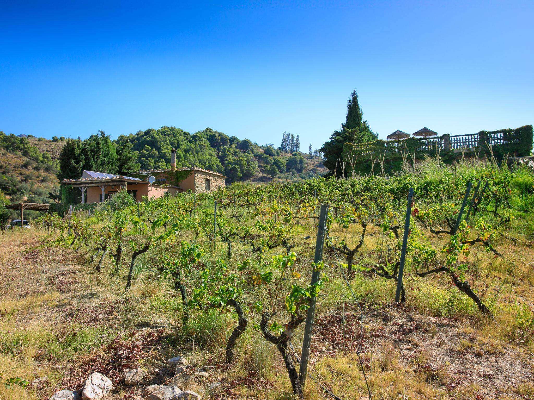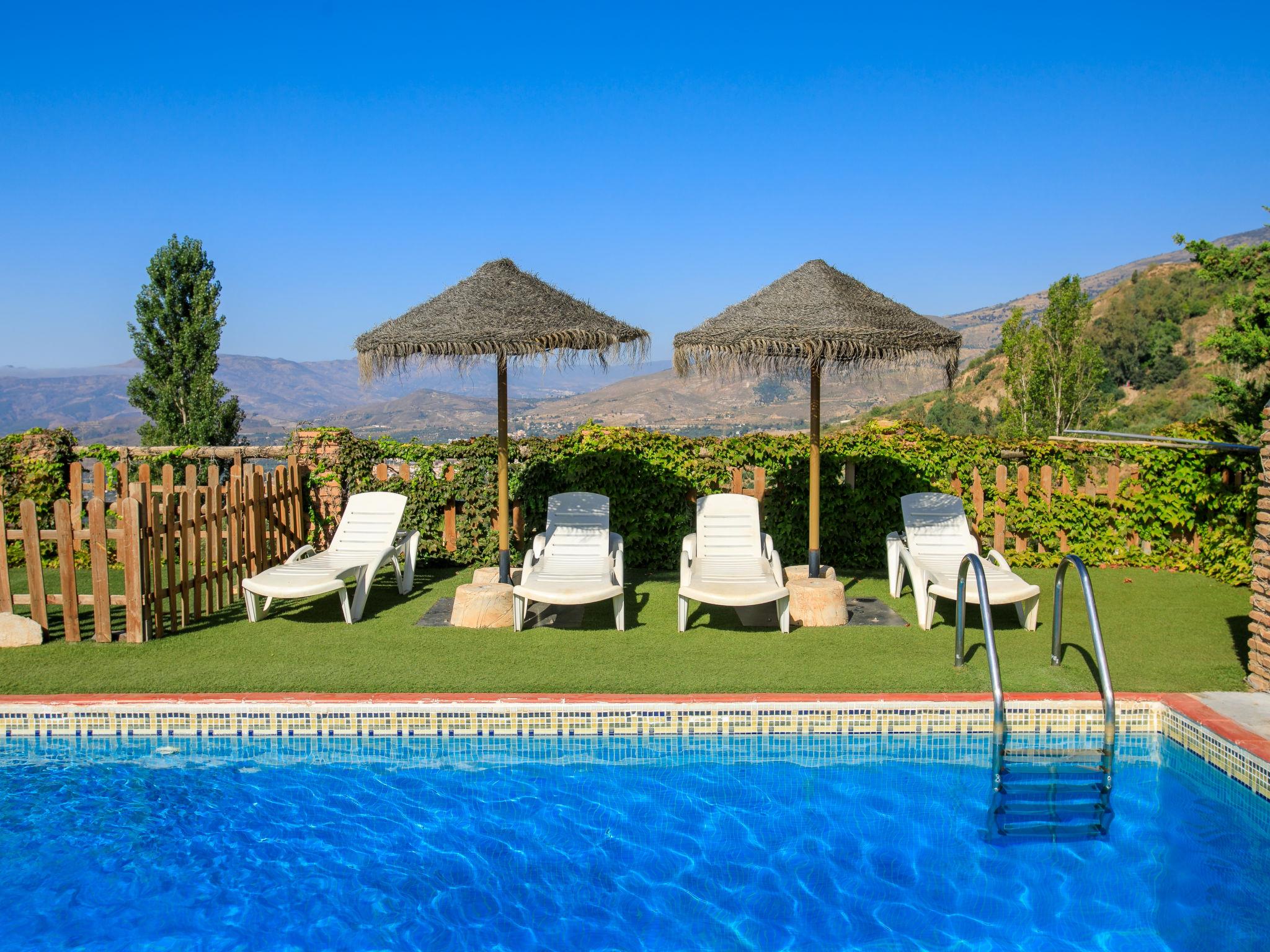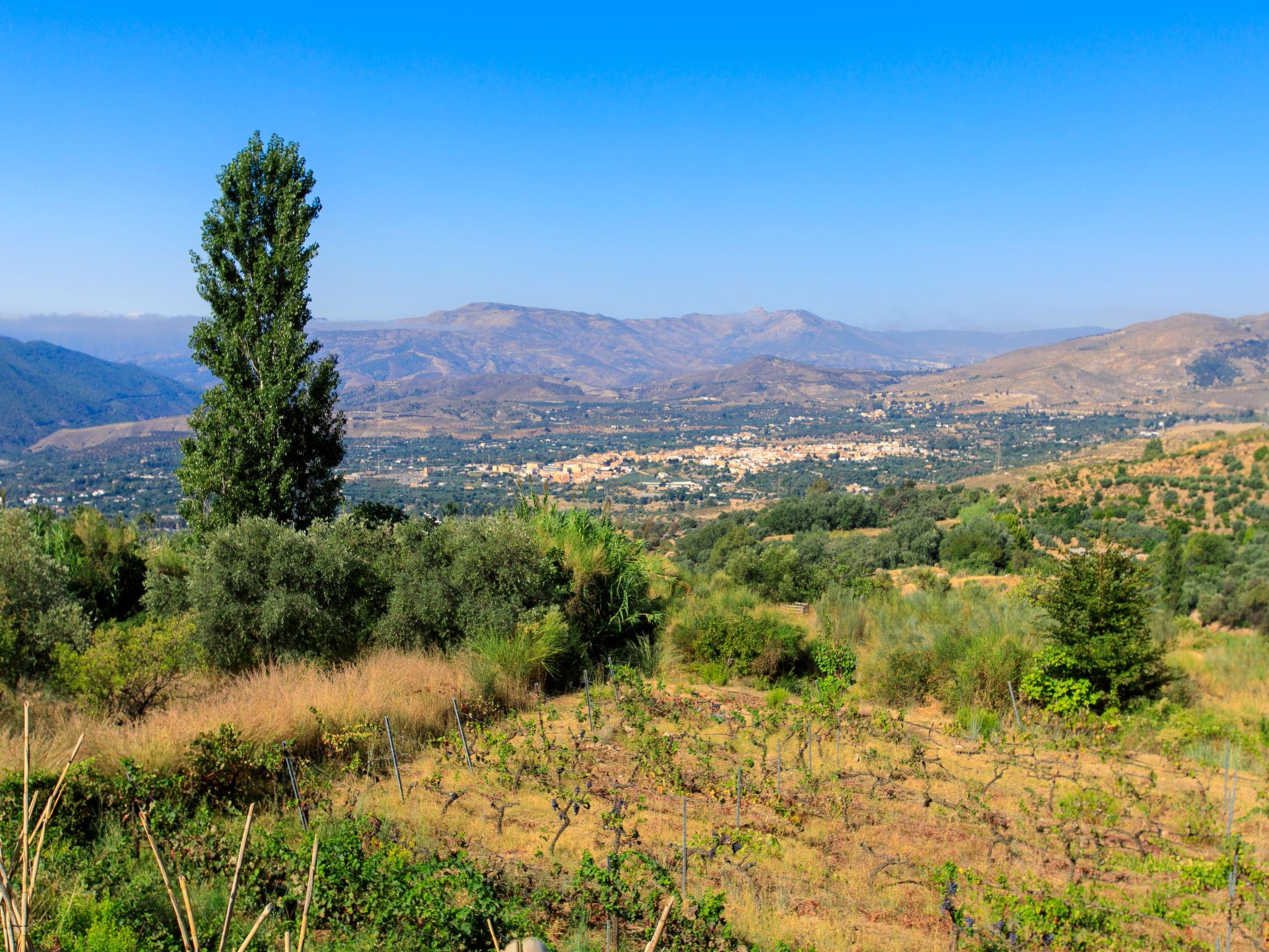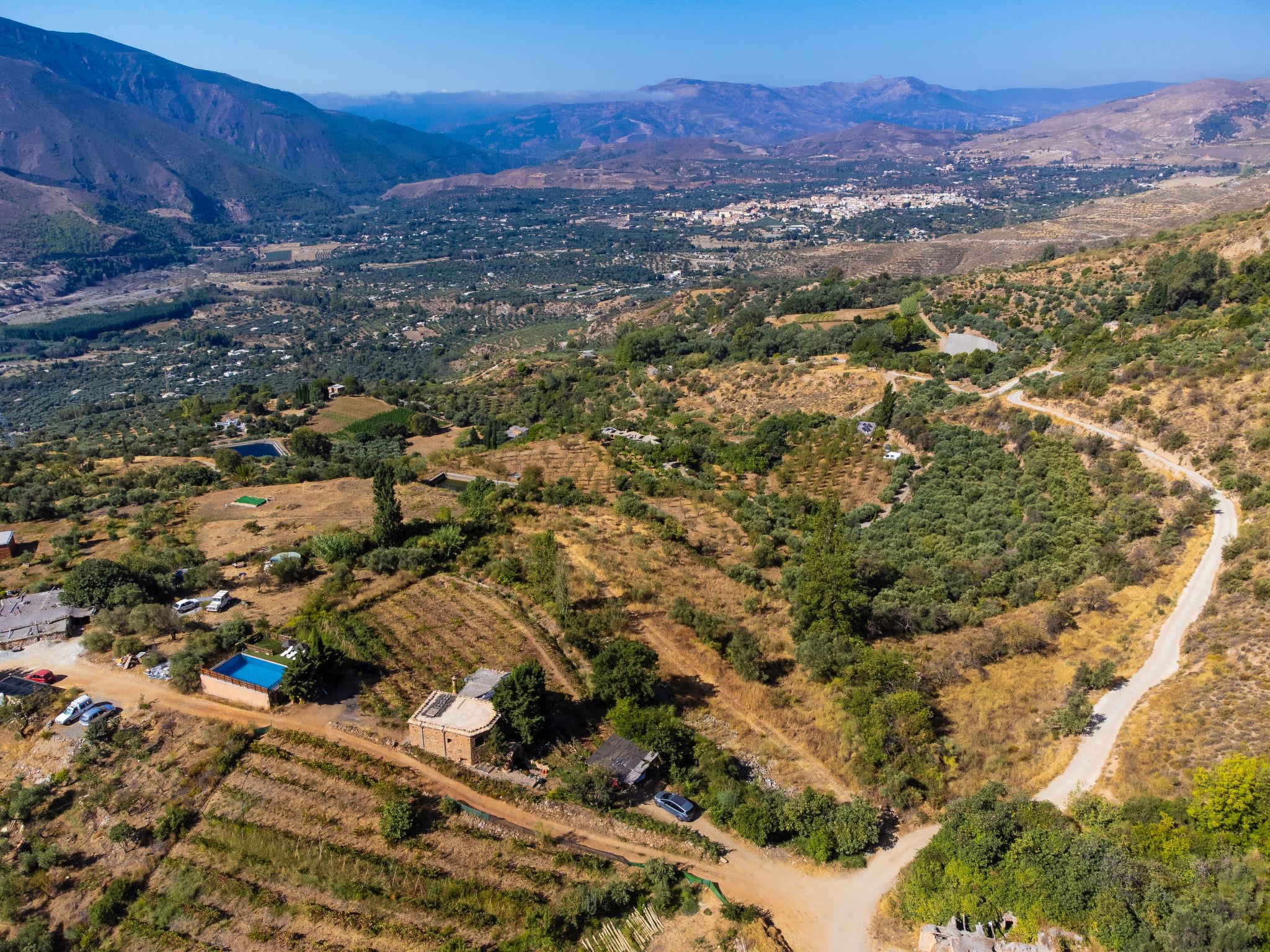 Orgiva: Gemütliches, einfaches, komfortables Haus "Cortijo el Cerrillo", Baujahr 1998, renoviert im Jahre 2018, umgeben von Weinbergen. Alleinstehende, ruhige Lage, im Grünen. Zur Alleinbenutzung: naturbelassenes Grundstück 5'000 m2, Schwimmbad (11 x 5 m, 225 cm tief, saisonale Verfügbarkeit: 01.Apr. - 01.Okt.). Kinderbecken. Holprige, steile Zufahrt (300 m Naturweg). Parkplatz beim Haus. Lebensmittelgeschäft 5 km, Supermarkt 5 km, Restaurant 5 km, Bushaltestelle 5 km. Nahe gelegene Sehenswürdigkeiten: Parque Natural Sierra Nevada Cara Sur 200 m, Aeropuerto Granada 70 km, Granada 58 km, Costa Tropical 30 km. Bitte beachten: Fahrzeug empfohlen. Geeignet für Familien. Eigentümer hat einen Hund.