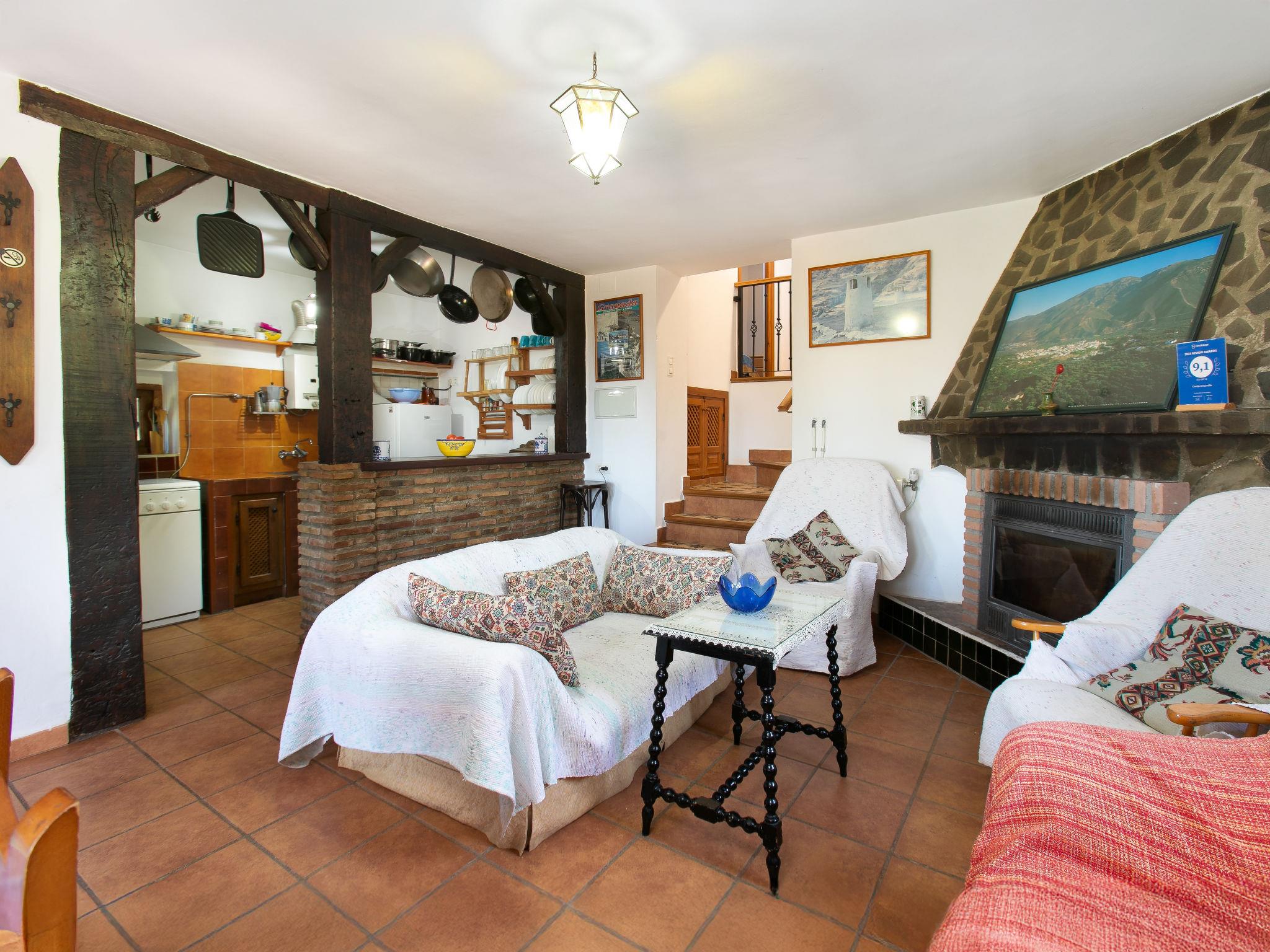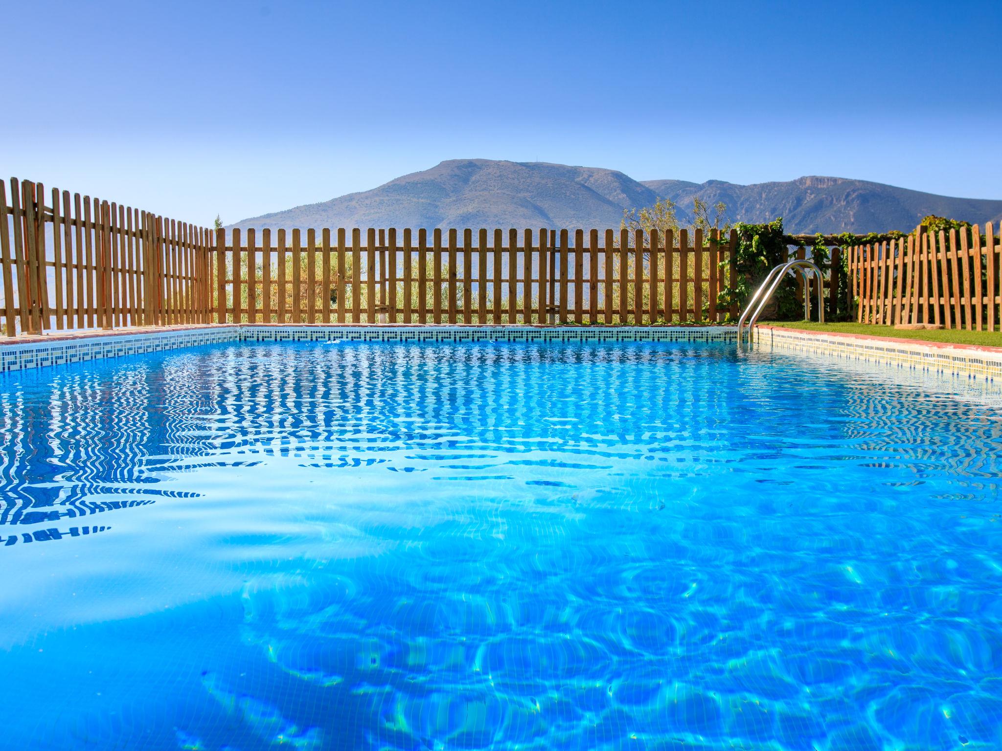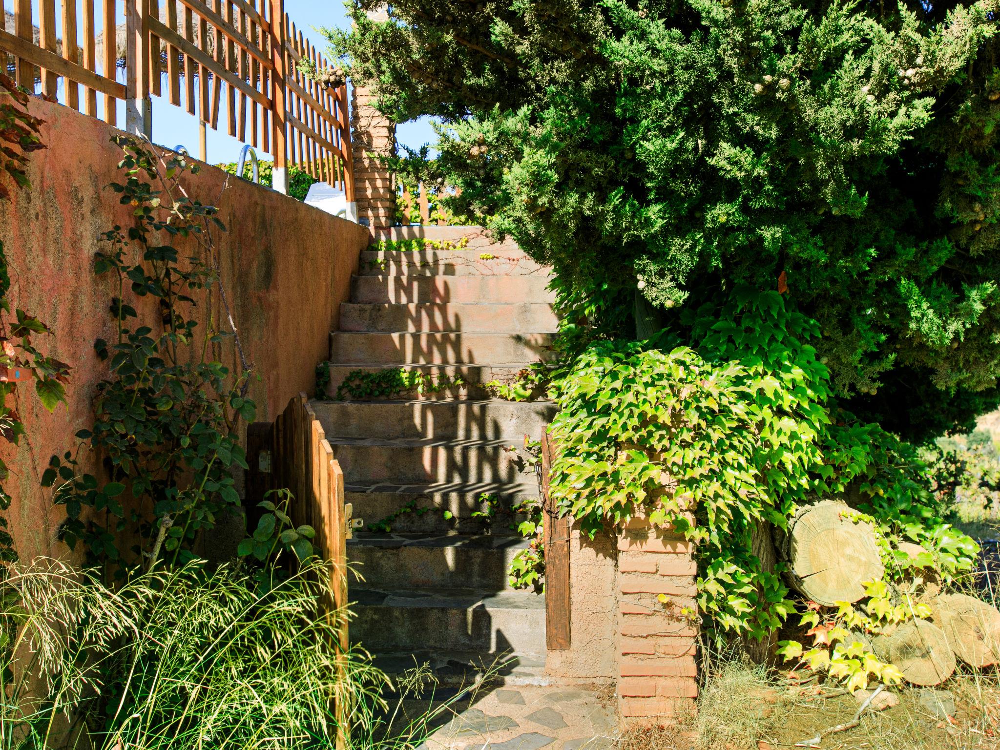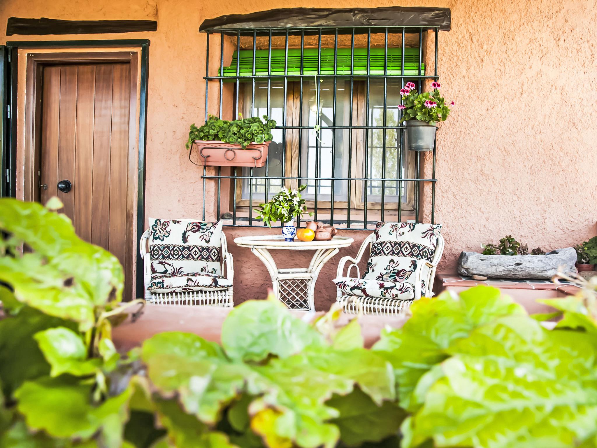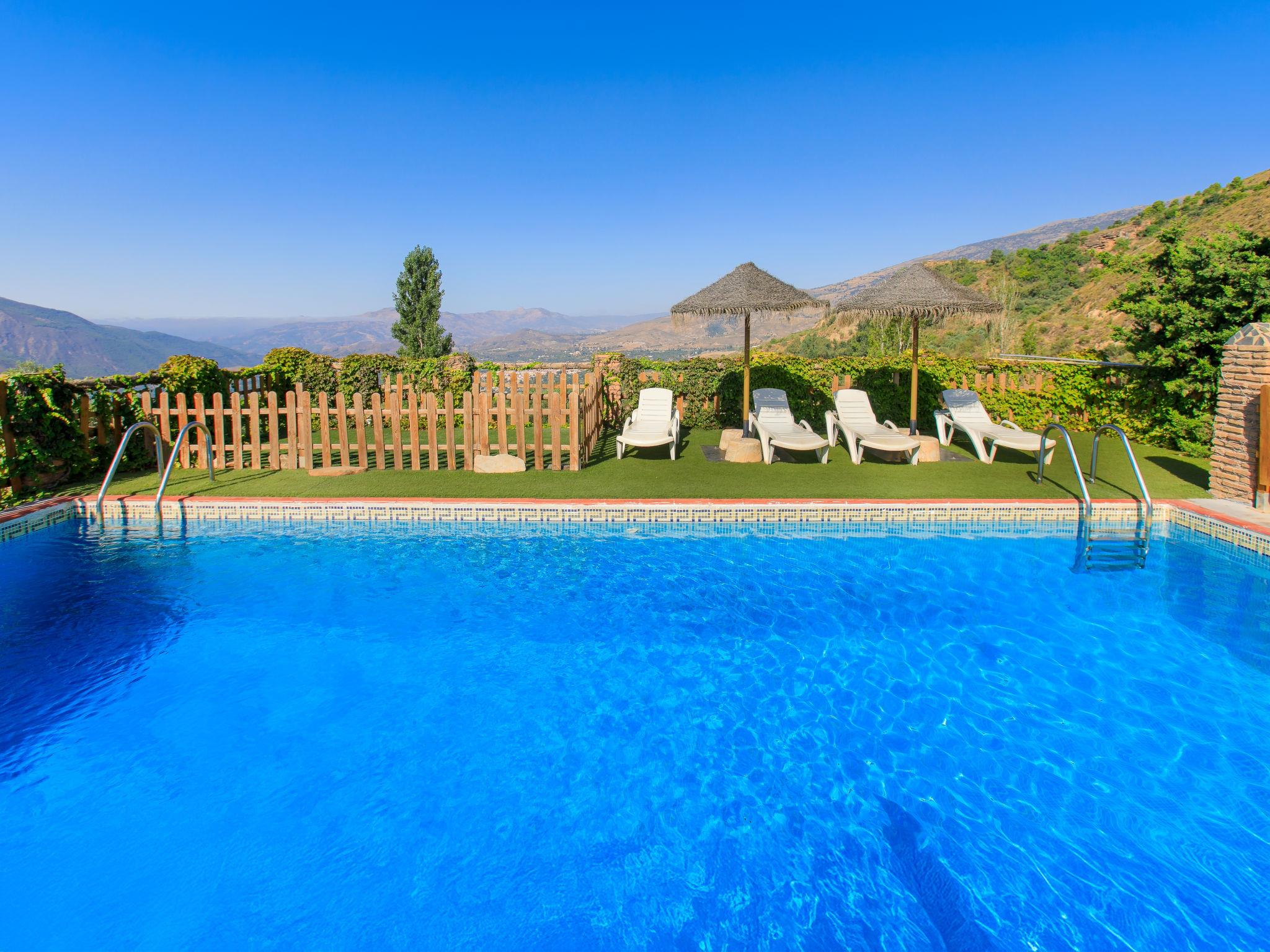 Orgiva: Gemütliches, einfaches, komfortables Haus "Cortijo el Cerrillo", Baujahr 1998, renoviert im Jahre 2018, umgeben von Weinbergen. Alleinstehende, ruhige Lage, im Grünen. Zur Alleinbenutzung: naturbelassenes Grundstück 5'000 m2, Schwimmbad (11 x 5 m, 225 cm tief, saisonale Verfügbarkeit: 01.Apr. - 01.Okt.). Kinderbecken. Holprige, steile Zufahrt (300 m Naturweg). Parkplatz beim Haus. Lebensmittelgeschäft 5 km, Supermarkt 5 km, Restaurant 5 km, Bushaltestelle 5 km. Nahe gelegene Sehenswürdigkeiten: Parque Natural Sierra Nevada Cara Sur 200 m, Aeropuerto Granada 70 km, Granada 58 km, Costa Tropical 30 km. Bitte beachten: Fahrzeug empfohlen. Geeignet für Familien. Eigentümer hat einen Hund.